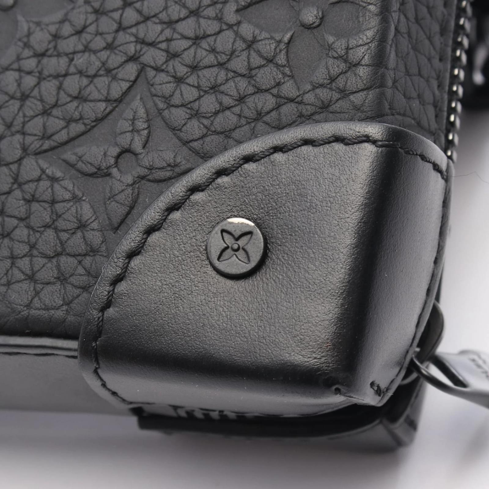 The Louis Vuitton Soft Trunk Wallet Shoulder Bag is crafted from Taurillon leather, featuring a sleek black and monogram design. This shoulder bag measures 13.5cm in height, 22.5cm in width, and 5cm in depth, with an adjustable strap length ranging from 103cm to 124cm.