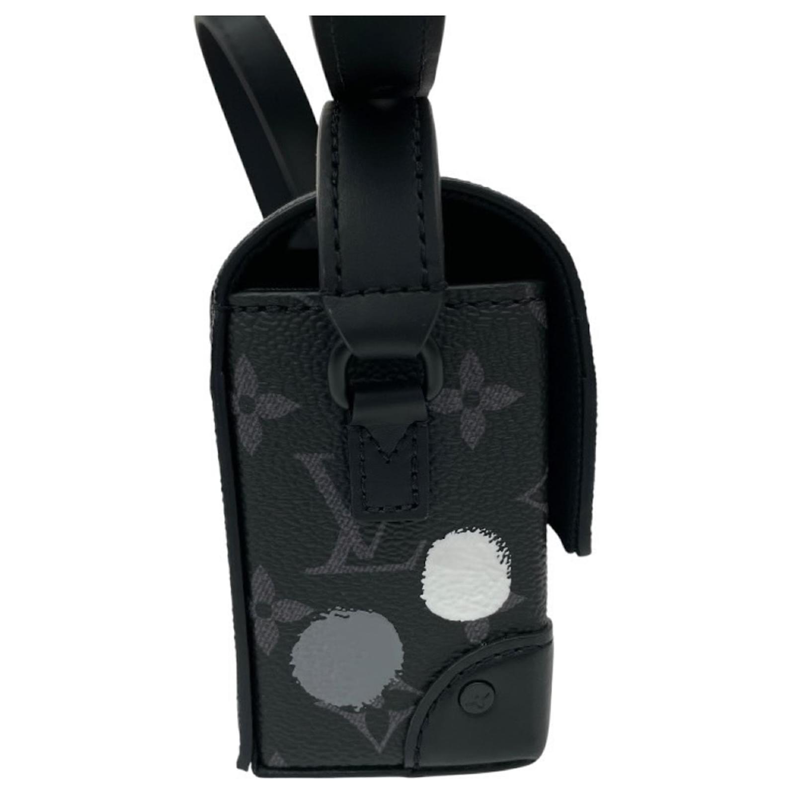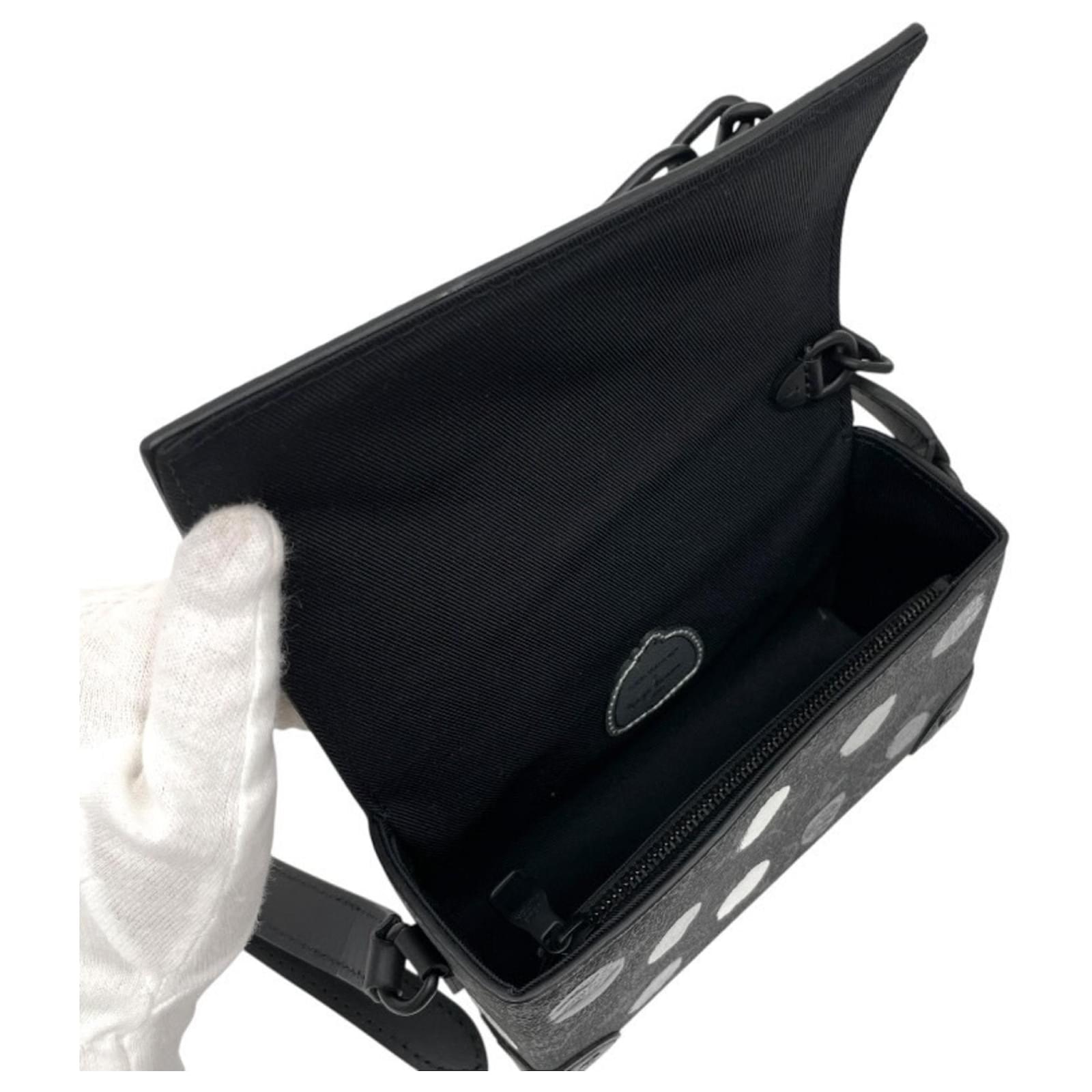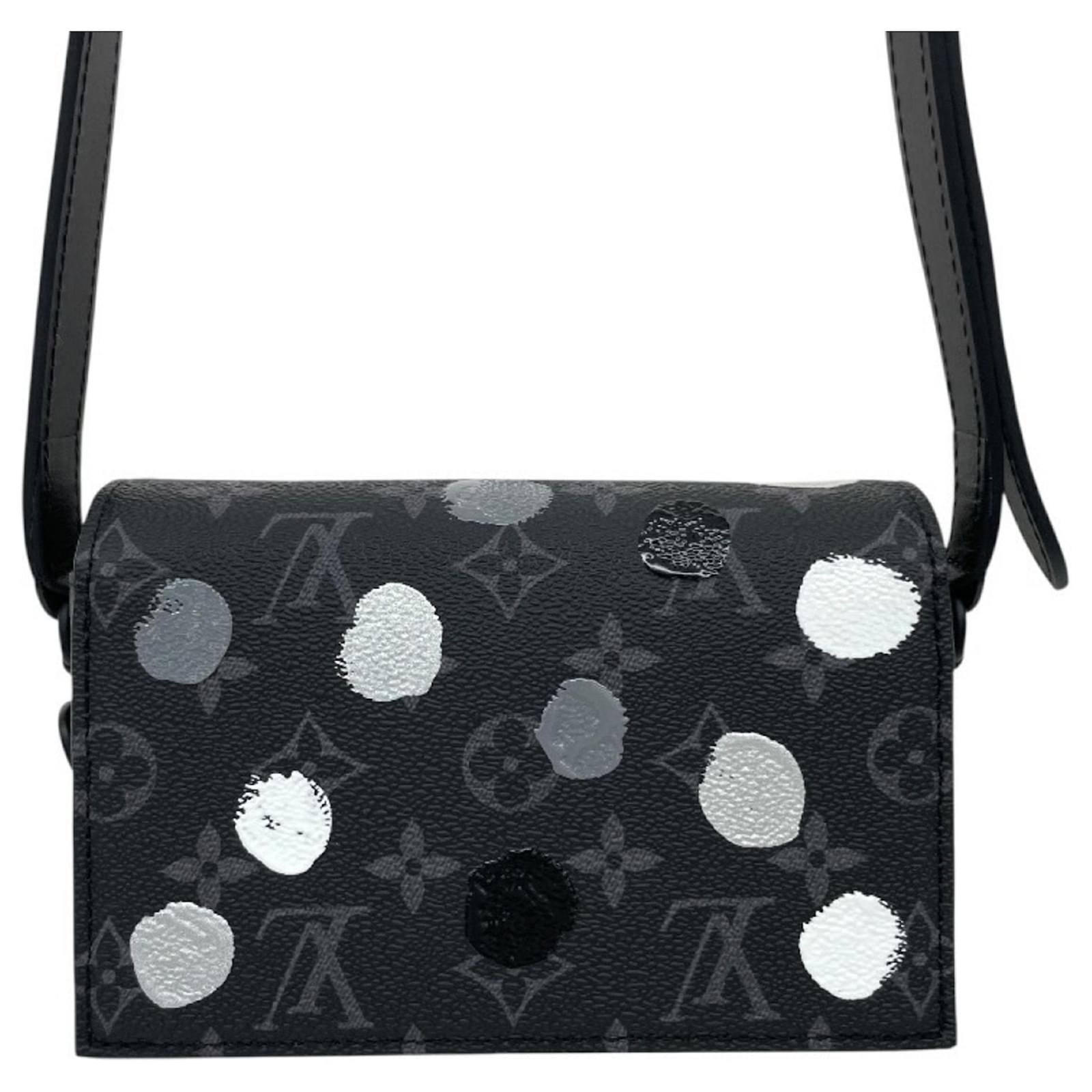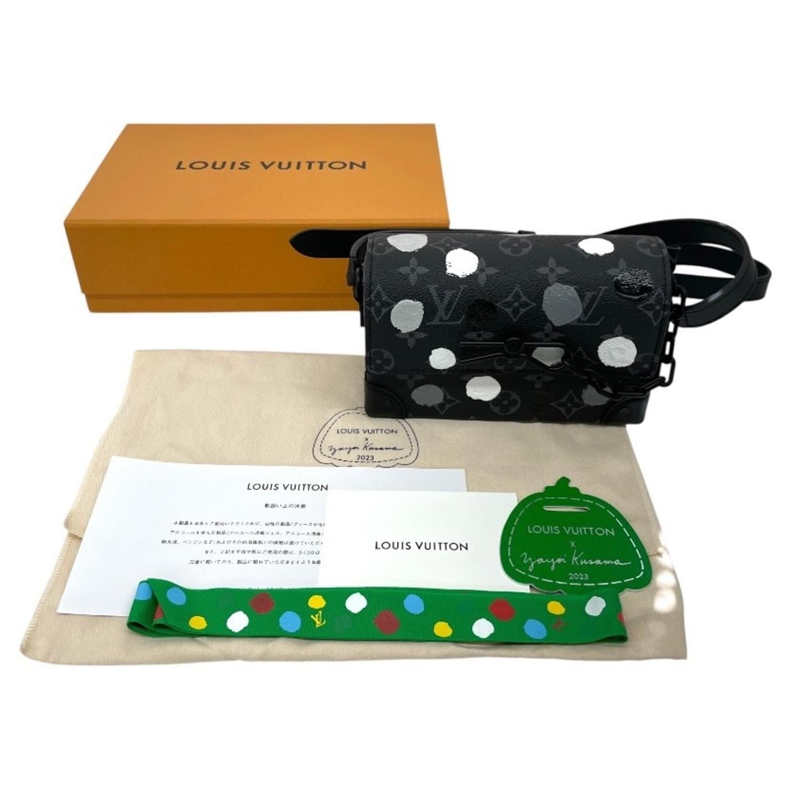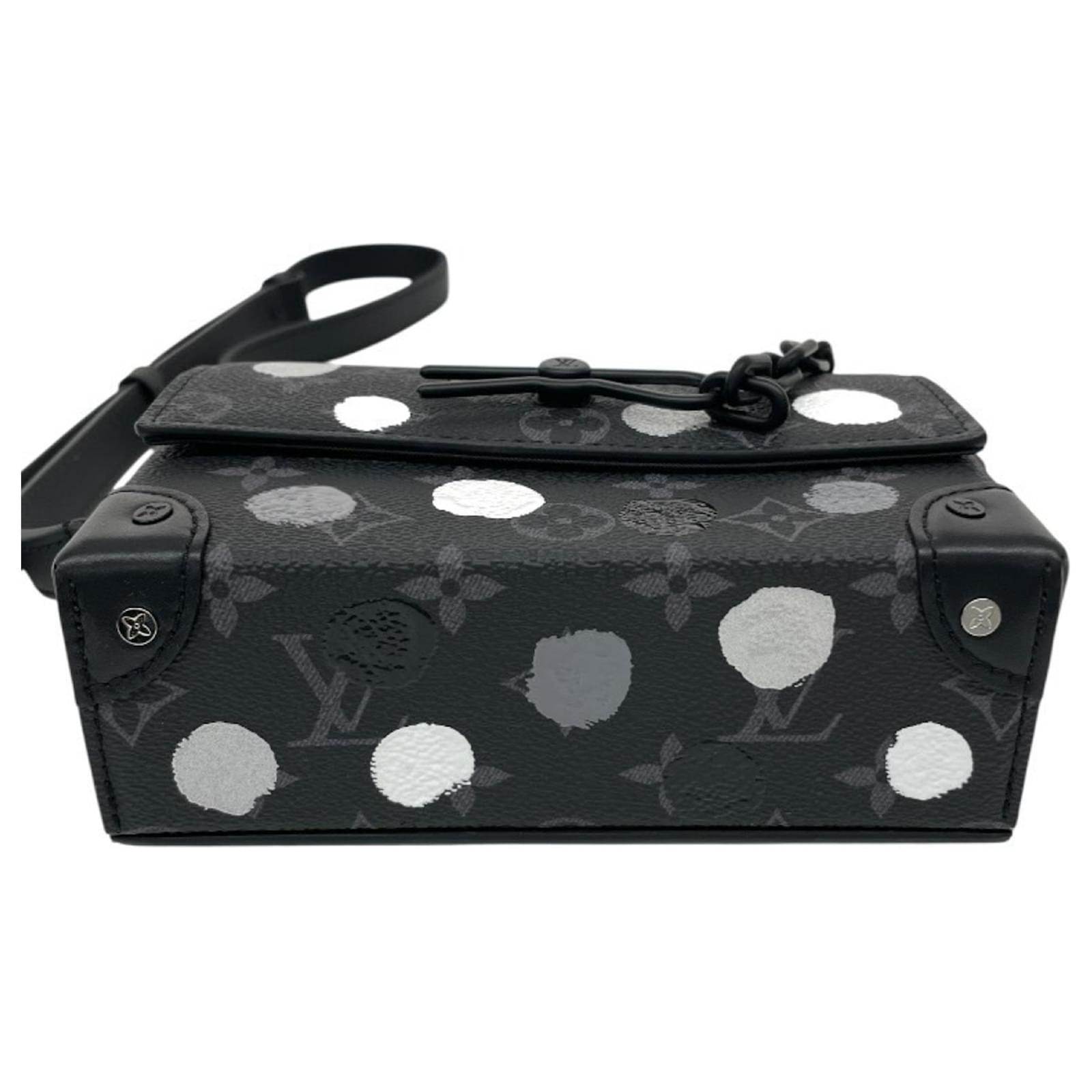 The Louis Vuitton Steamer Wearable Wallet M81935 is a men's shoulder bag designed in collaboration with Yayoi Kusama, featuring a distinctive Monogram Eclipse pattern. This black shoulder bag measures 10cm in height, 18cm in width, and 6cm in depth, making it a compact accessory for daily use.