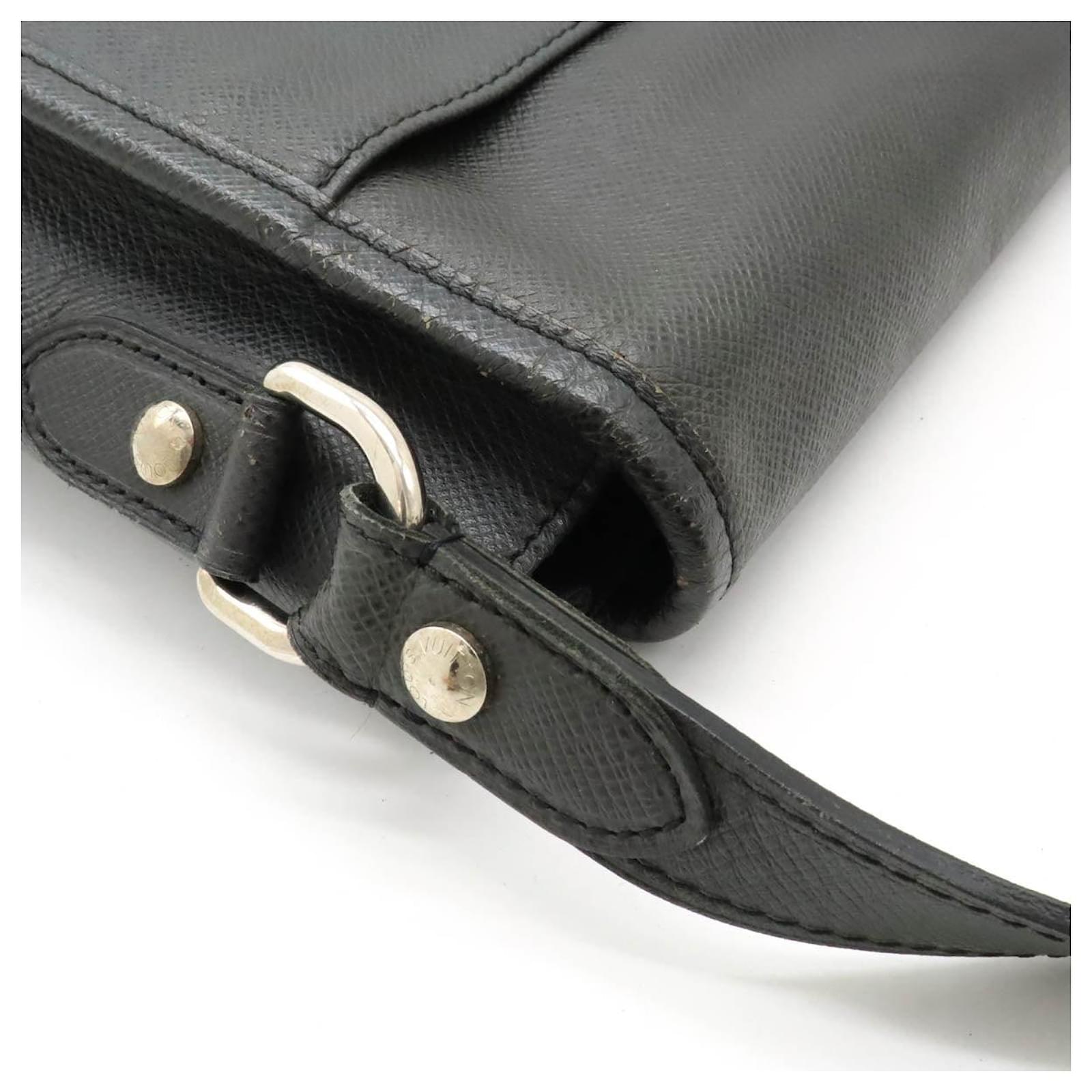 Brand Name: Louis Vuitton; Condition: Very Good; Category: Bag; SubCategory: Crossbody Bag; Product Name: Louis Vuitton Taiga Alexei Shoulder Bag M32472; Model Number: M32472; Style: Gentleman; Height (cm): 29; Width (cm): 10; Length (cm): 36; Color: Black; Material: Calfskin; Origin: France; Measurments: width: 100 mm length: 360 mm height: 290 mm strap length: 0 mm handle drop: 0 mm