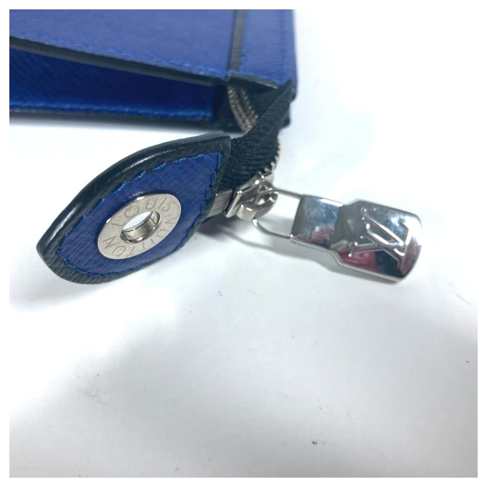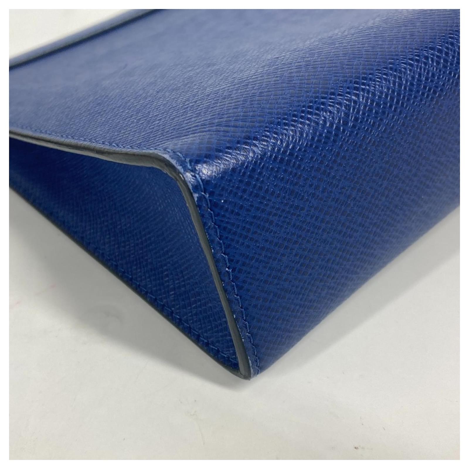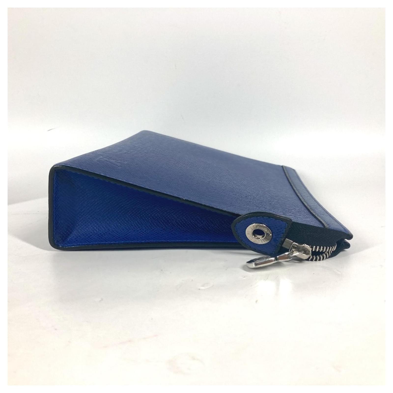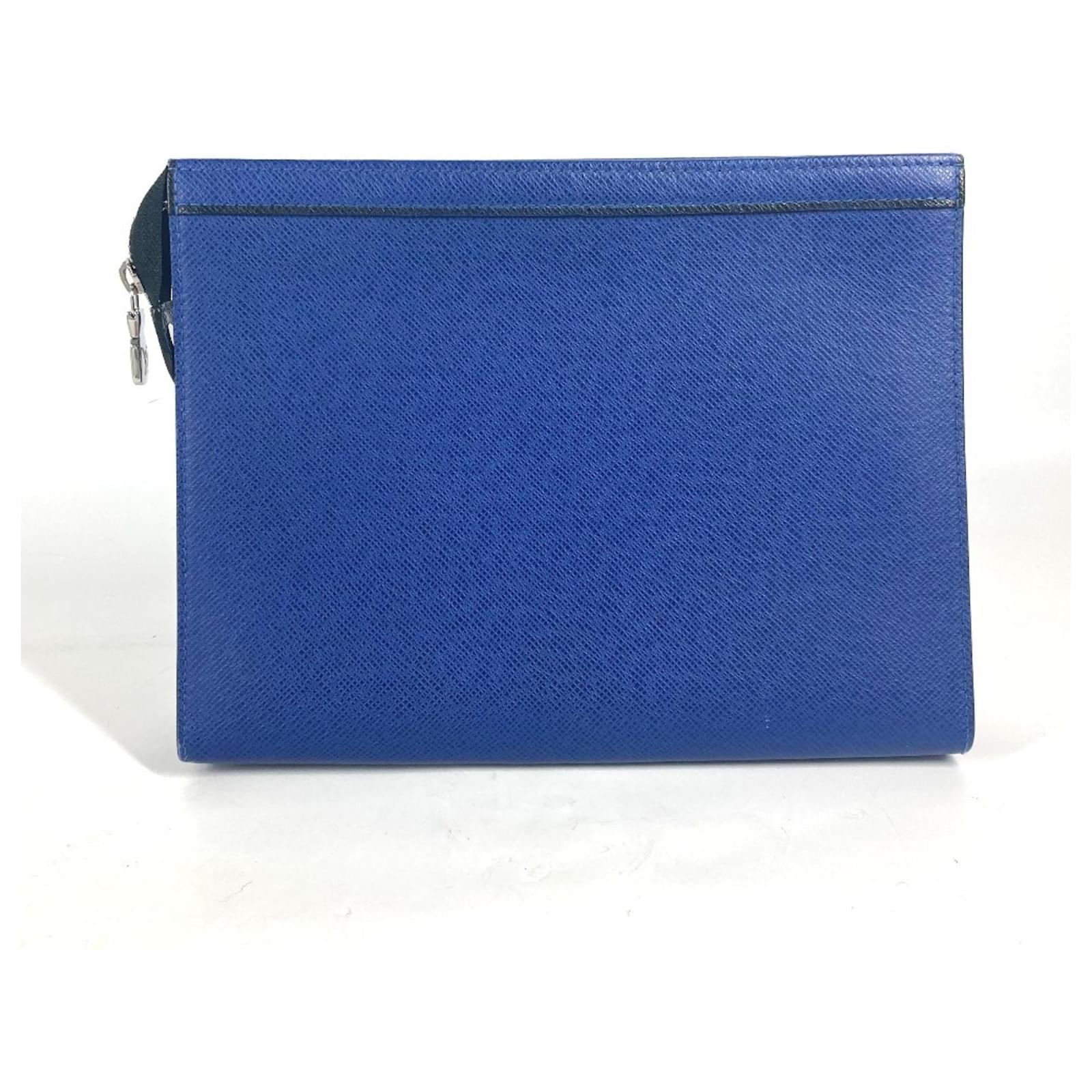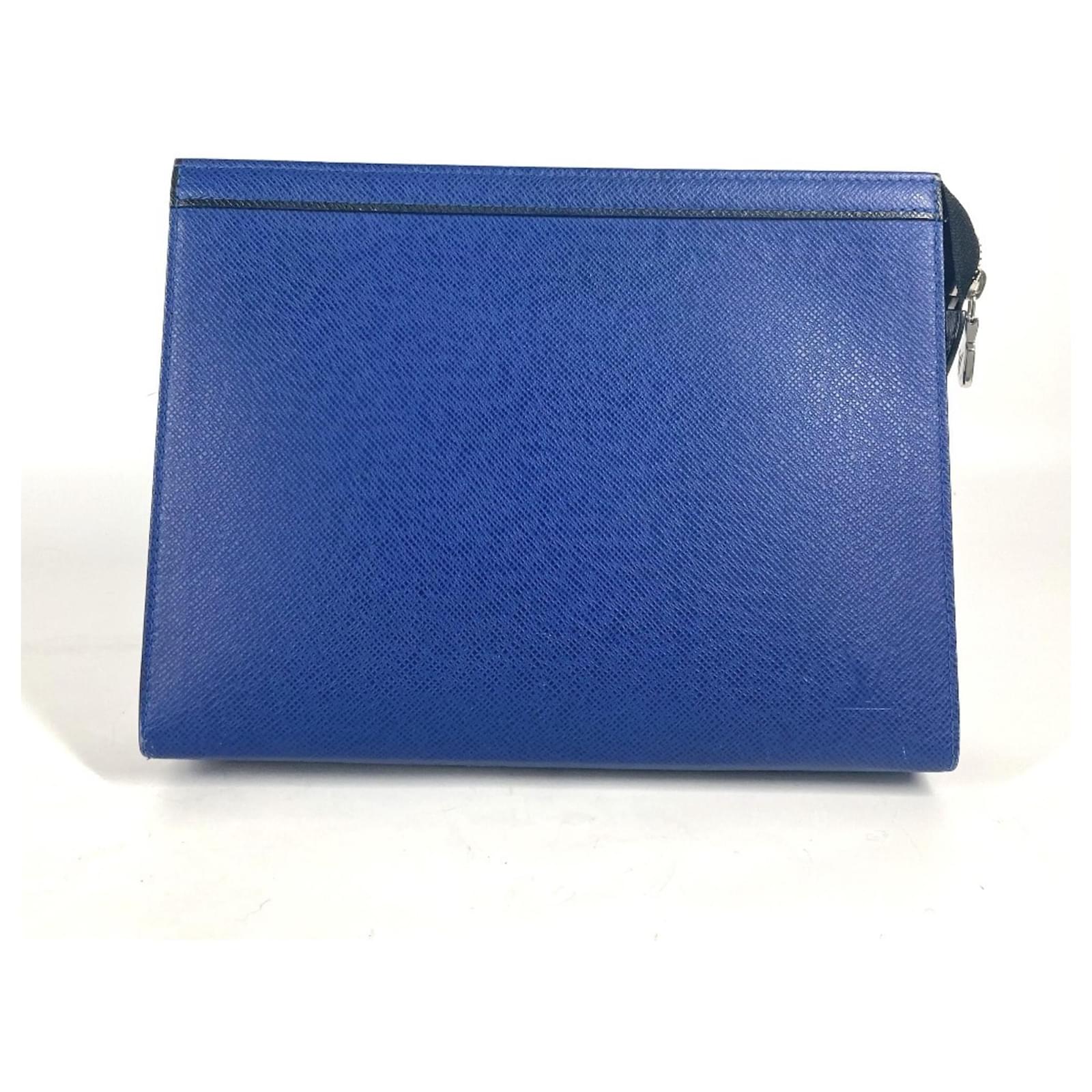 Louis Vuitton Taiga Pochette Voyage MM Clutch Bag Black Blue