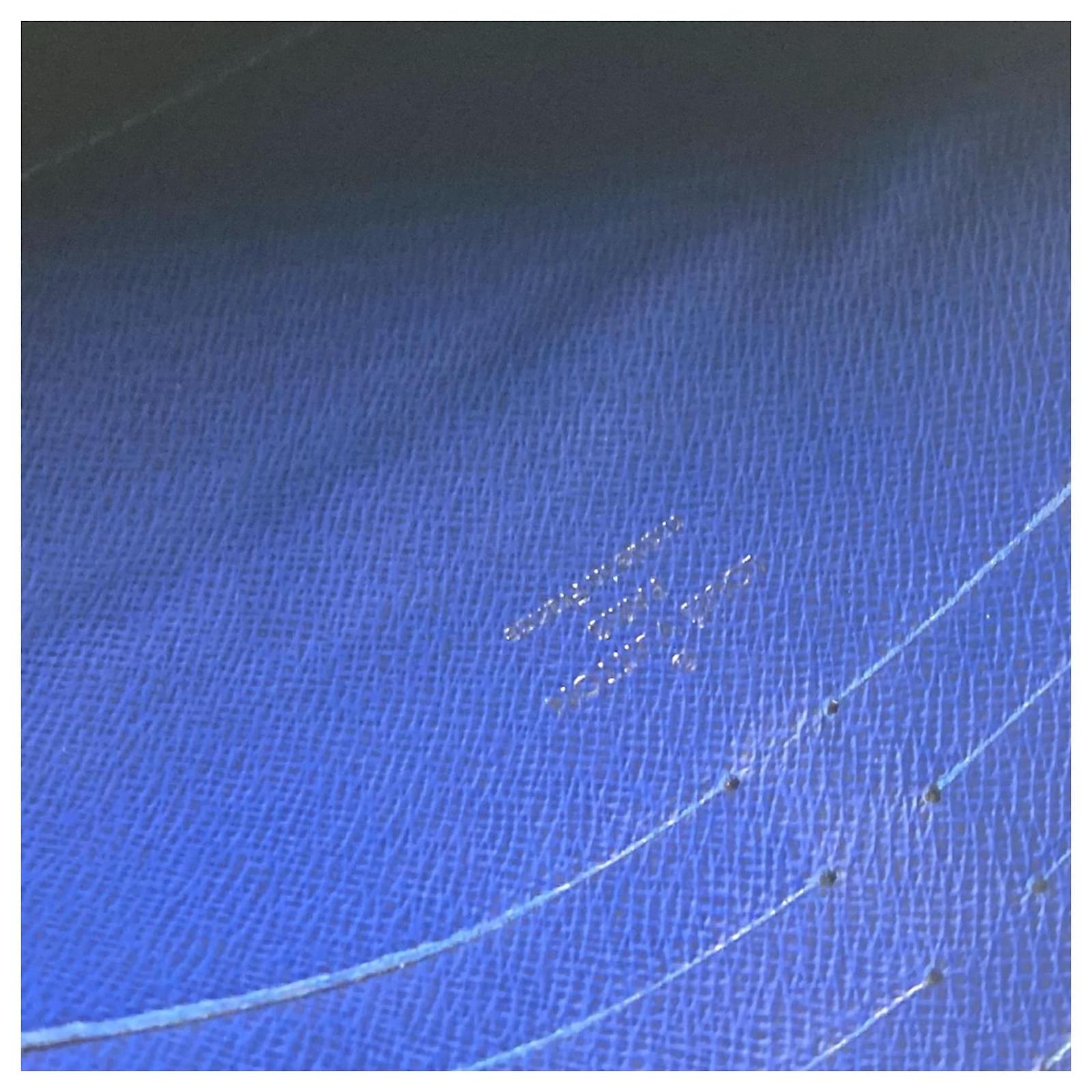 The Louis Vuitton Taiga Pochette Voyage MM is a stylish clutch bag designed for men, crafted from durable Taiga leather. It features a sleek black and blue color combination, making it a versatile accessory for various occasions. The bag measures 20cm in height, 26.5cm in width, and 5.5cm in depth, providing ample space for essentials.