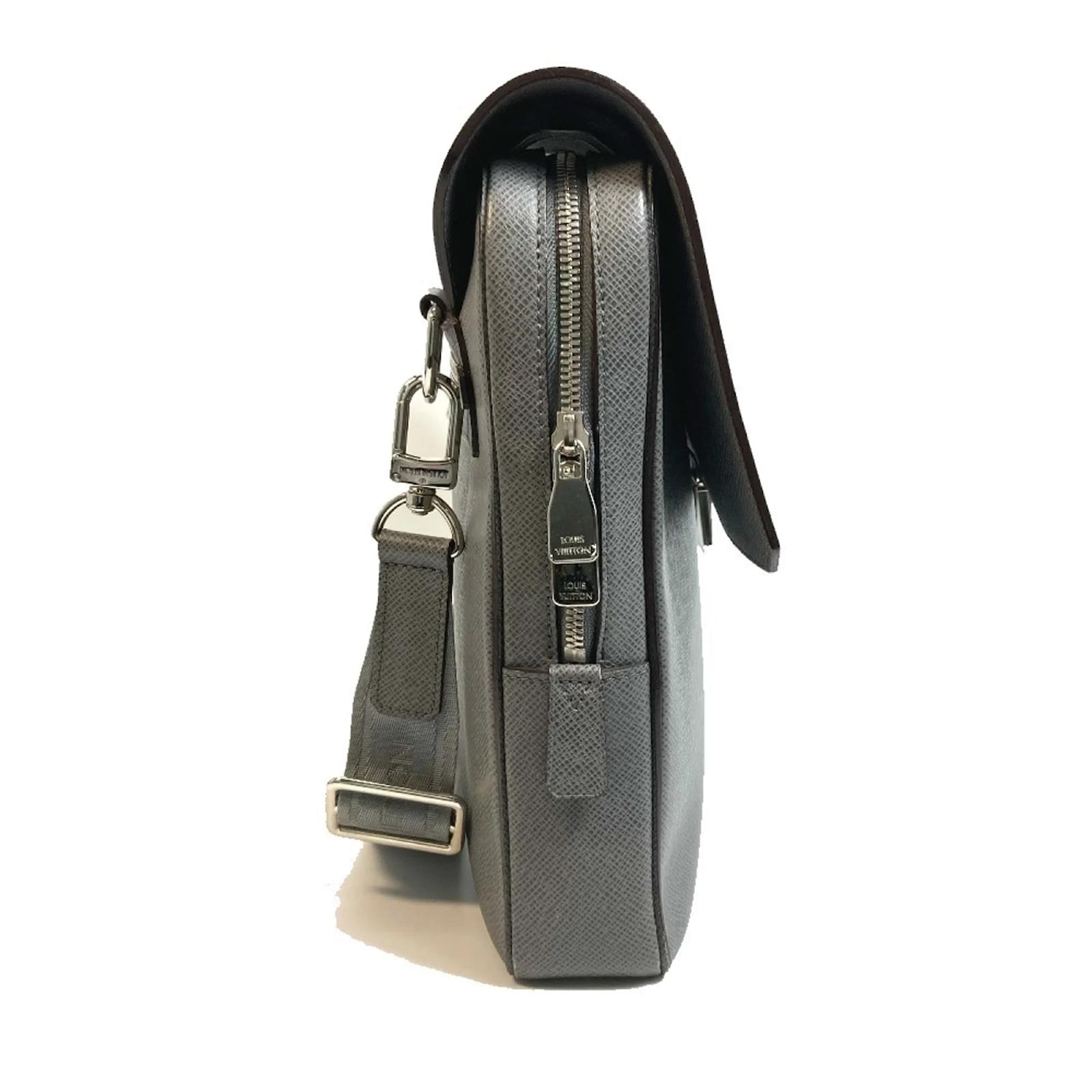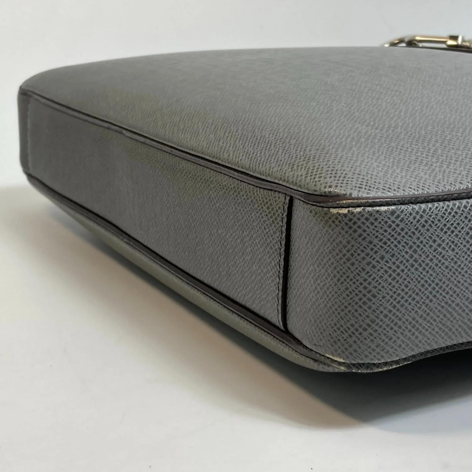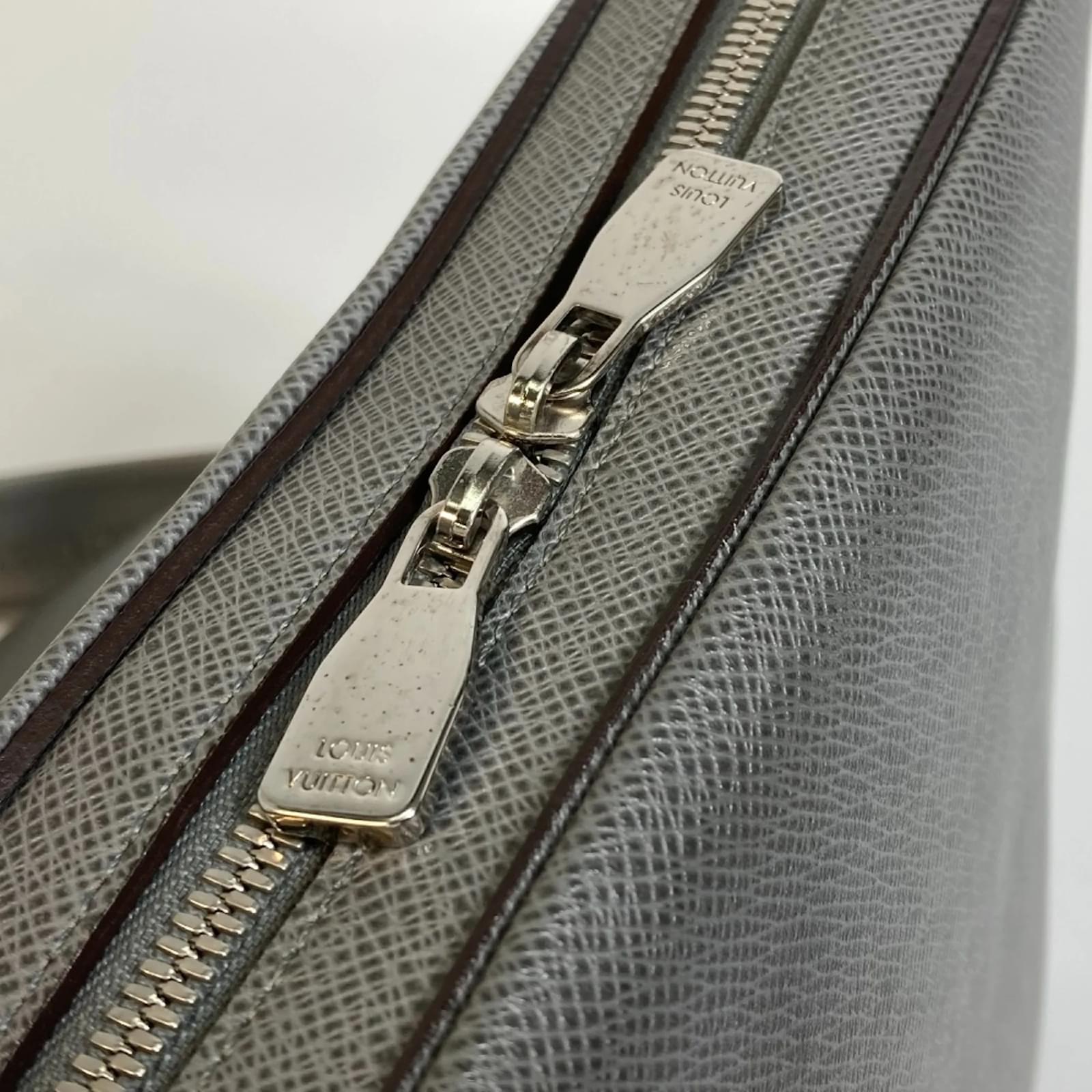 The Louis Vuitton Taiga Vasili PM is a versatile briefcase designed for casual use. Crafted from durable Taiga leather, this gray bag features a push lock closure for secure access. Its dimensions are 28cm in height, 37cm in width, and 6cm in depth, with a handle length of 14cm and a shoulder strap that extends to 138cm.