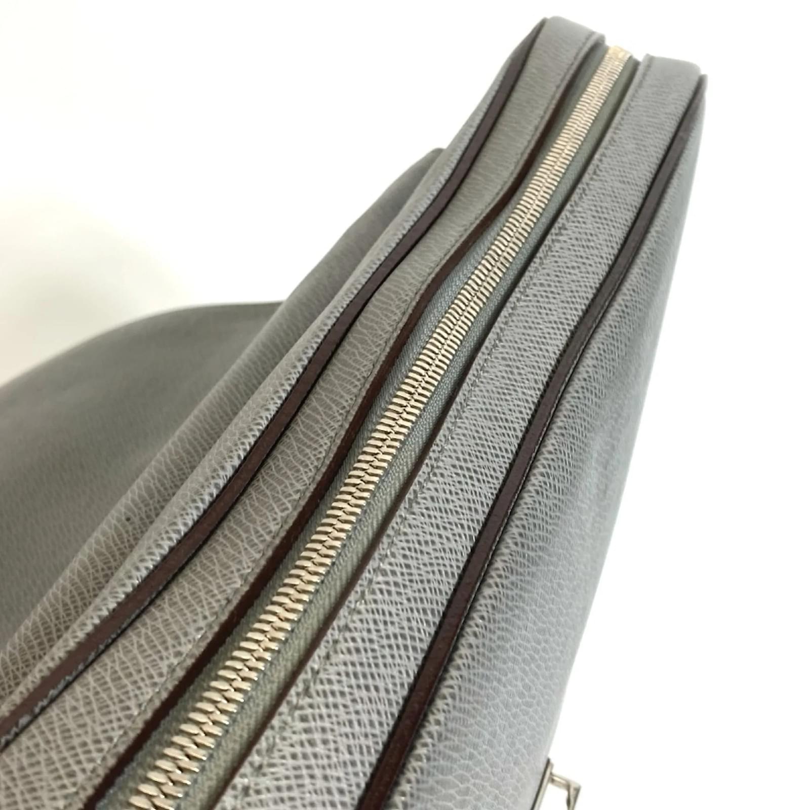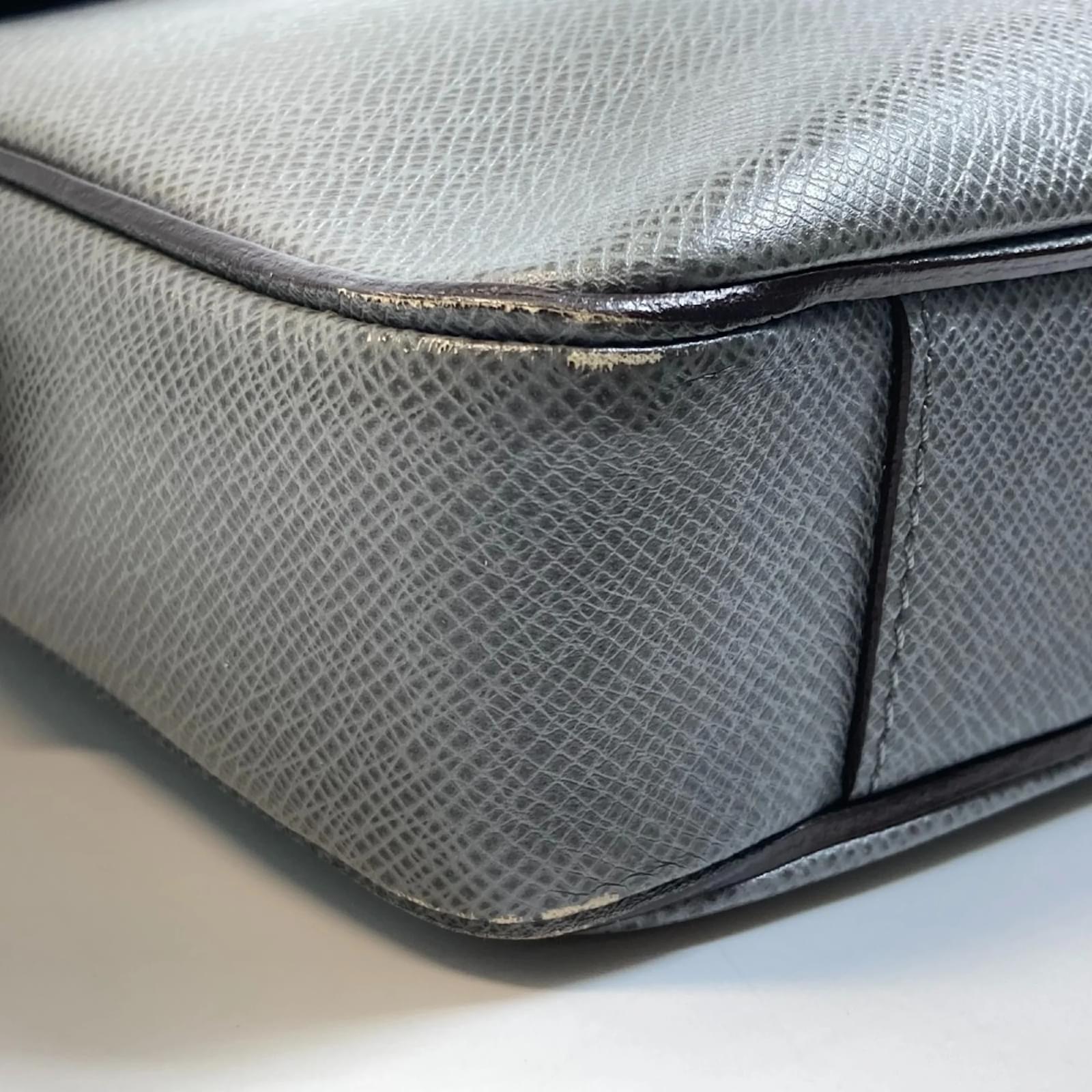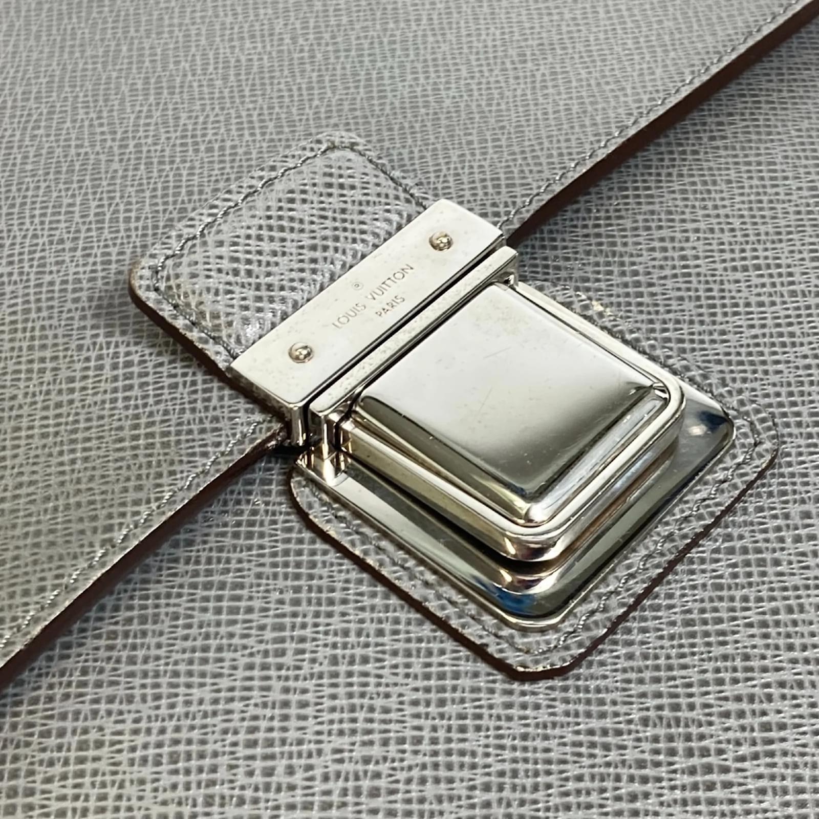 The Louis Vuitton Taiga Vasili PM is a versatile briefcase designed for casual use. Crafted from durable Taiga leather, this gray bag features a push lock closure for secure access. Its dimensions are 28cm in height, 37cm in width, and 6cm in depth, with a handle length of 14cm and a shoulder strap that extends to 138cm.