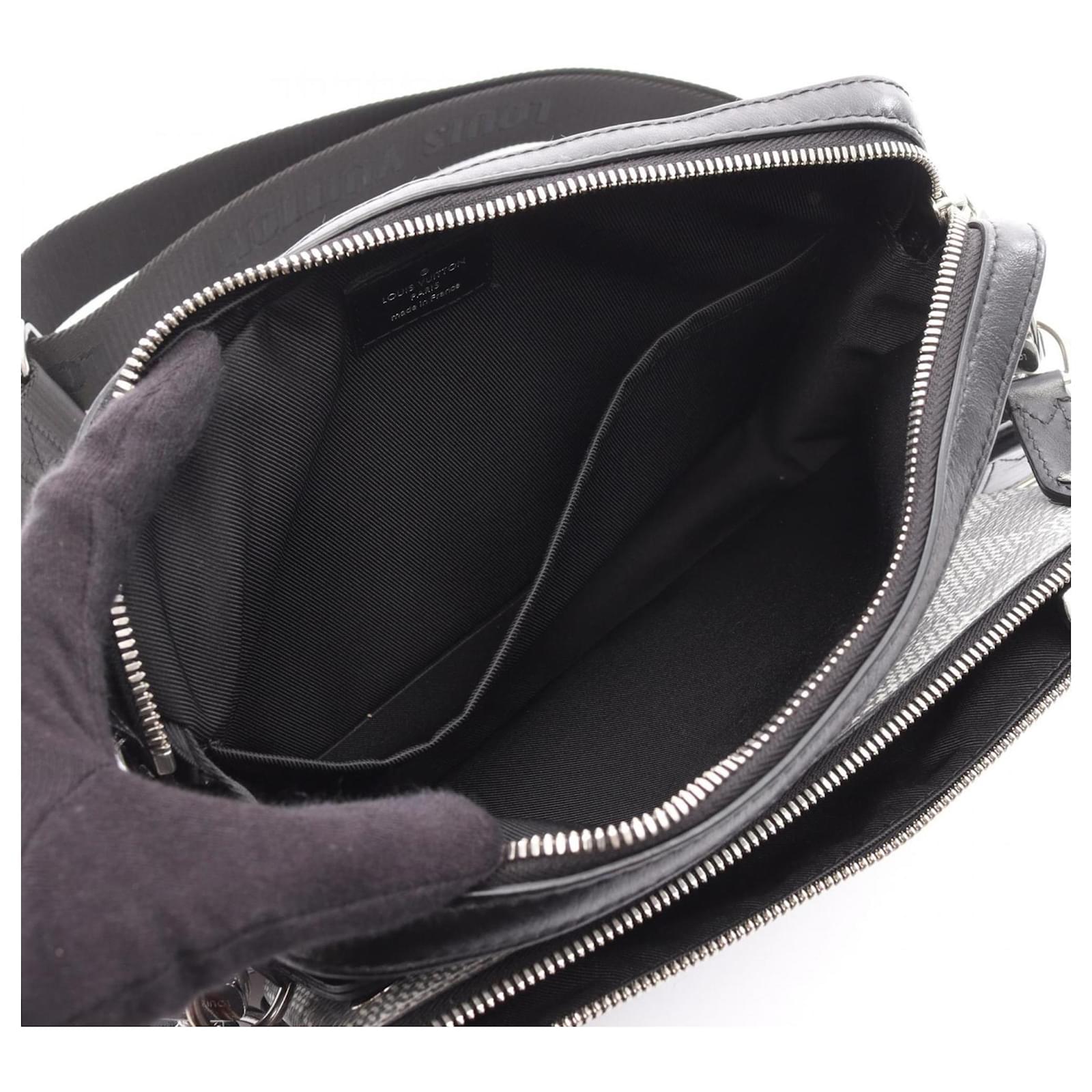 The Louis Vuitton Trio Messenger 3D Shoulder Bag is crafted from coated canvas and leather, featuring a Damier Graphite finish in gray and white. This shoulder bag measures 18cm in height, 25cm in width, and 4.5cm in depth, making it a practical accessory for daily use.