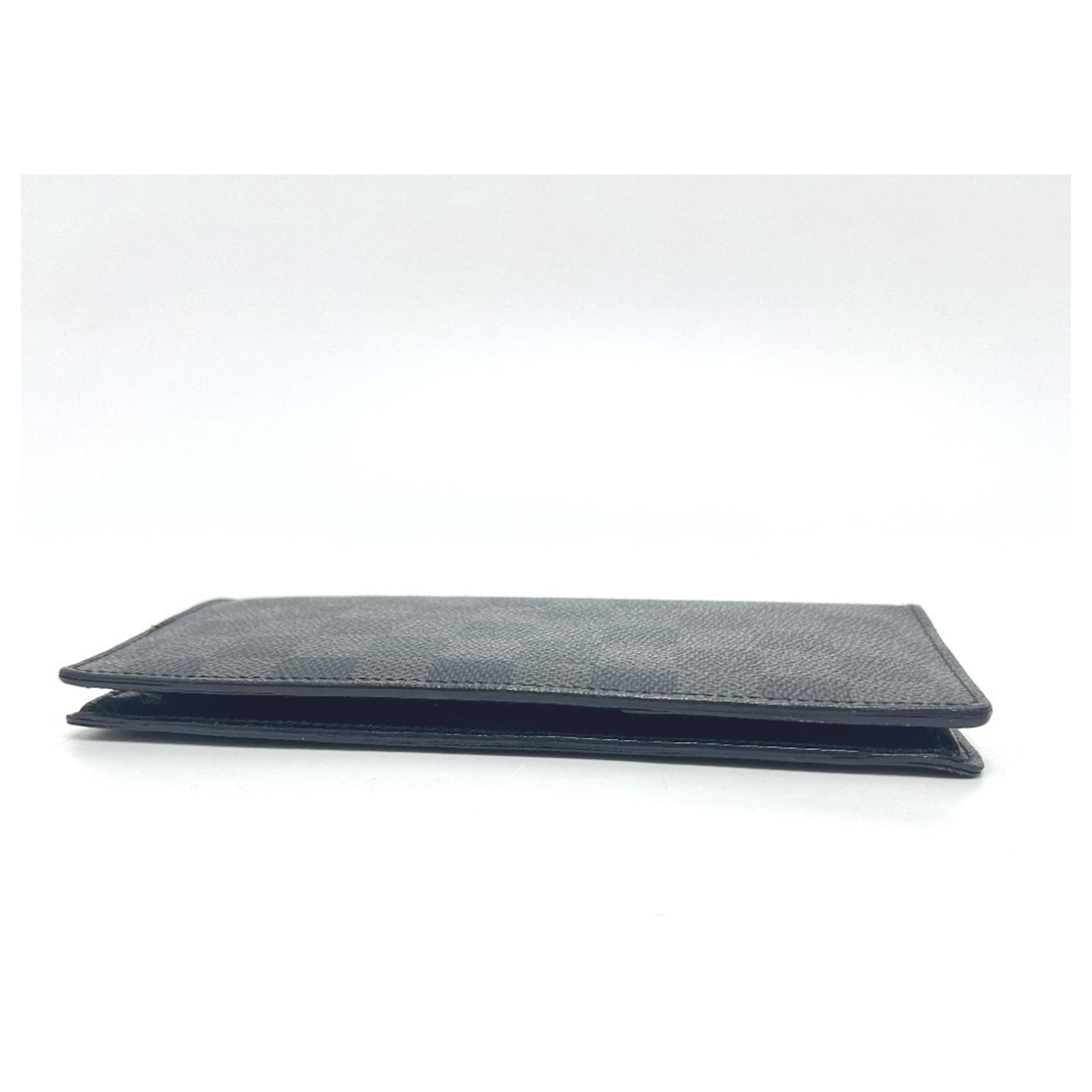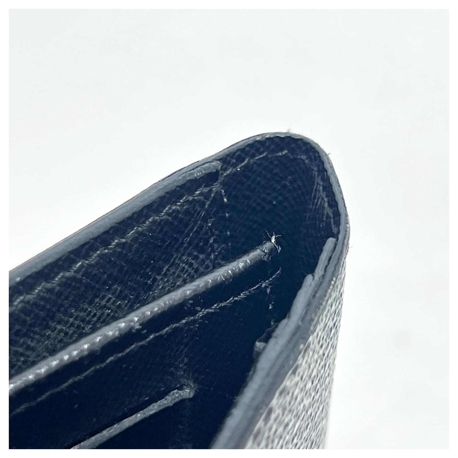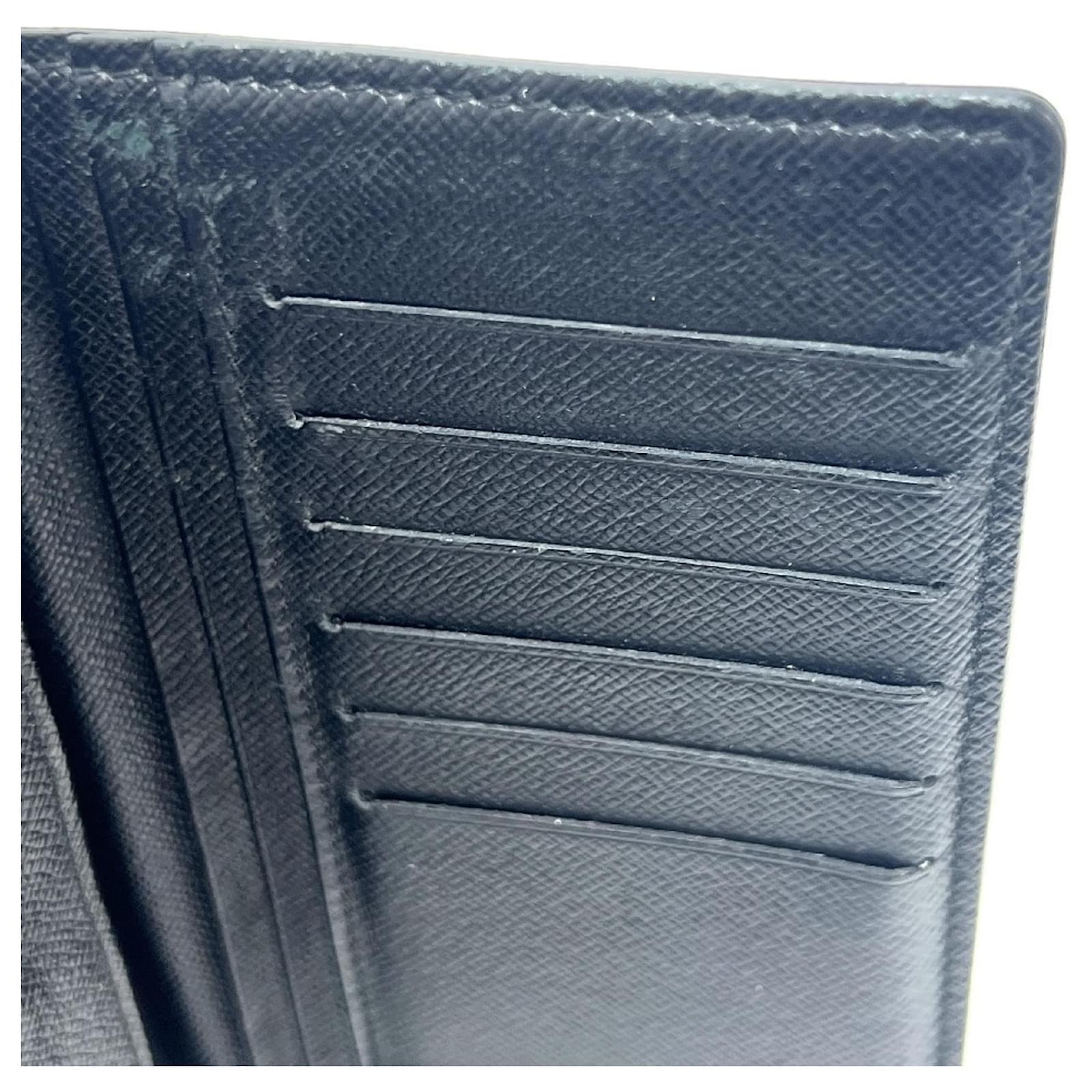The Louis Vuitton N62665 Portefeuille Brazza is a long bi-fold wallet designed for men, featuring a classic black Damier Graphite canvas. Measuring 10cm x 19cm (3.93'' x 7.48''), this wallet offers ample space for essentials. It is listed as used and falls under Rank B condition, indicating that while it shows visible traces of use, such as slight cracks at the edges, creasing inside, and minor peelings in the coin case, it remains functional. It is important for potential buyers to consult the provided images to assess the item’s condition accurately. No accessories are included with this wallet.