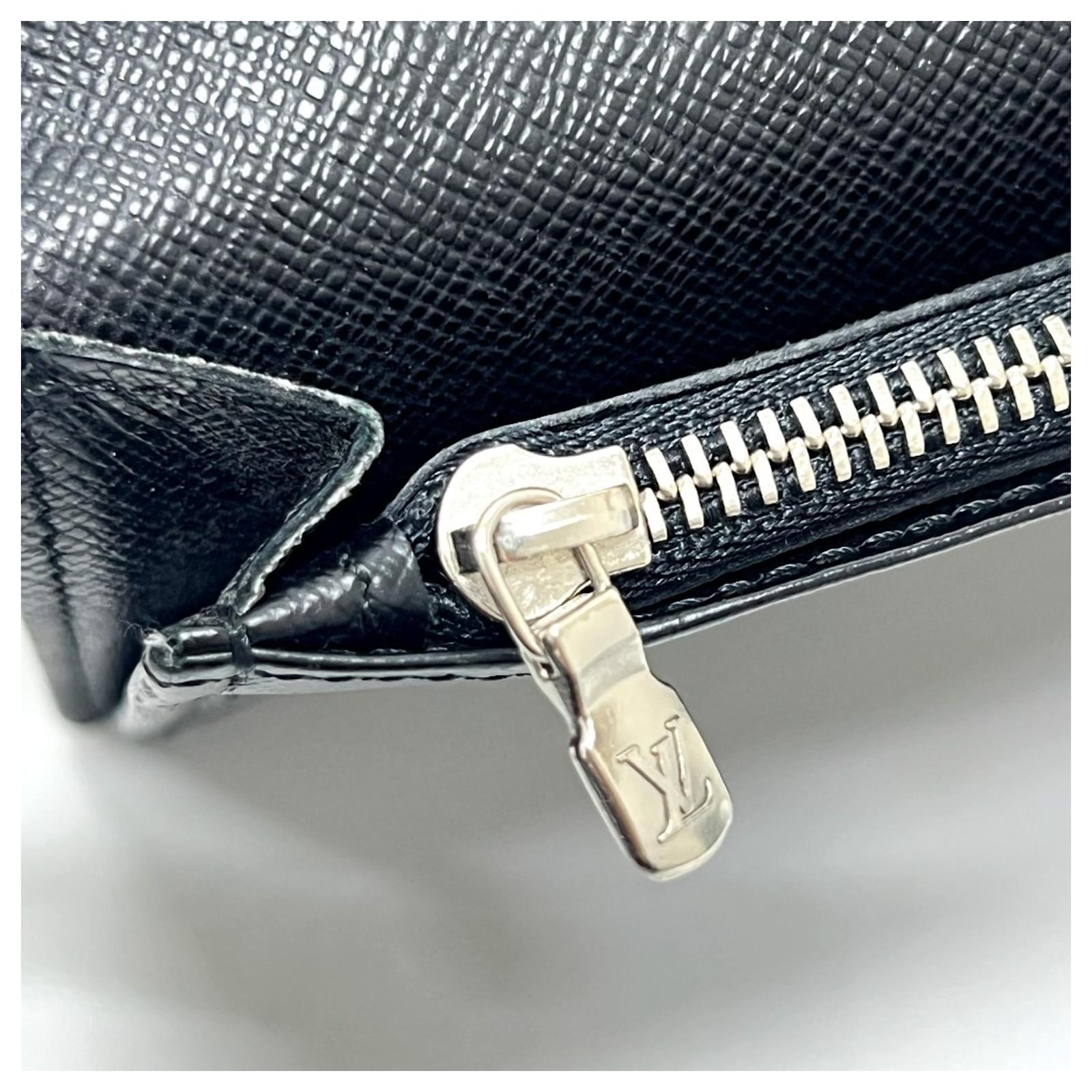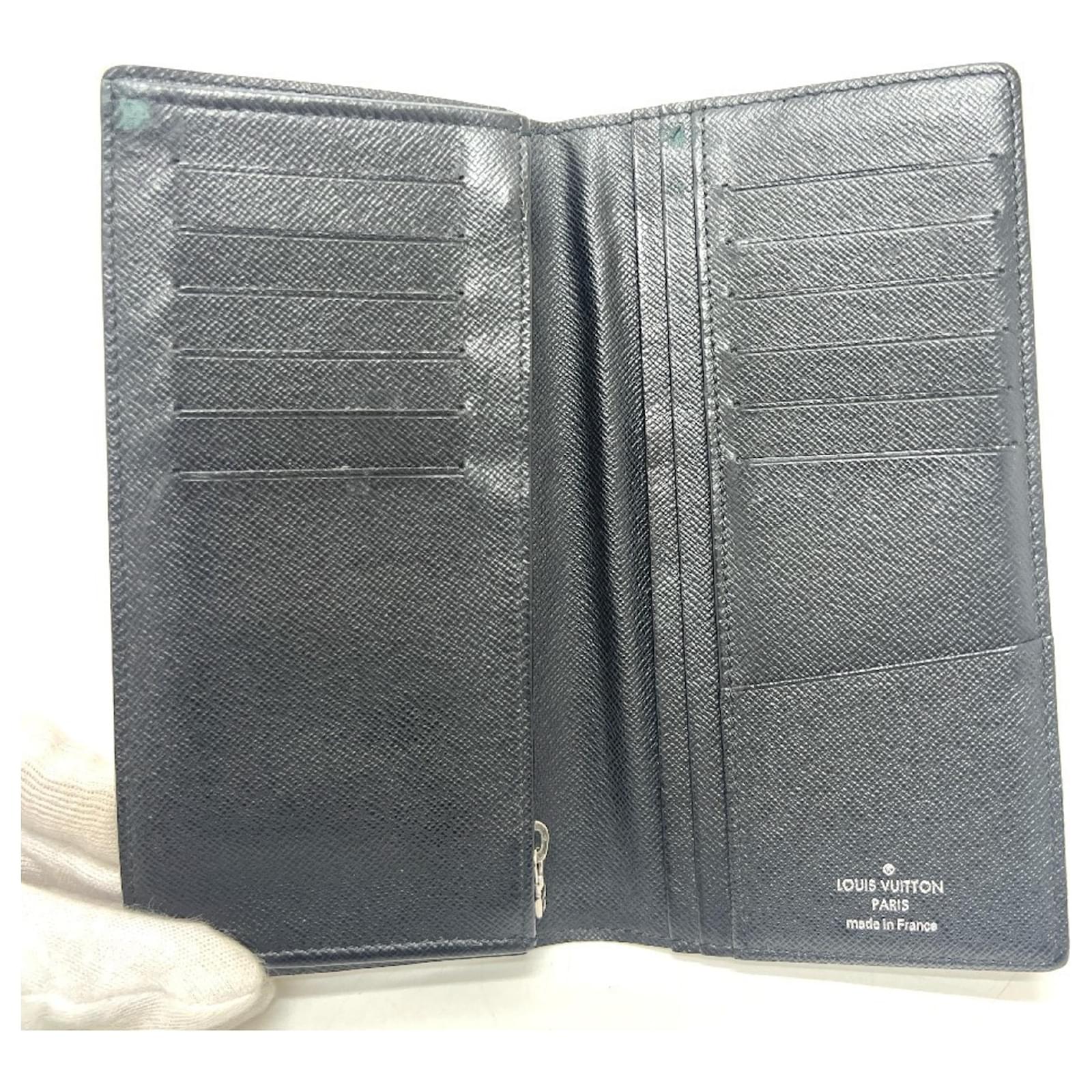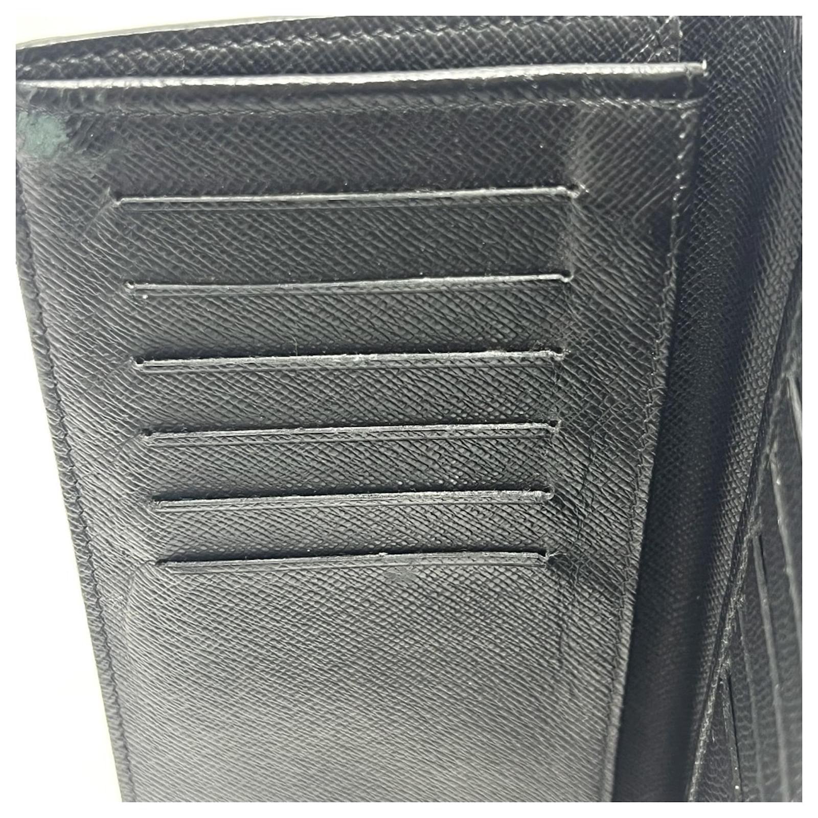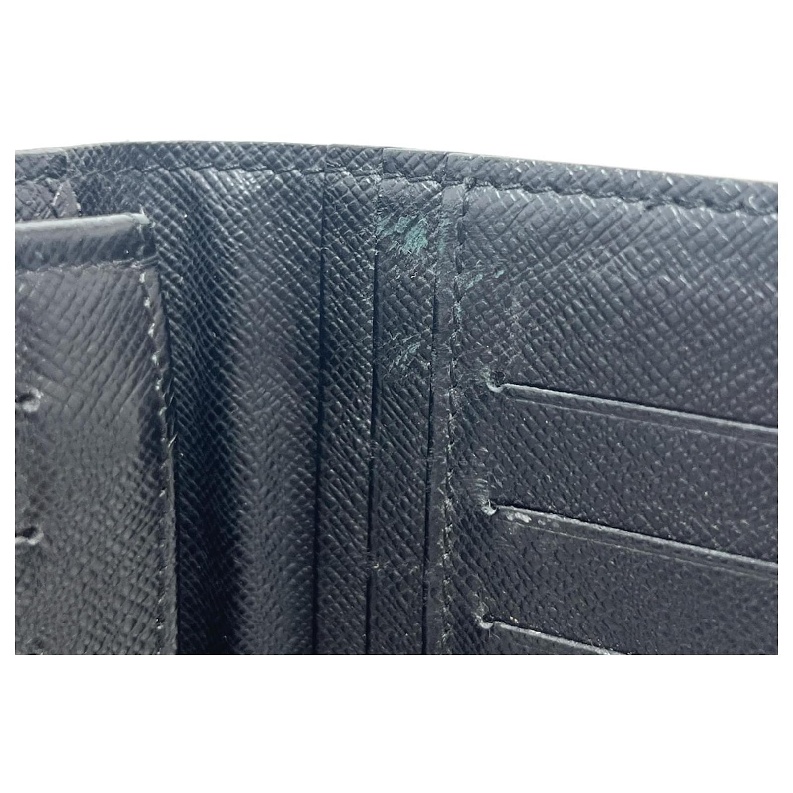 The Louis Vuitton N62665 Portefeuille Brazza is a long bi-fold wallet designed for men, featuring a classic black Damier Graphite canvas. Measuring 10cm x 19cm (3.93'' x 7.48''), this wallet offers ample space for essentials. It is listed as used and falls under Rank B condition, indicating that while it shows visible traces of use, such as slight cracks at the edges, creasing inside, and minor peelings in the coin case, it remains functional. It is important for potential buyers to consult the provided images to assess the item’s condition accurately. No accessories are included with this wallet.