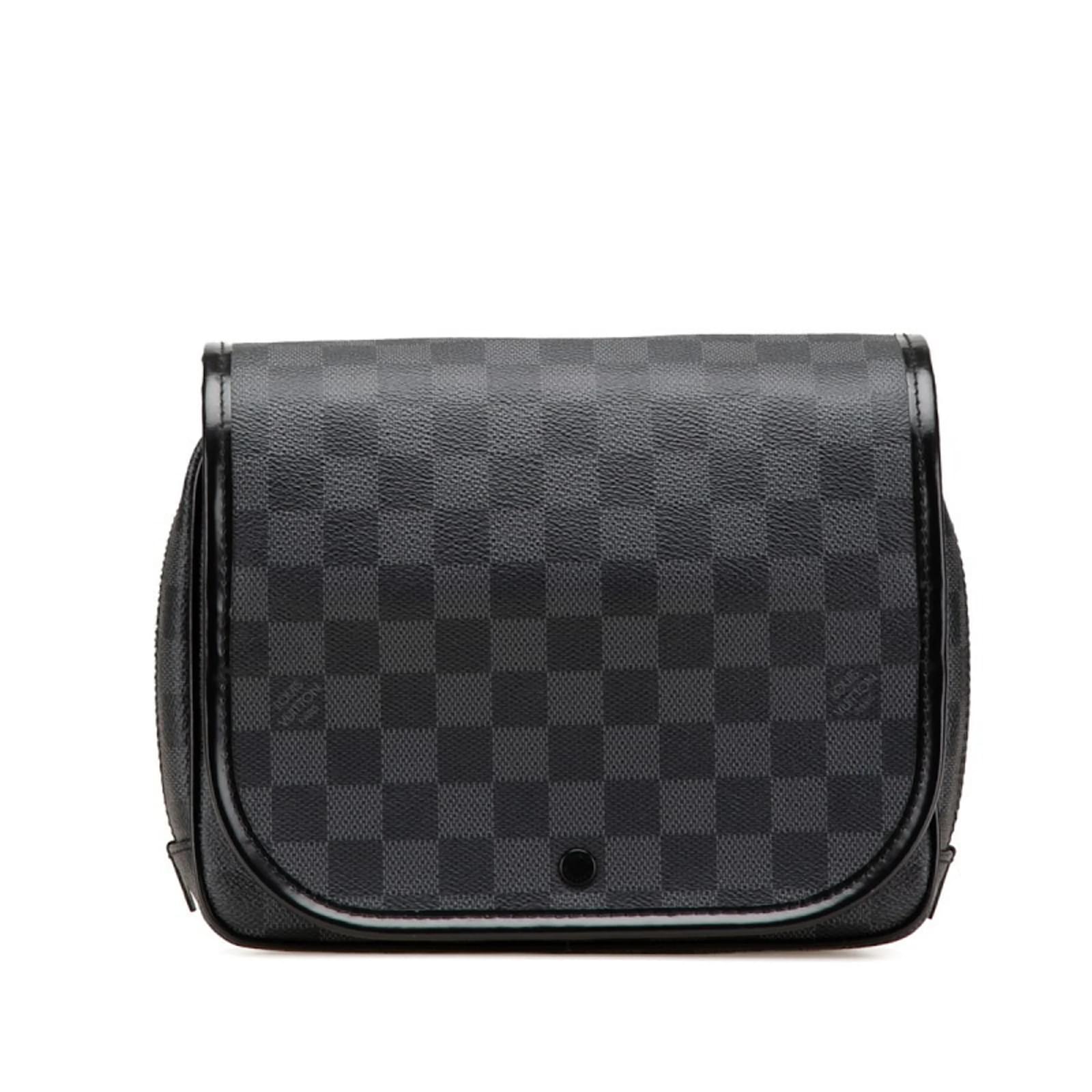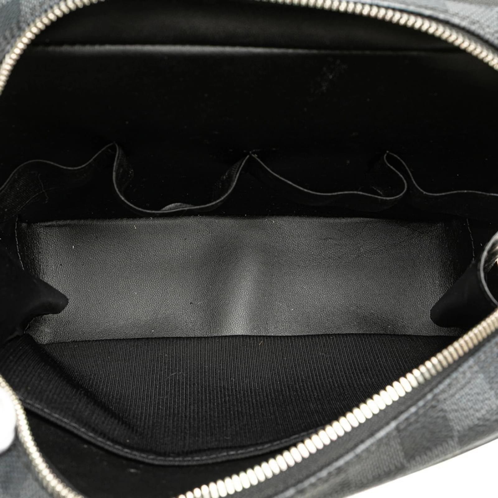 This item is part of the Damier Graphite line and is in used condition, classified as Rank AB, indicating it shows traces of usage with slight scratches and dirt, but remains in generally good condition. Potential buyers are encouraged to review the provided images for a clear understanding of the item's condition and included accessories.