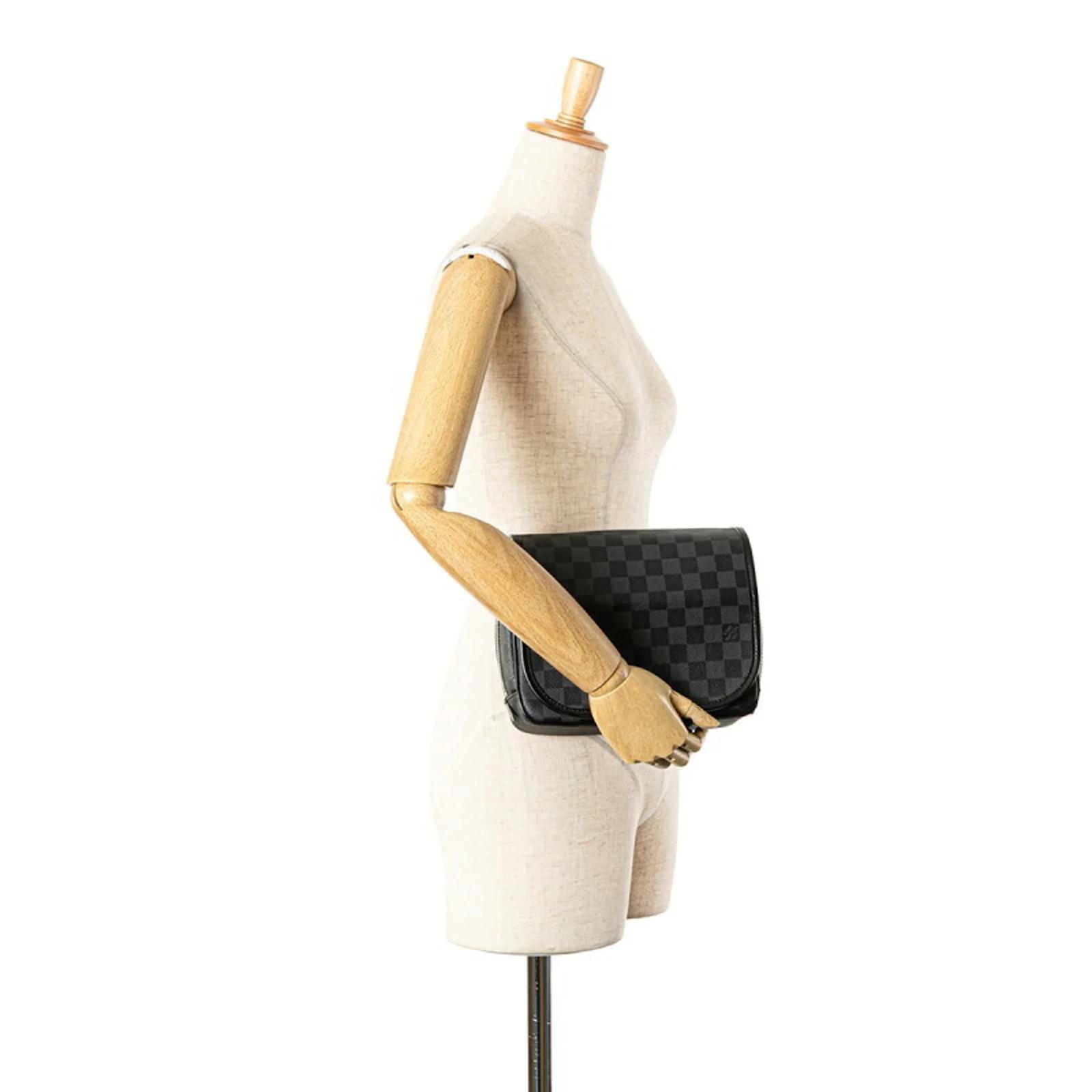 The Louis Vuitton Damier Graphite Truth Suspendable Pouch is a stylish accessory designed for men. This pouch features a flap closure and is crafted from a combination of PVC and leather, presented in a classic black color. With dimensions of 19cm x 22cm x 7.5cm, it offers a compact yet functional size.