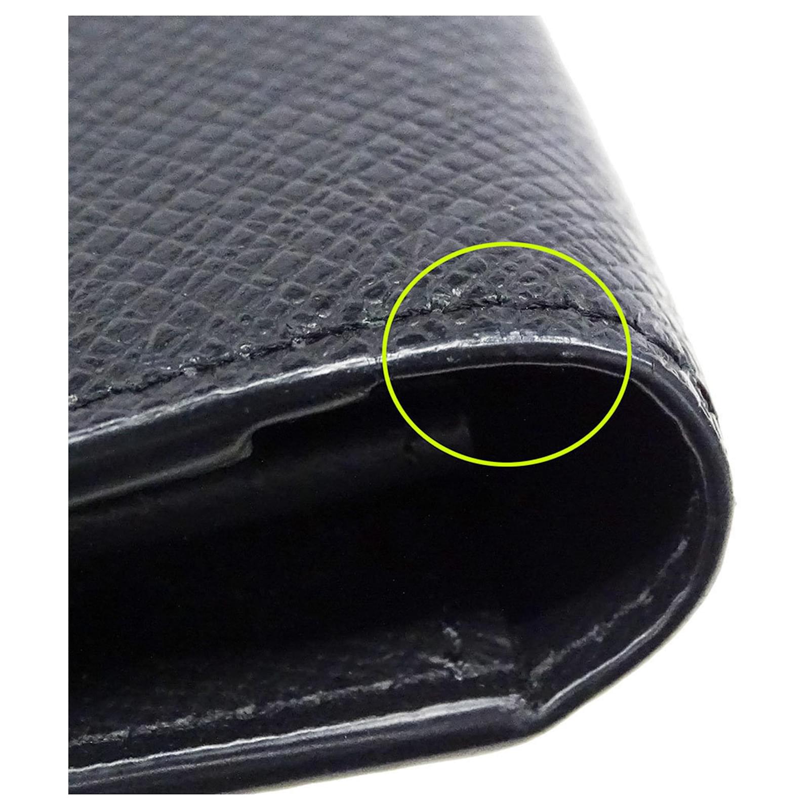 The Louis Vuitton Men's Taiga Portefeuille Brazza Long Wallet is crafted from premium Taiga leather in a sophisticated black hue. Designed as a bi-fold wallet, it measures 19cm x 9.5cm x 2cm, making it a practical accessory for everyday use. This wallet is a pre-owned item in acceptable condition, classified as Rank B due to visible traces of usage, including slight stains, slight edge cracks, and a slight dent in the card case. It retains moderate overall wear, including scratches and dirt. Before finalizing the purchase, potential buyers are encouraged to examine the provided images for an accurate depiction of its condition. The wallet comes complete with its original box and dust bag, ensuring that it is well-presented. Originating from France, this piece reflects Louis Vuitton's commitment to quality and style.