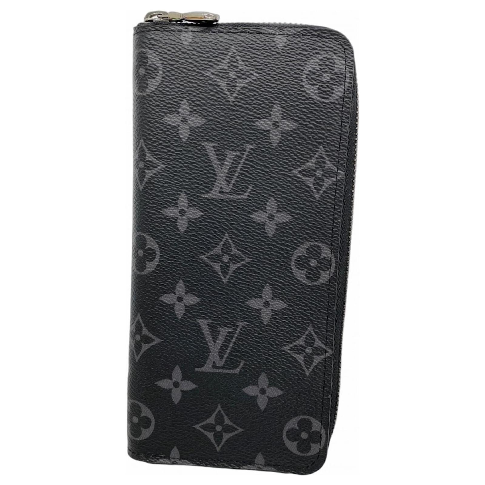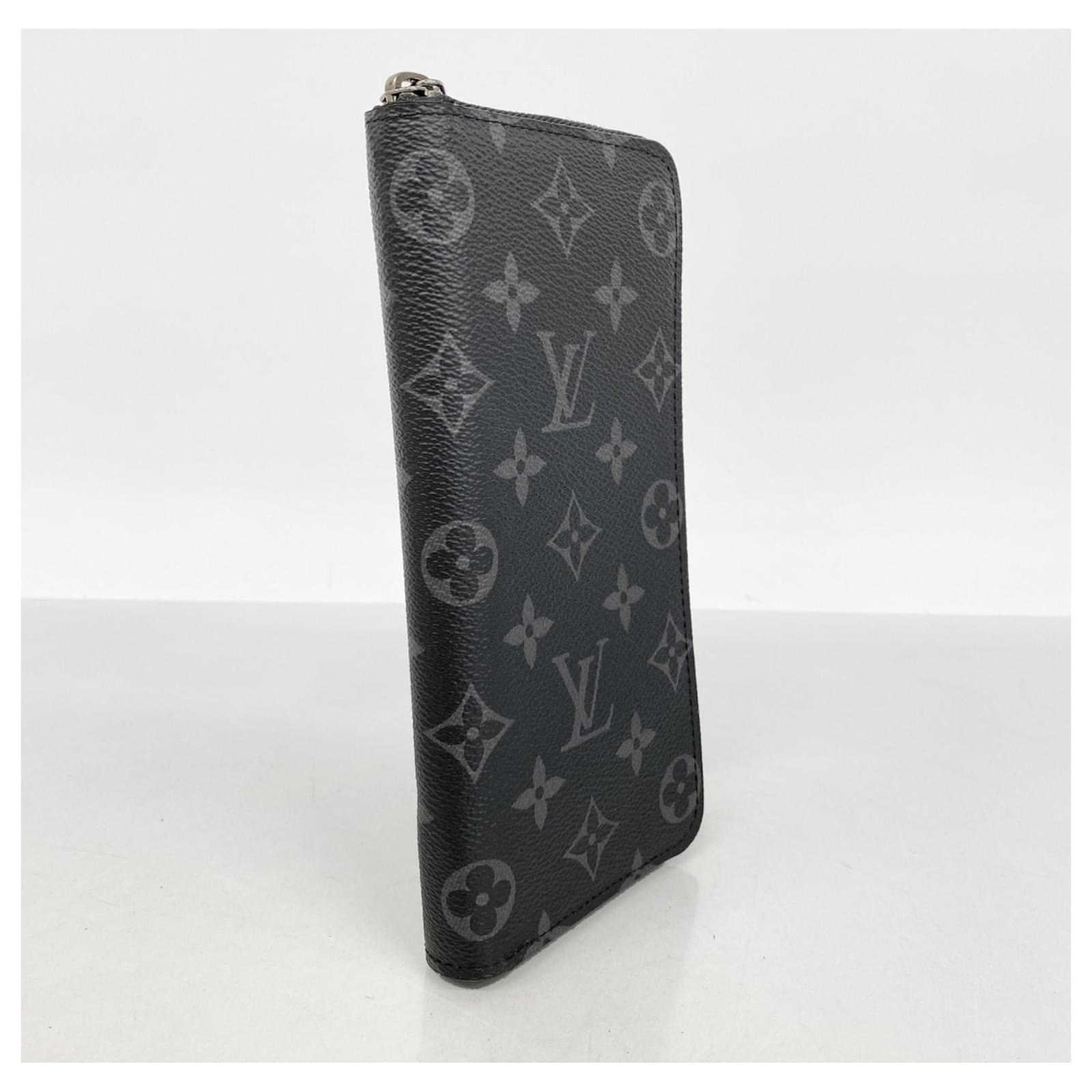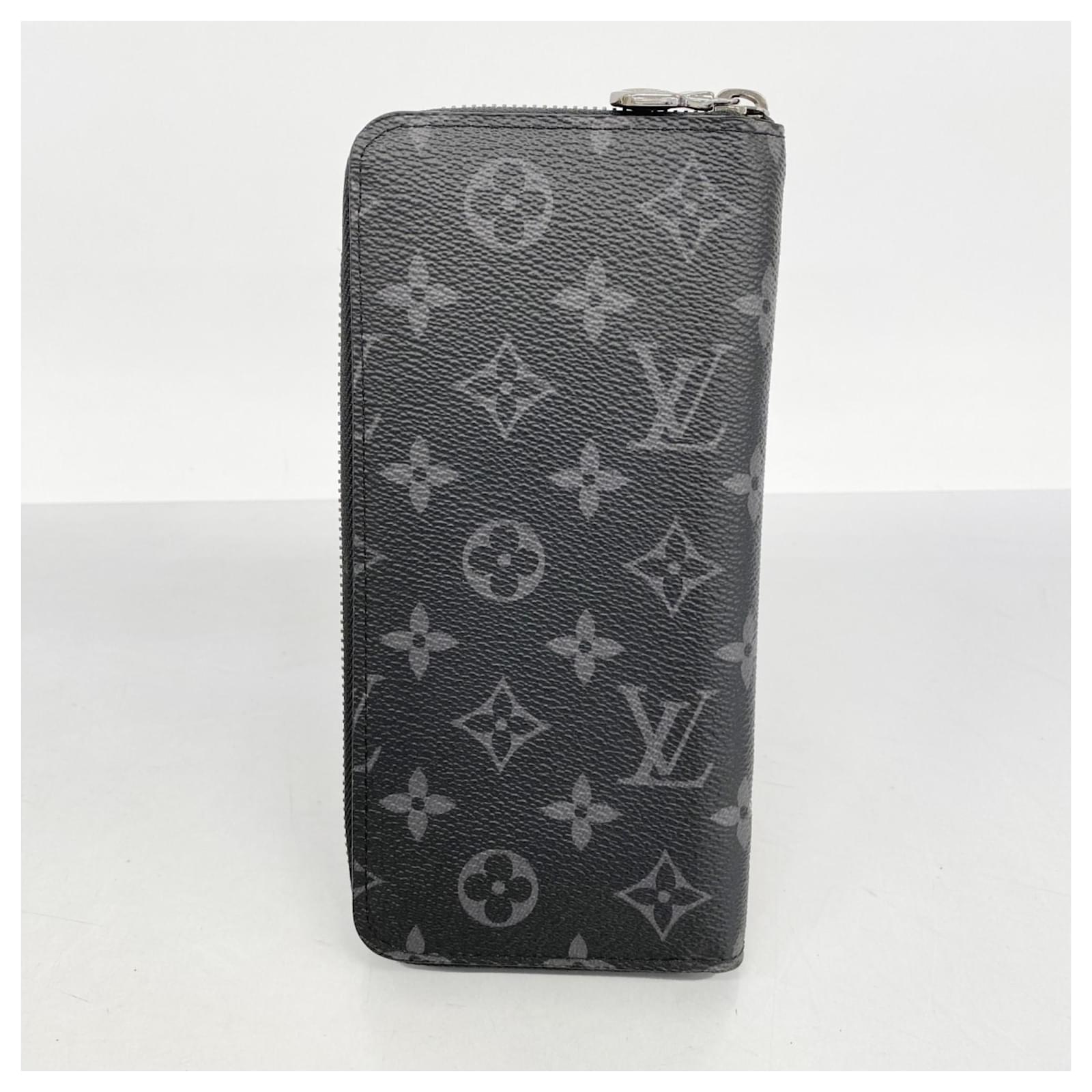 The Louis Vuitton Monogram Eclipse Zippy Wallet is a stylish black bi-fold wallet designed for men. It measures 20cm x 9.5cm x 2cm, making it a practical choice for daily use. This particular item is pre-owned and classified as being in good overall condition, bearing slight traces of usage, scratches, and dirt. Included with the purchase is the original box. Buyers are encouraged to review the accompanying images to assess the item's current condition and included accessories before making a decision.