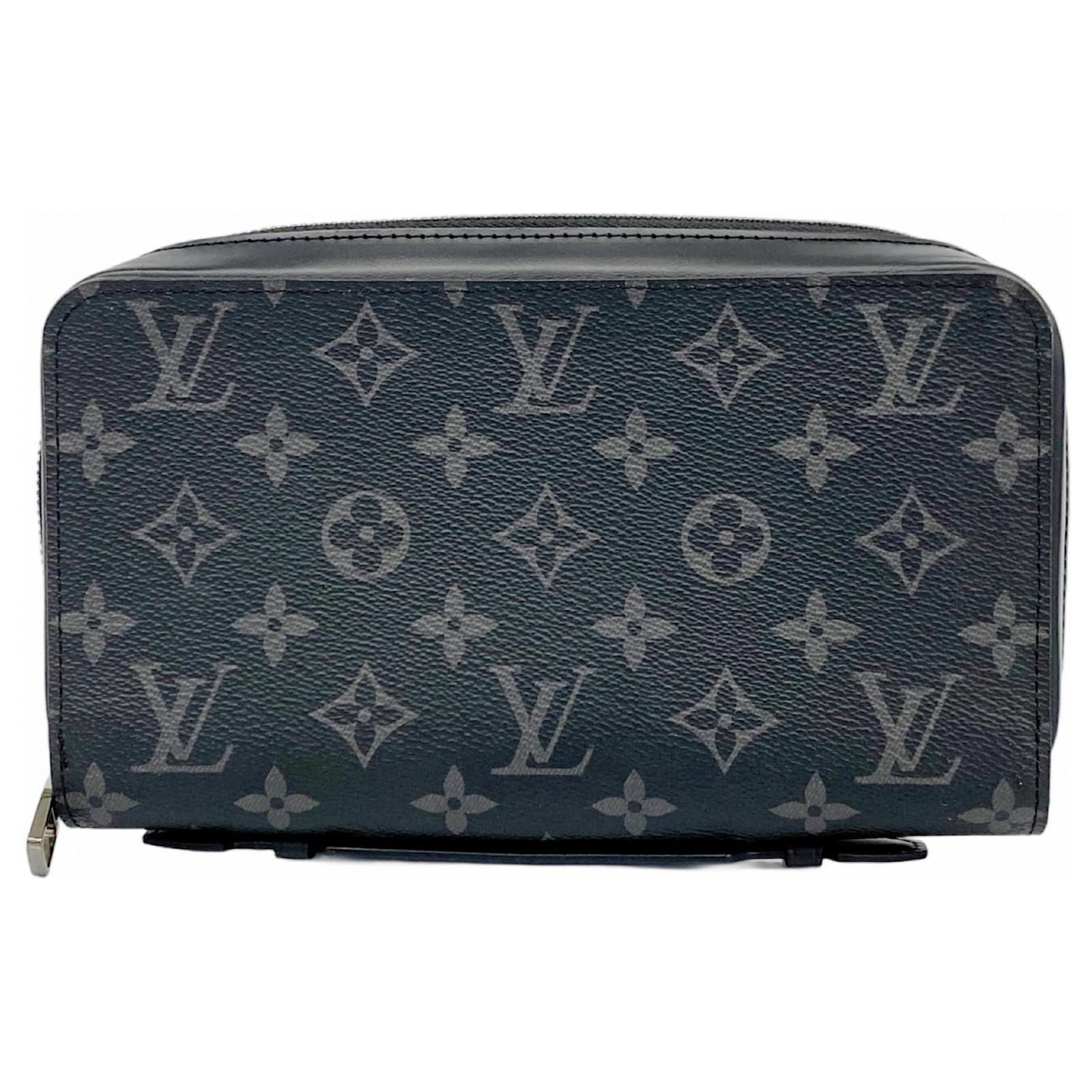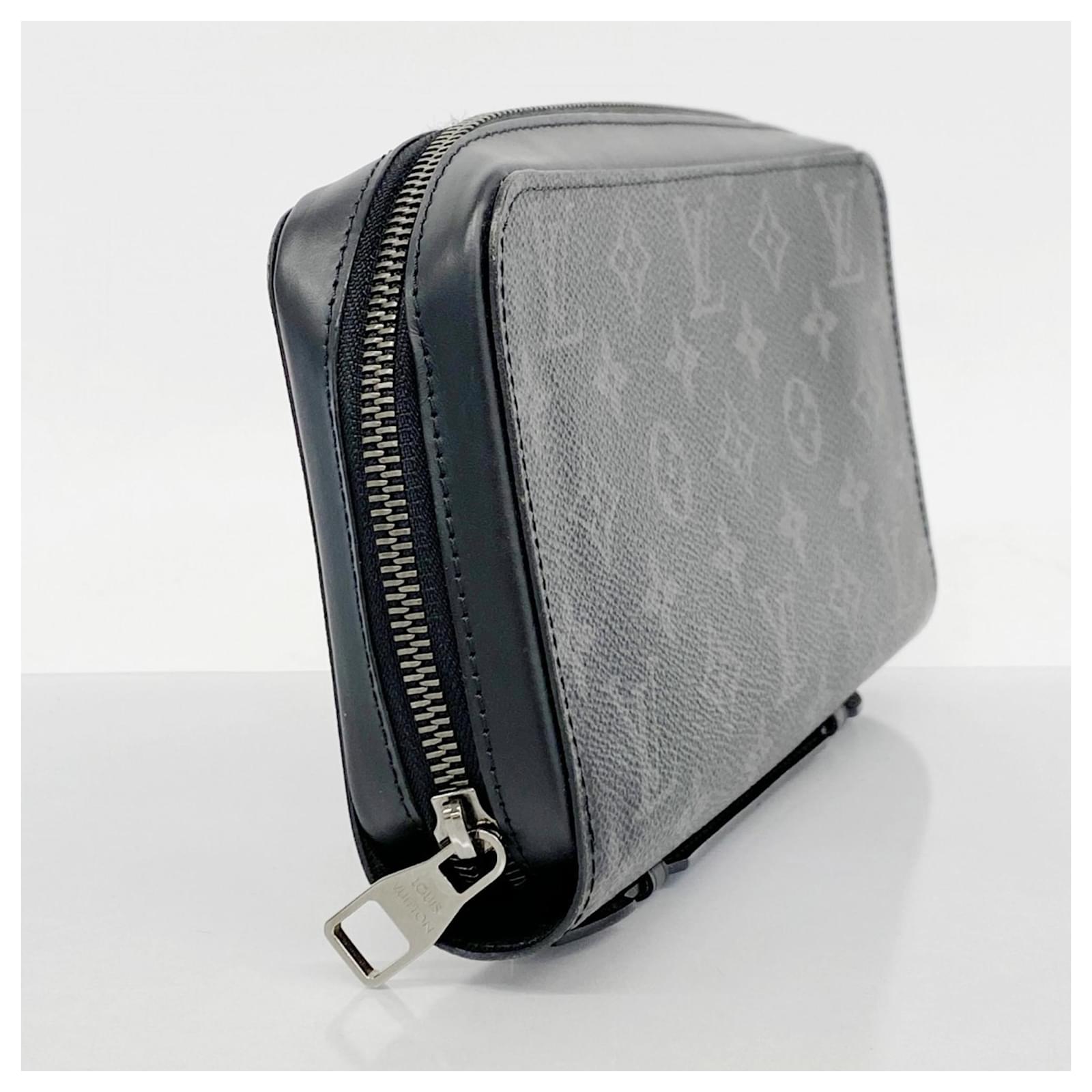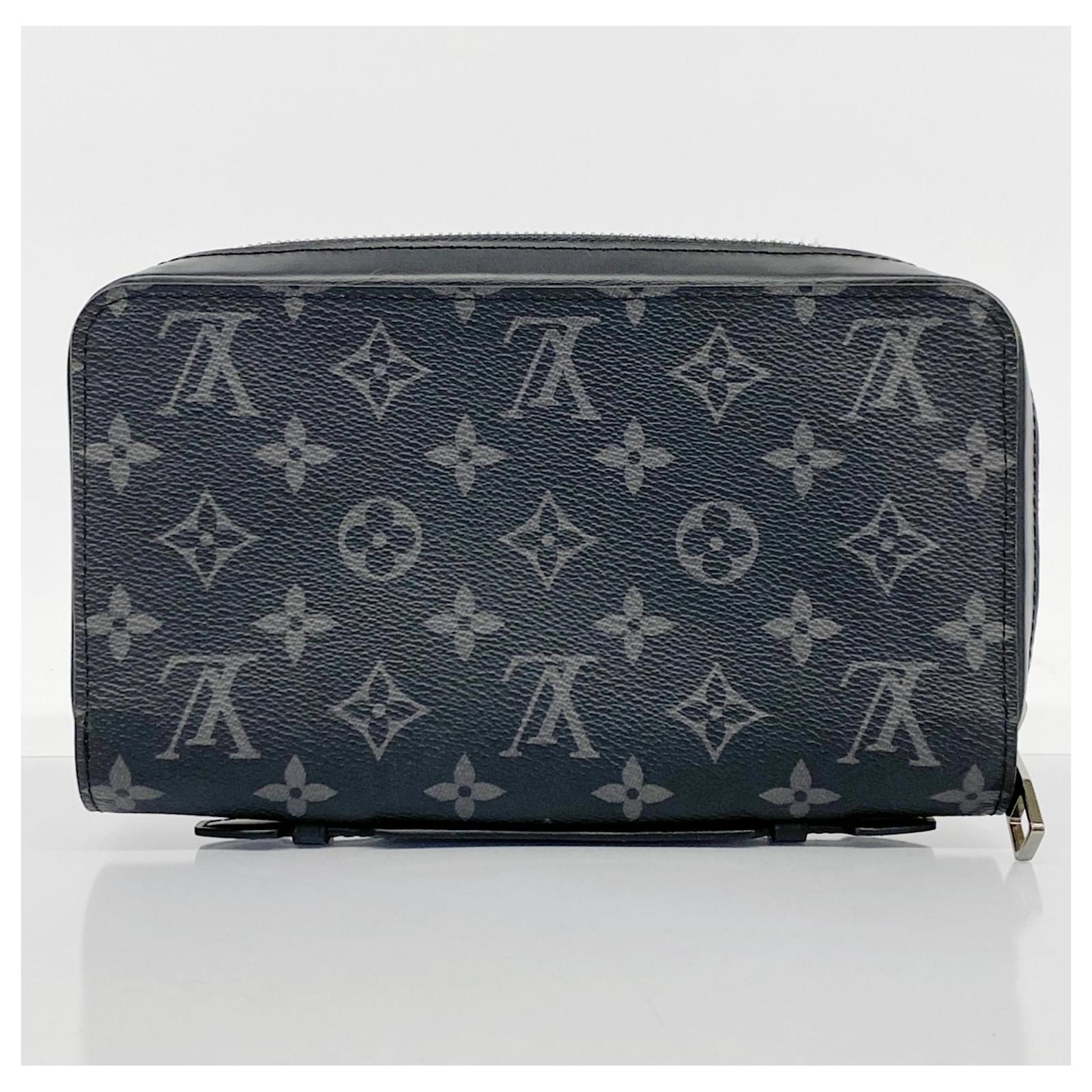 The Louis Vuitton Monogram Eclipse Zippy XL Long Wallet is a bi-fold wallet designed for men, featuring a sleek black color. It measures 13cm in height, 22cm in width, and 4.5cm in depth, making it a practical accessory for everyday use. This wallet is pre-owned and classified as being in good condition, with slight traces of usage, including minor scratches and dirt. The item is identified by the model number M61698. Please refer to the images for a detailed view of its condition and included accessories, as none are provided with the wallet.