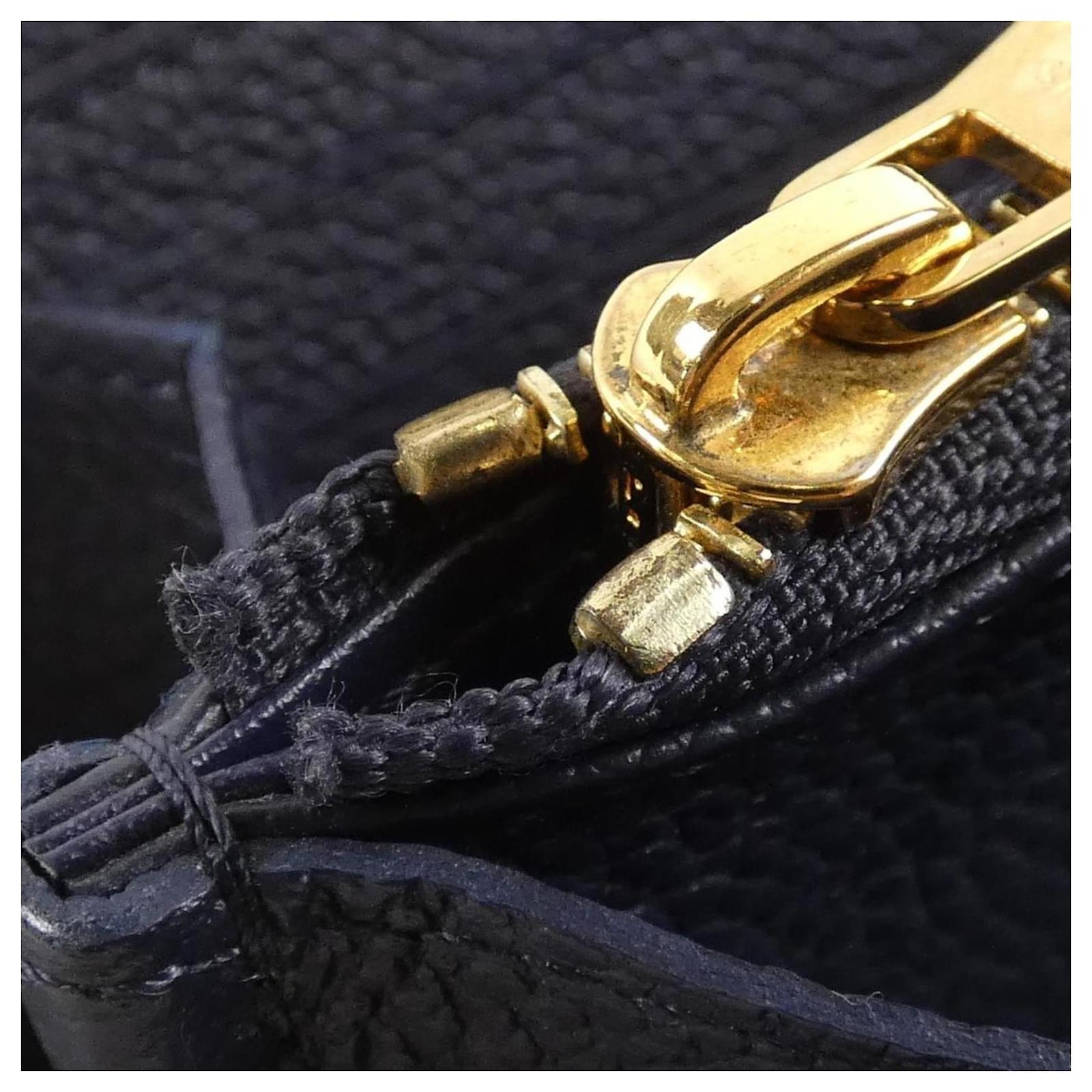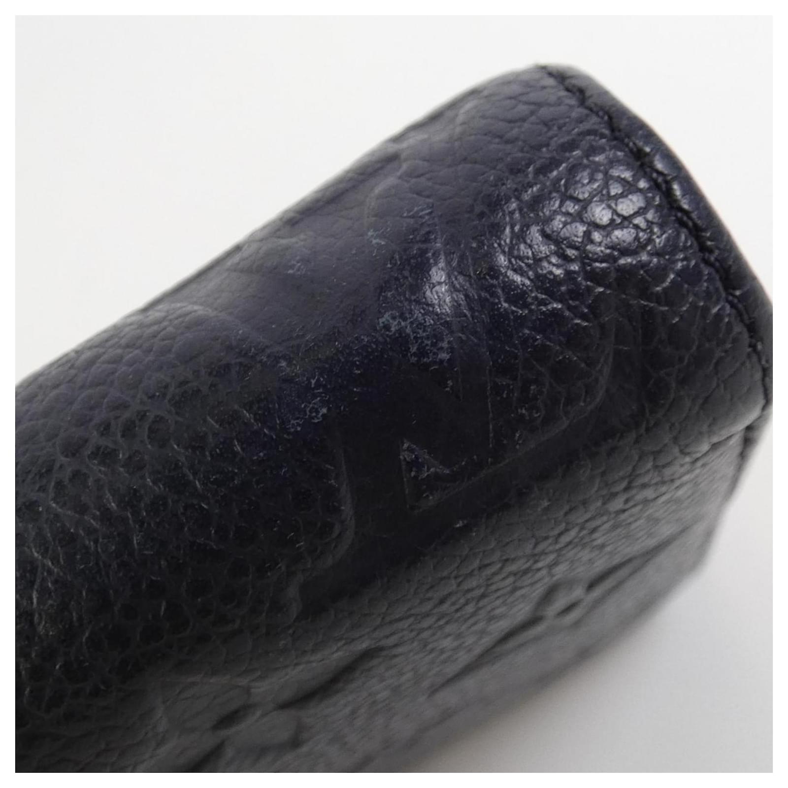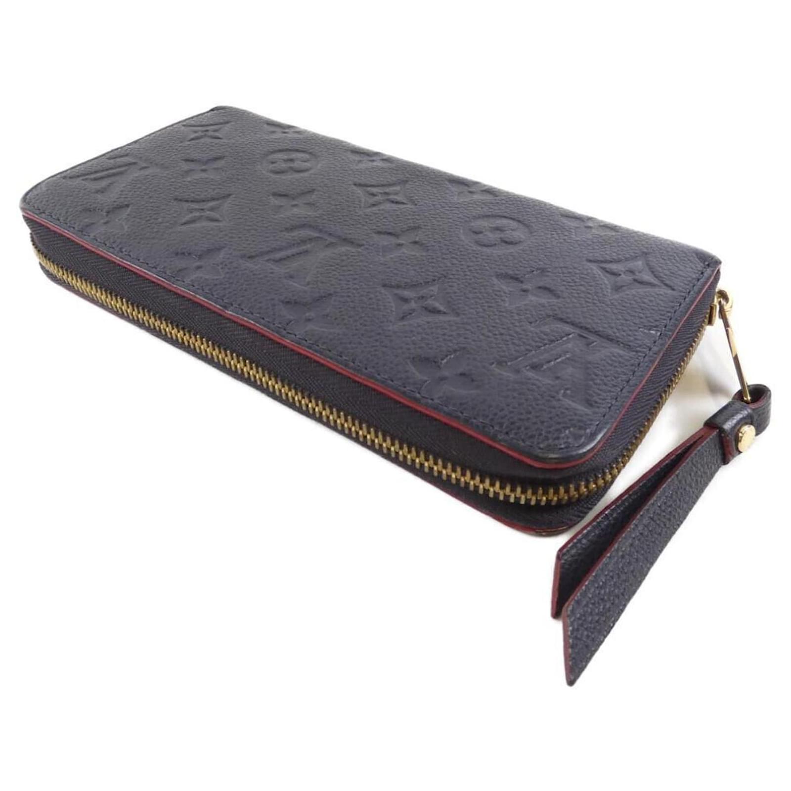 This Louis Vuitton Monogram Empreinte Zippy Wallet, model M62121, features a card wallet design in a marine rouge color. Made from Monogram Empreinte material, it measures 10.5cm x 19.5cm x 2.5cm (4.13'' x 7.67'' x 0.98''). The wallet is classified as used (acceptable) with a Rank B condition, indicating visible traces of usage, including moderate scratches and dirt. The zipper pull shows slight damage, but the wallet remains functional for continued use. It comes with a dust bag, and potential buyers are encouraged to review the images for a detailed view of the item's condition.