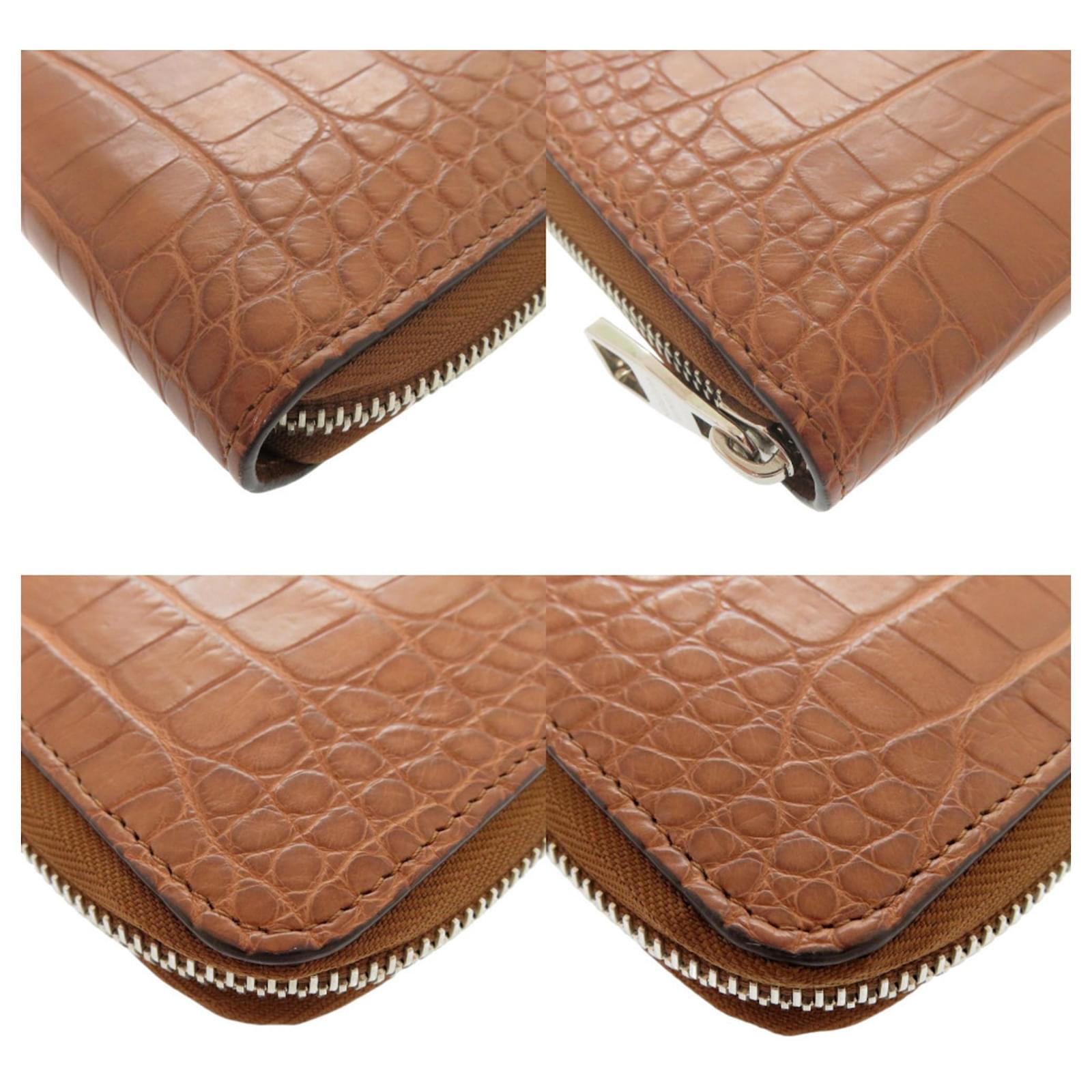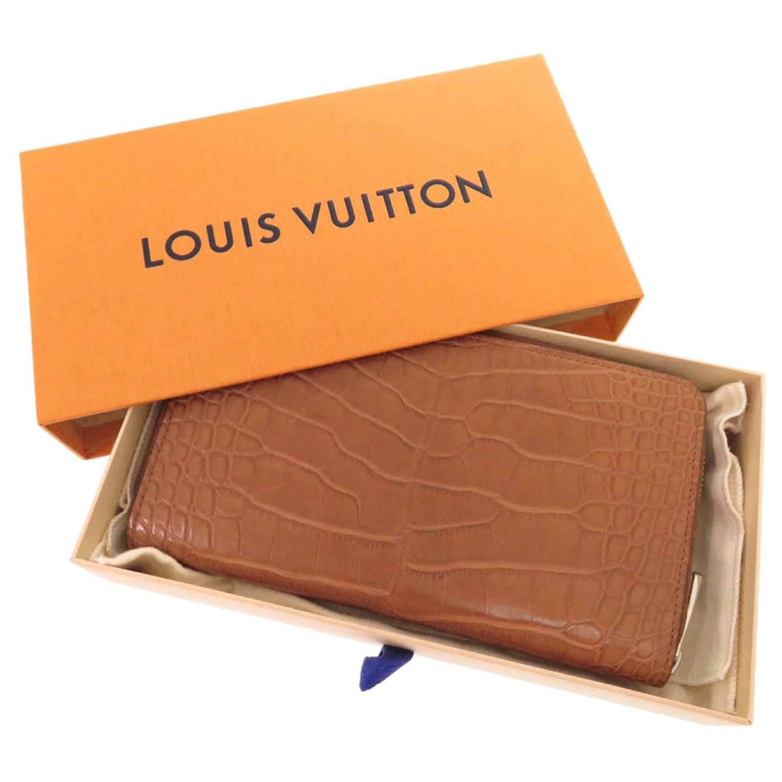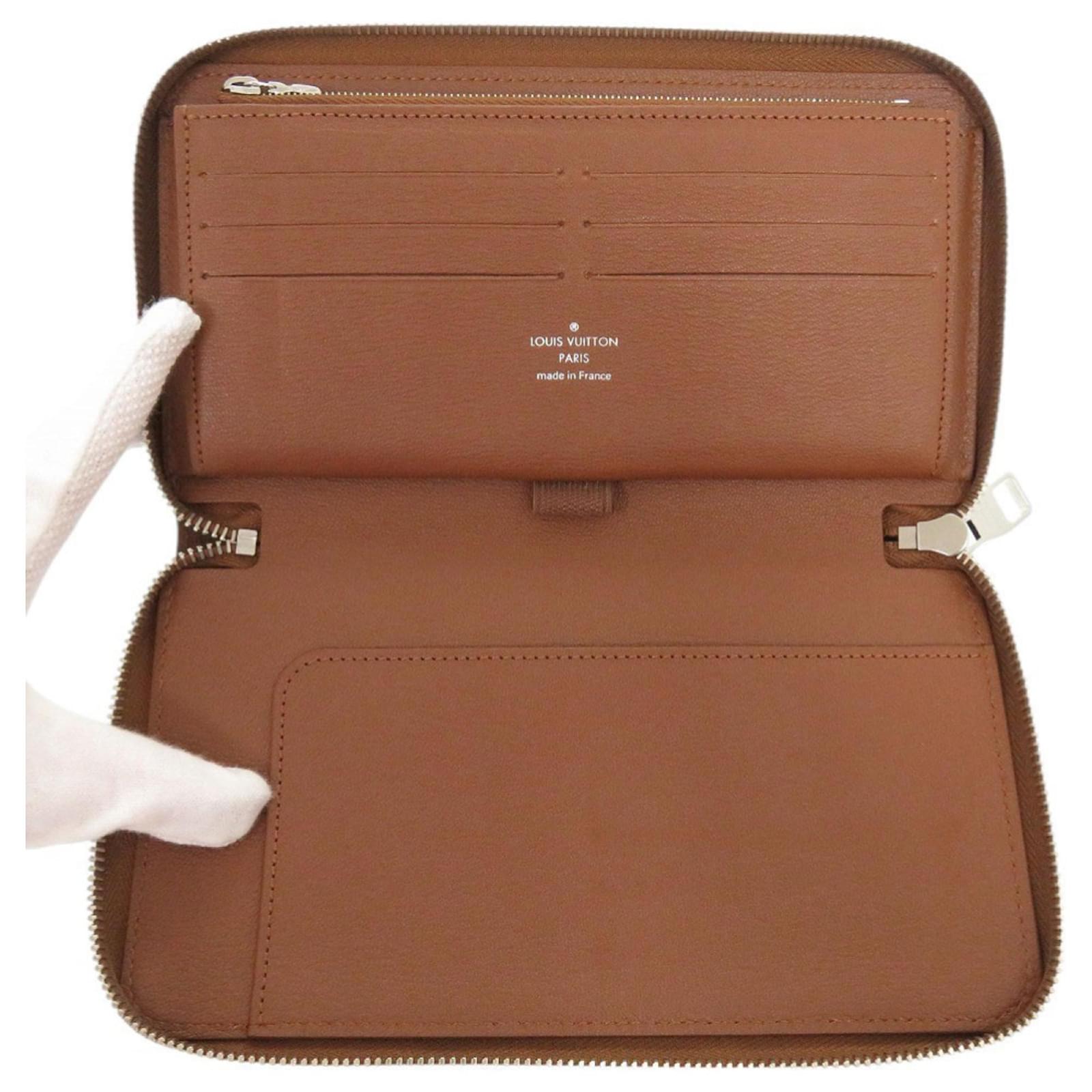 The Louis Vuitton Zippy Organizer Long Wallet is a sophisticated bi-fold design that features a secure zipper closure. Crafted from leather, this wallet comes in a blend of Silver and Tobacco colors, exemplifying the brand's elegance.