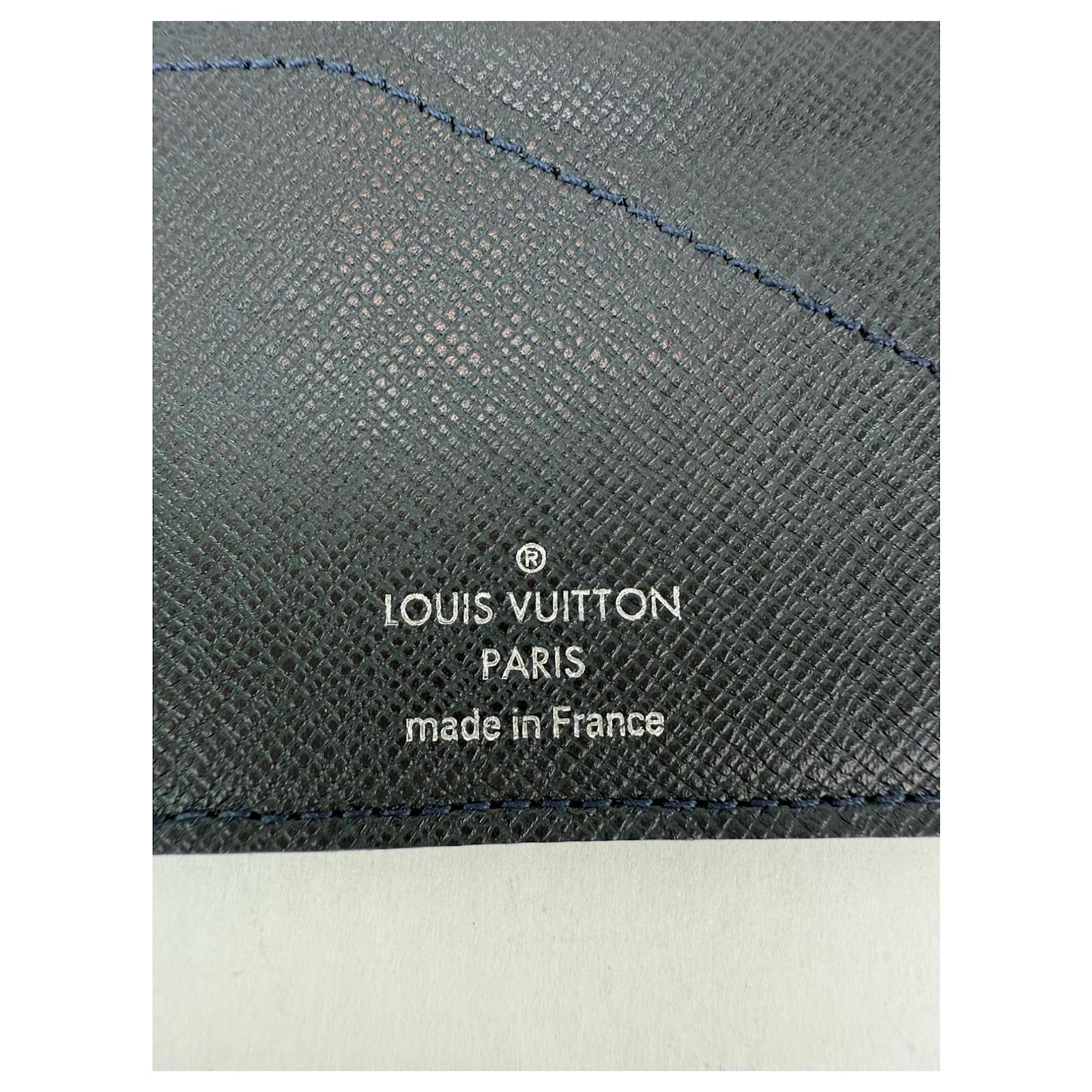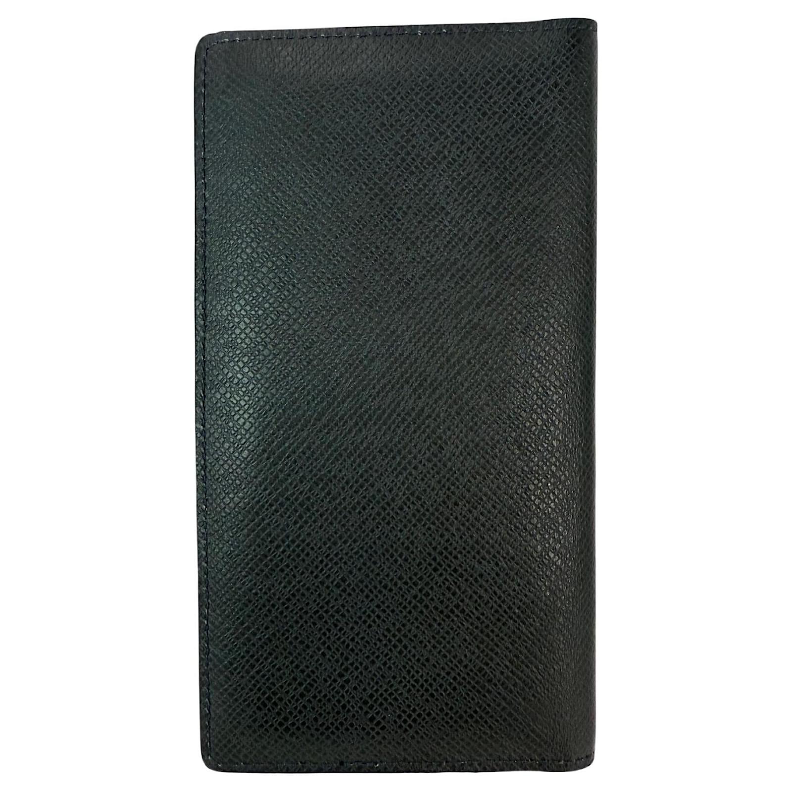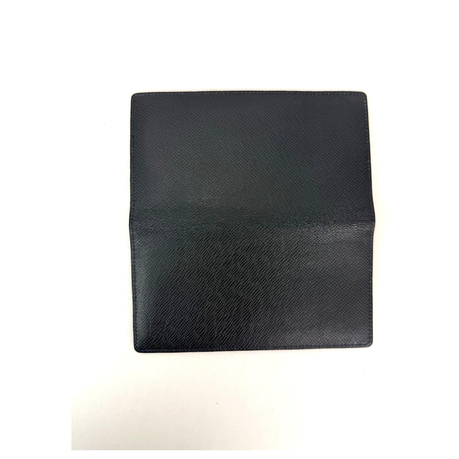 LOUIS VUITTON Taiga Brazza Long Bifold Dark Blue Leather Wallet Black