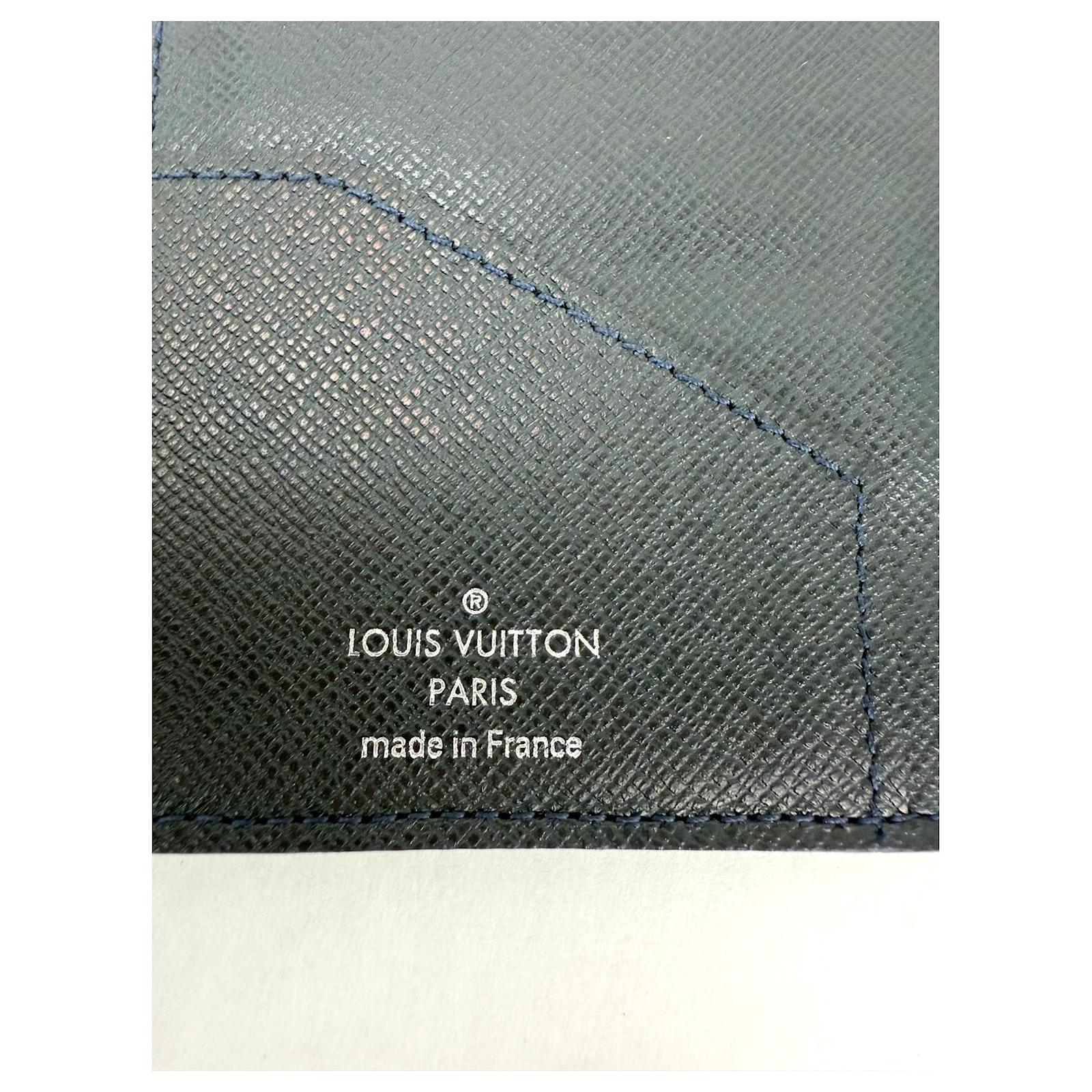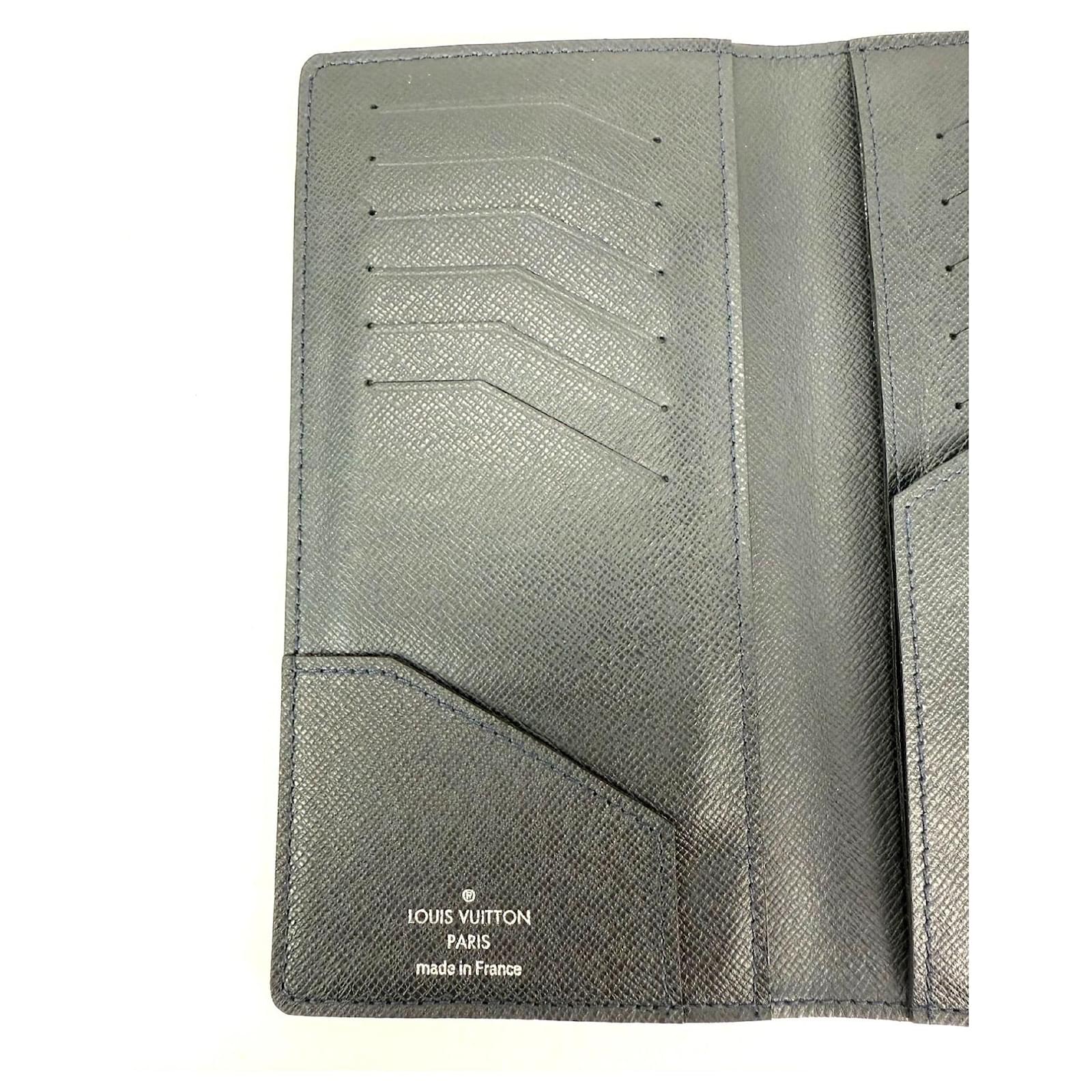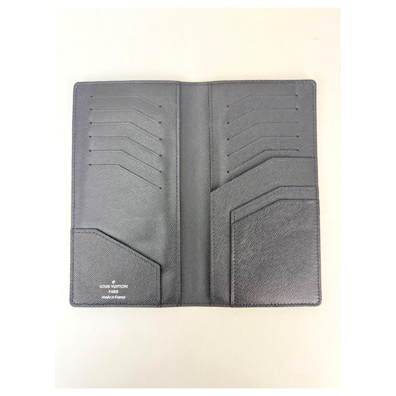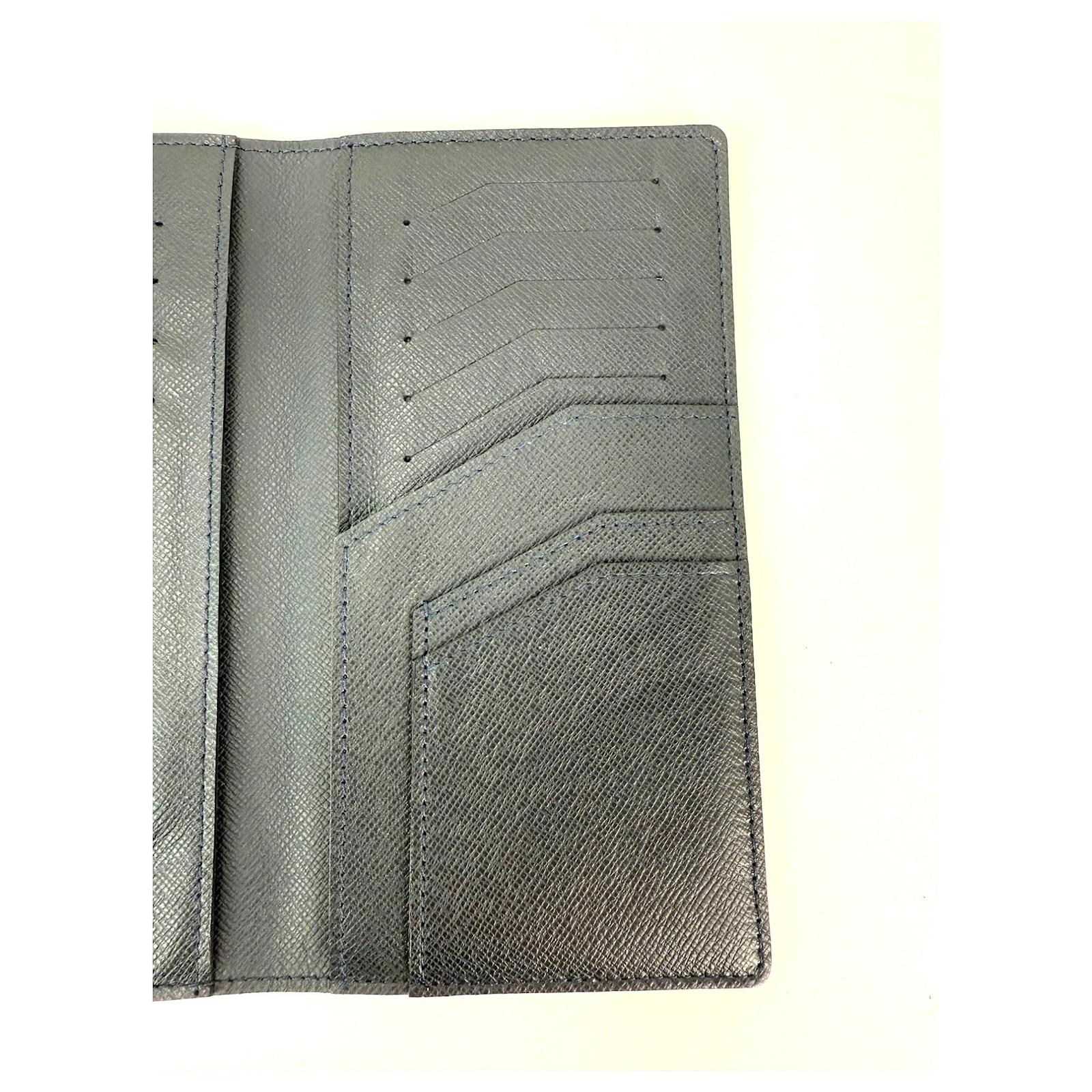Pre-Owned 100% AuthenticLOUIS VUITTON Taiga Brazza Long Bifold Dark Blue Leather Wallet RATING: B+...Very Good, well maintained, shows minor signs of wearMATERIAL: taiga leatherCOLOR: blackEXTERIOR: a few tiny scuff linesODOR: noHARDWARE: silverINTERIOR: black leather, 14 cc slots , zippered section, 2 bill fold sections,little wrinkling DATE CODE: TA1172MEASUREMENTS: H 7.1'' x L 3.7'' x W .5''Please see all pictures to determine final condition, pictures are of actual item ! SHIPPING: will ship same day or next daySKU A1371 0925 Measurments: width: 13 mm length: 94 mm height: 180 mm strap length: 0 mm handle drop: 0 mm