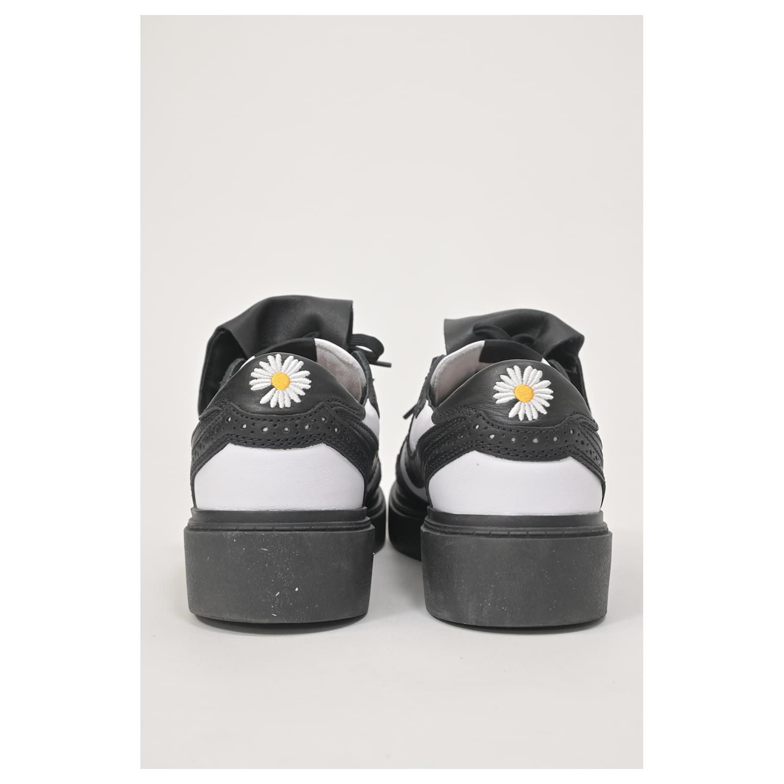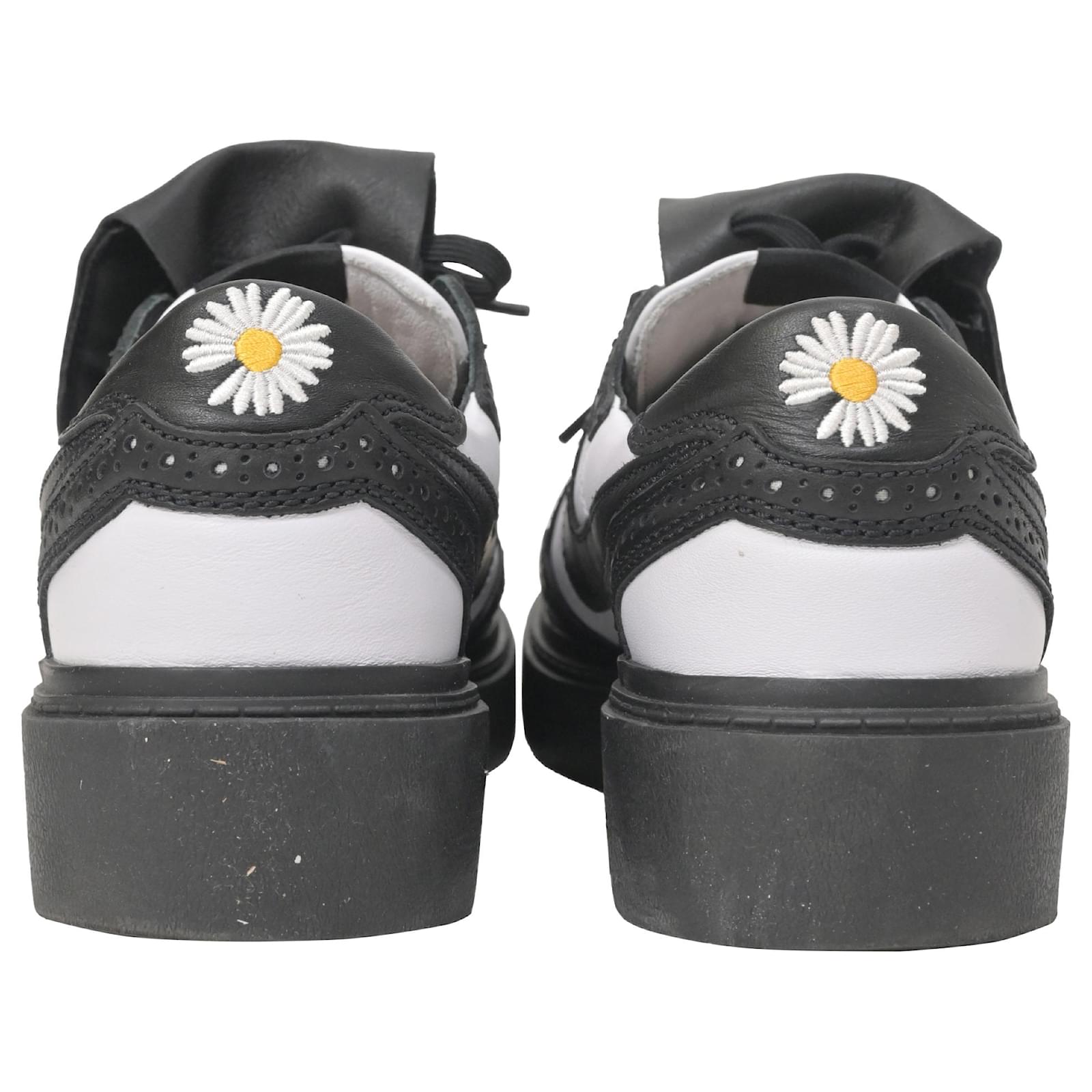 The wingtip upper of the Kwondo 1 is carefully crafted with intricate brogue detailing, exuding a sense of refinement and elegance. The removable lace shroud adds a touch of versatility to the design, allowing for customization and personal expression. The embroidered daisies decorating the heel offer a whimsical and playful element, while the signature branding adds a touch of authenticity and exclusivity.