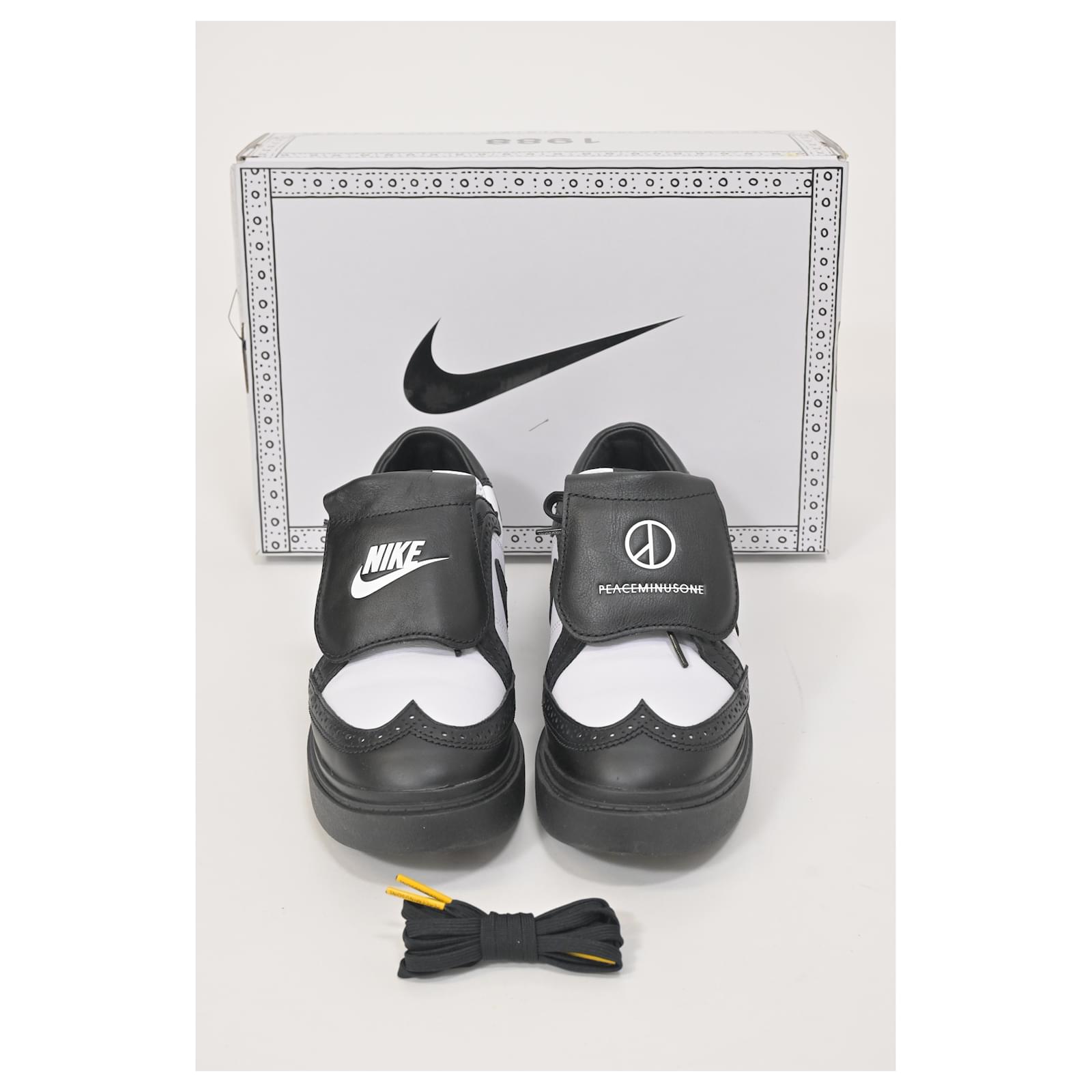 The Nike x PEACEMINUSONE G-Dragon Kwondo 1 Sneakers in Black Leather showcase the visionary style of the legendary artist G-Dragon, delivering a unique and sophisticated aesthetic for the streets. These sneakers are a true masterclass in contrast, blending elements of a classic dress shoe with contemporary streetwear style.