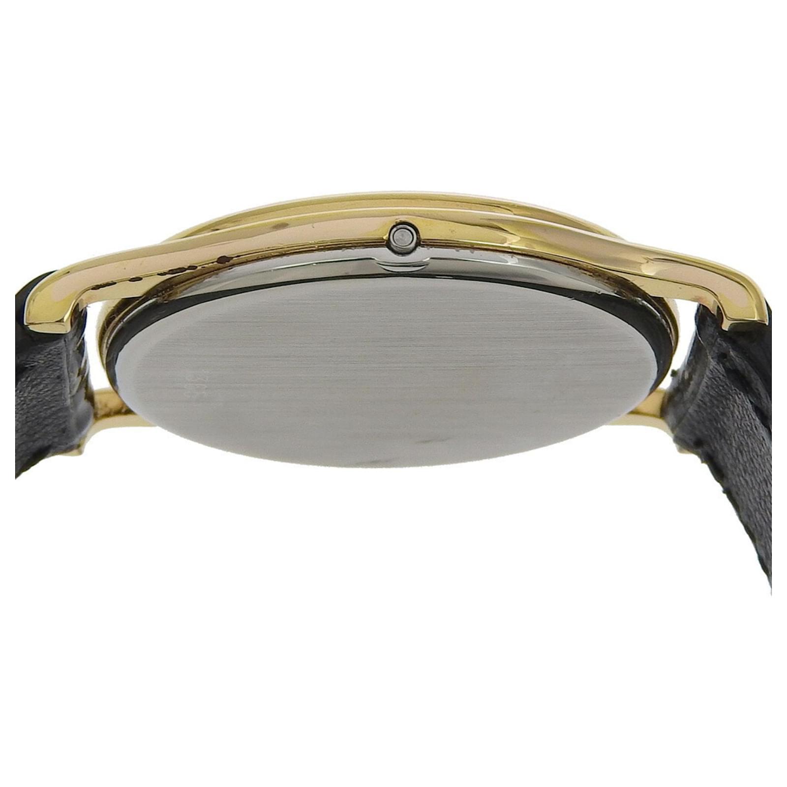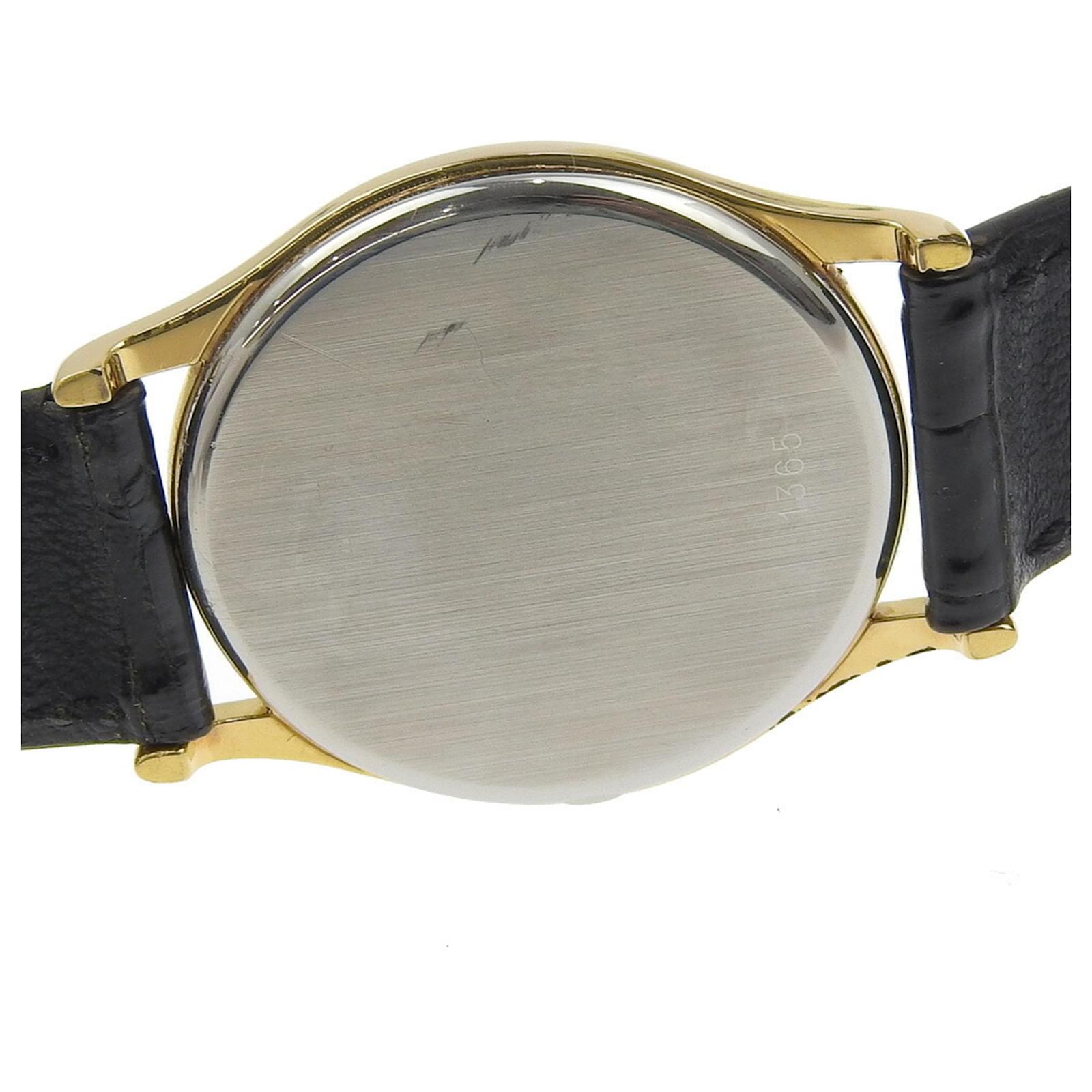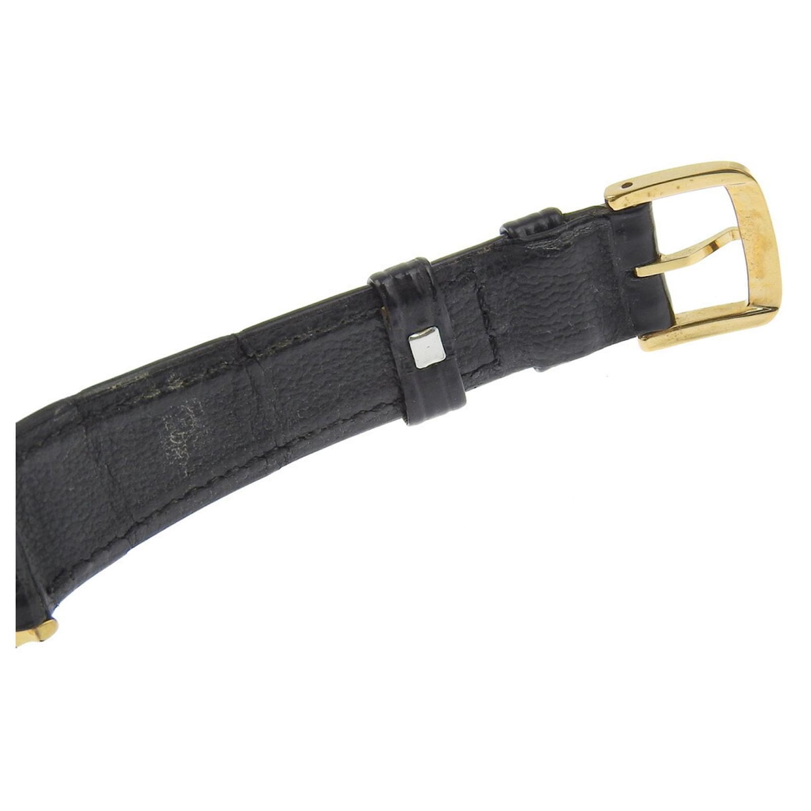 The OMEGA De Ville watch features a gold-plated case and an embossed leather band, designed for men. It is powered by a reliable quartz movement and showcases a gold dial. The watch has a case diameter of 33mm, suitable for wrist sizes ranging from 16cm to 19.5cm.