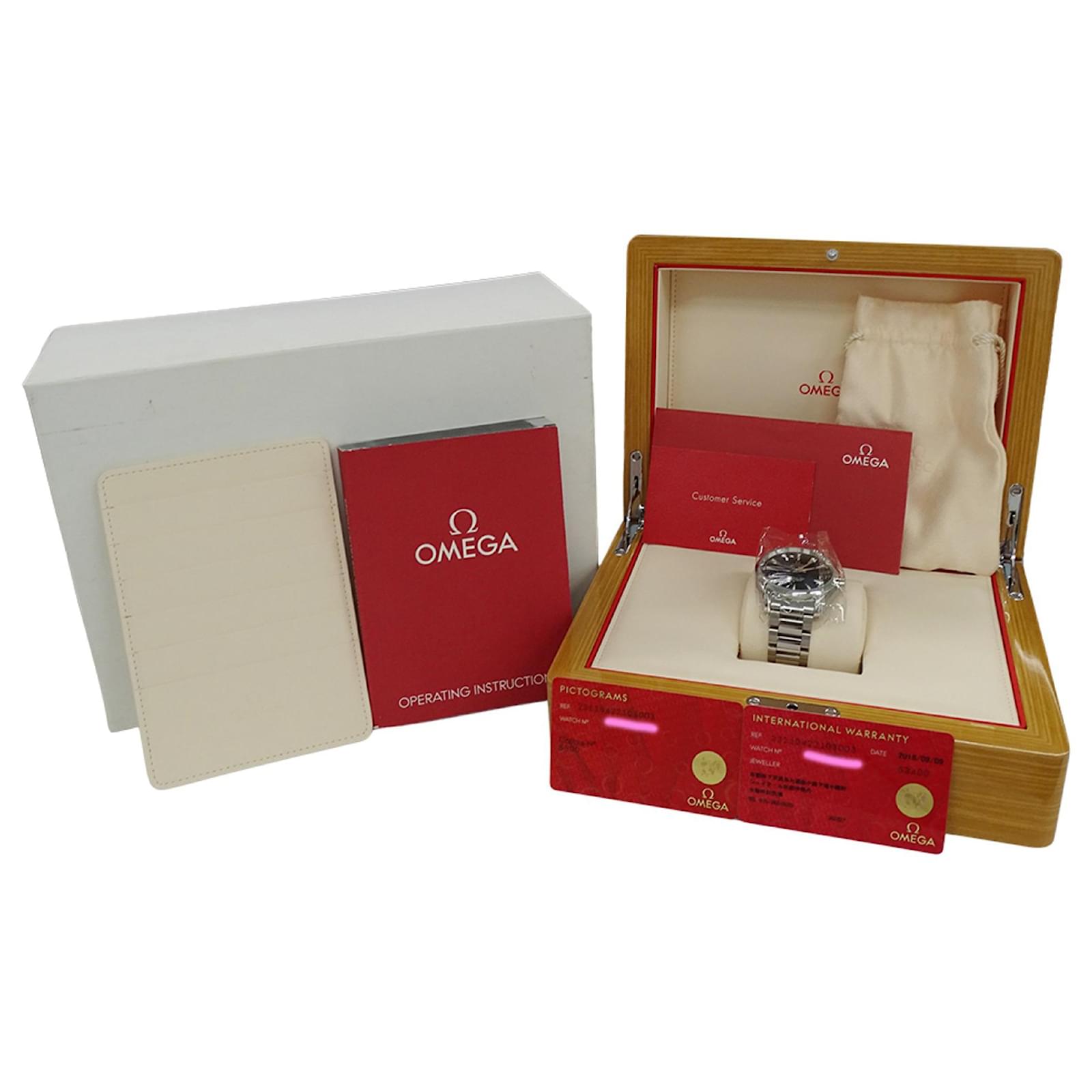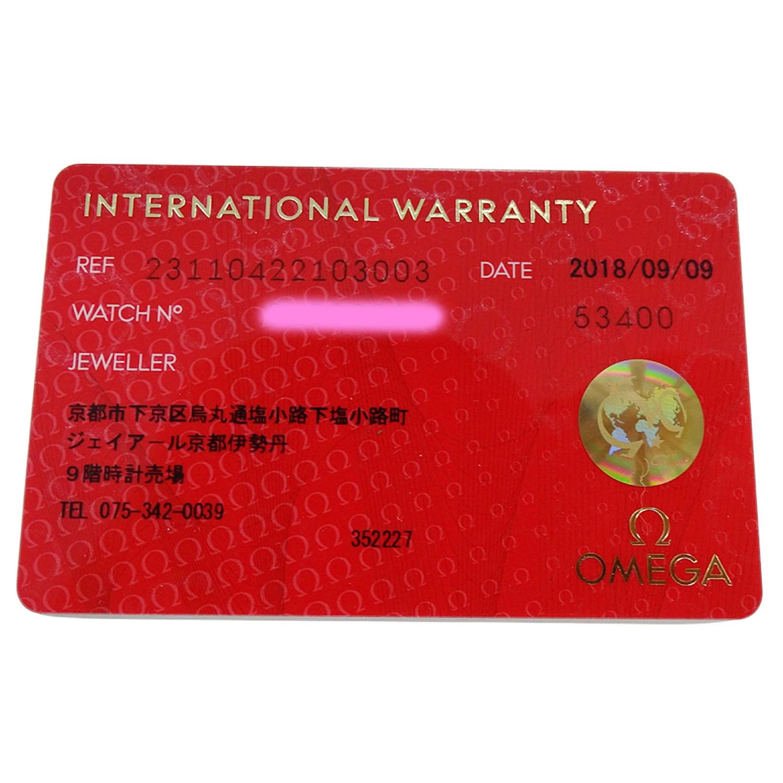 The watch is in good condition with slight scratches on the bezel, case, and crown, while the glass and dial remain mostly unmarked. It comes with a guarantee card, inner box, manual, and outer box. For potential buyers, it is advisable to examine the images for a clearer understanding of its condition.