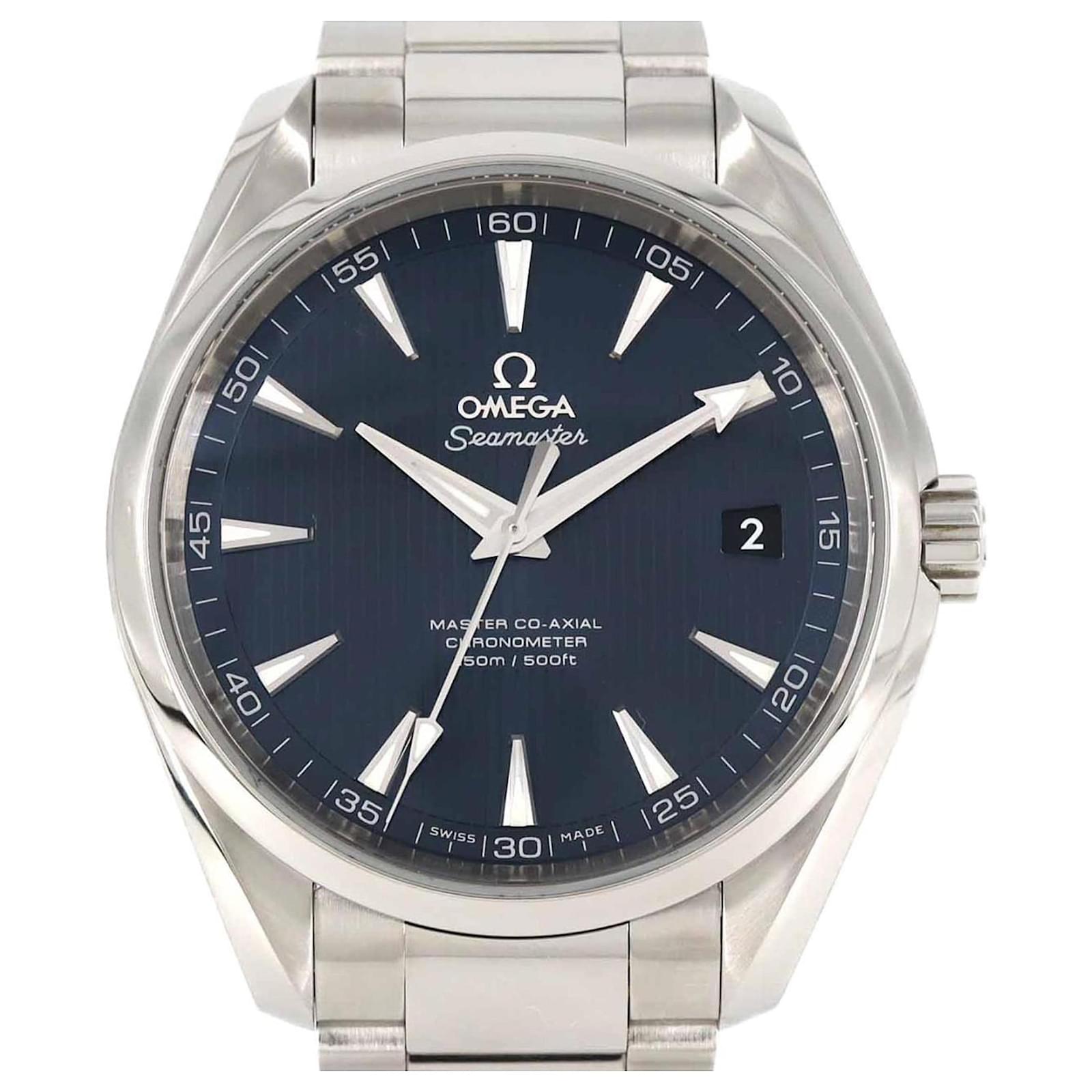 This Omega Seamaster Aqua Terra wristwatch, model number 231.10.42.21.03.003, features a striking blue dial and is crafted from durable stainless steel for both the case and band. The watch utilizes a self-winding automatic movement, ensuring precision and reliability.
