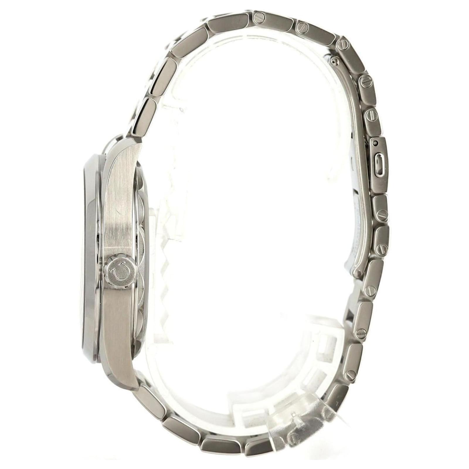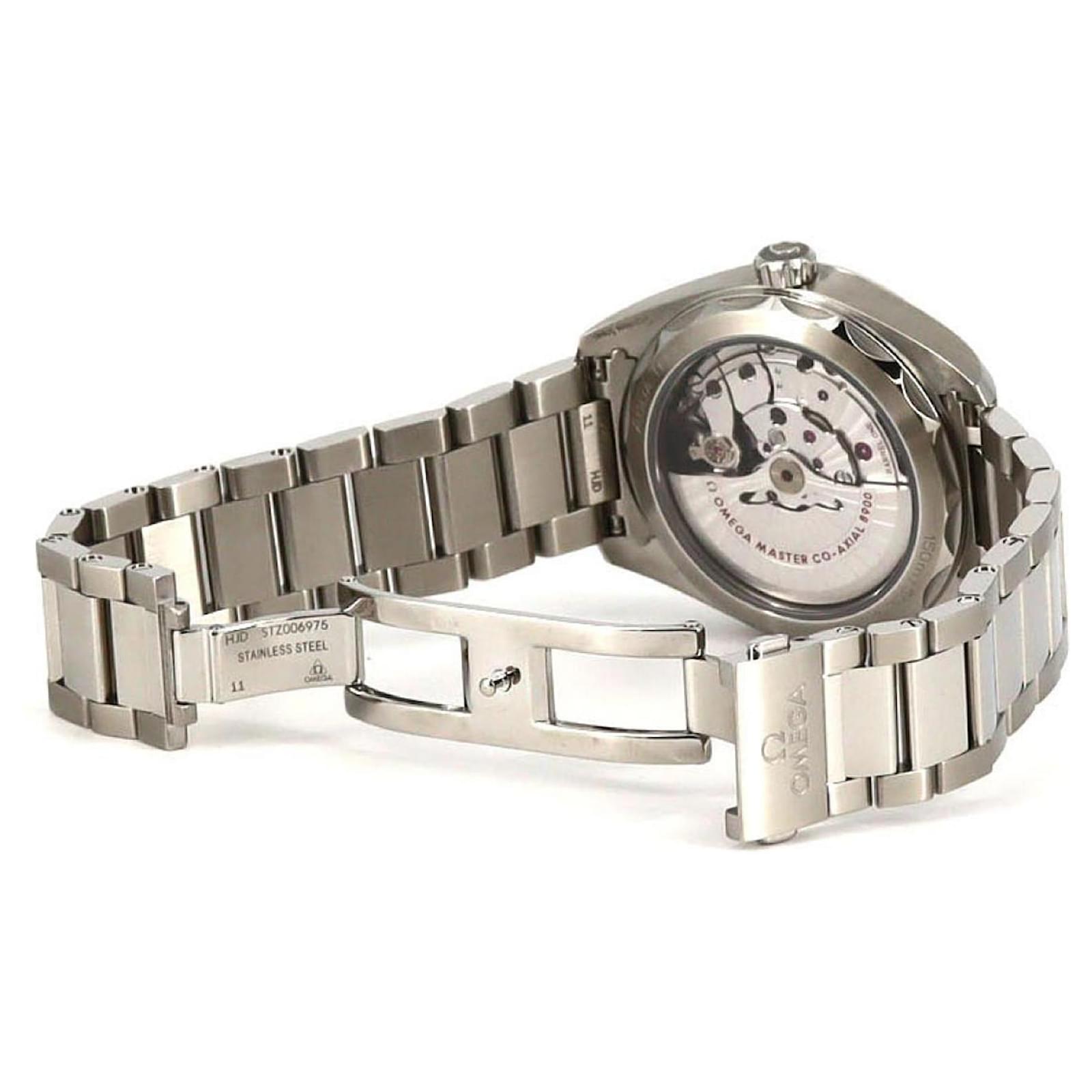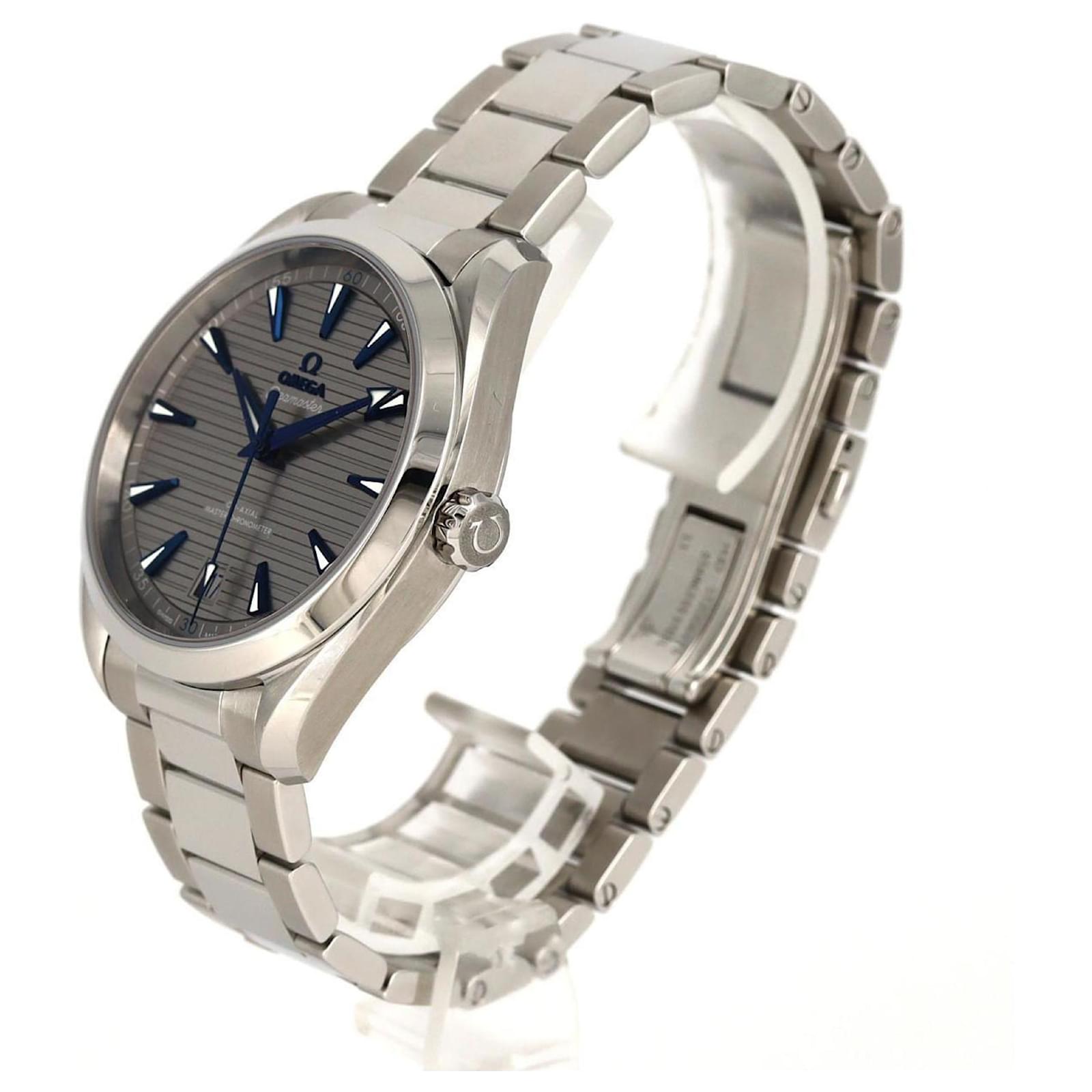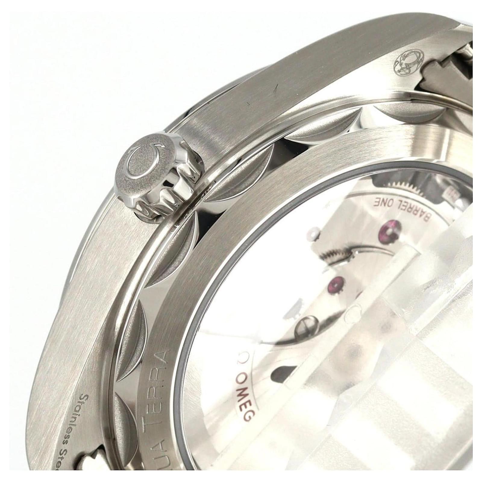 This Omega Seamaster Aqua Terra wristwatch is crafted from stainless steel and features a gray dial. It operates on a self-winding automatic movement and is designed for a wrist size of 19.5cm (7.67 inches) with a case diameter of 41mm (1.61 inches).