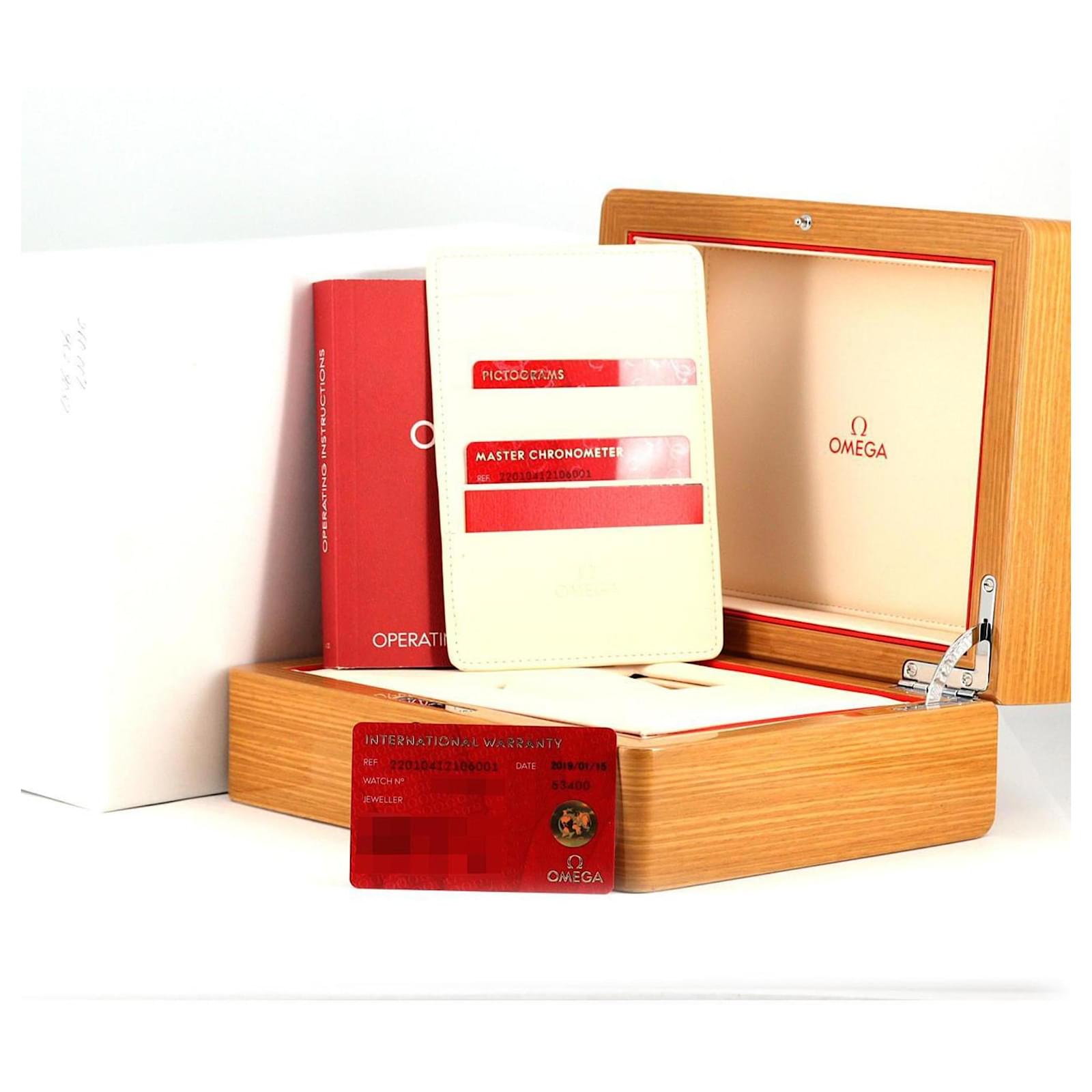 The watch is in very good used condition, exhibiting only insignificant scratches on the bezel and case, while the glass and dial are free from any imperfections. The timepiece has been overhauled and polished. Included with the watch are its inner and outer boxes, as well as warranty documentation. Please refer to the accompanying images for a clear view of its current condition.
