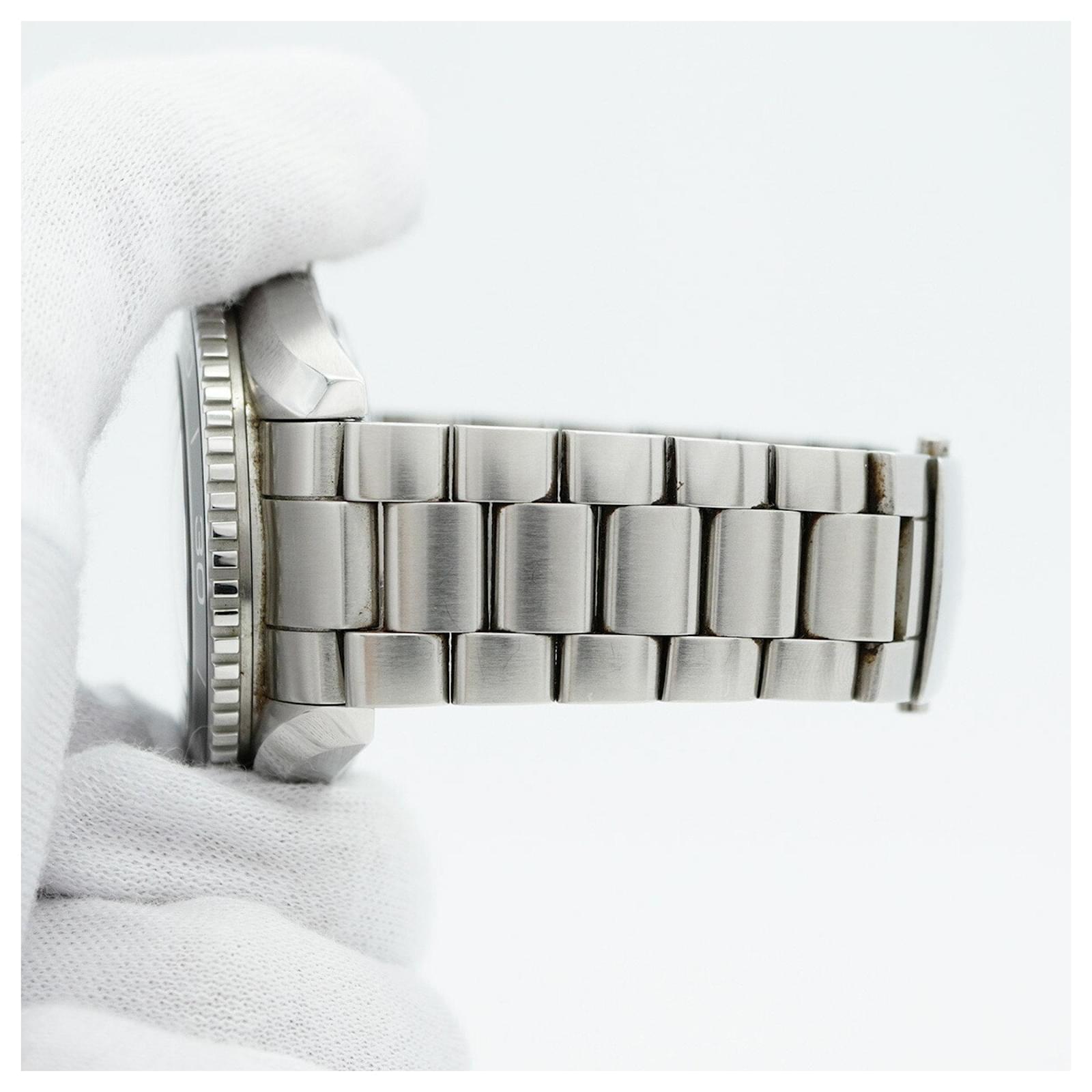 The watch is described as being in good, used condition, with slight scratches noted on the bezel, case back, dial, and glass. The crown and bracelet also show minor signs of wear. Buyers are encouraged to review images for the exact condition of the item. No accessories are included with this watch.