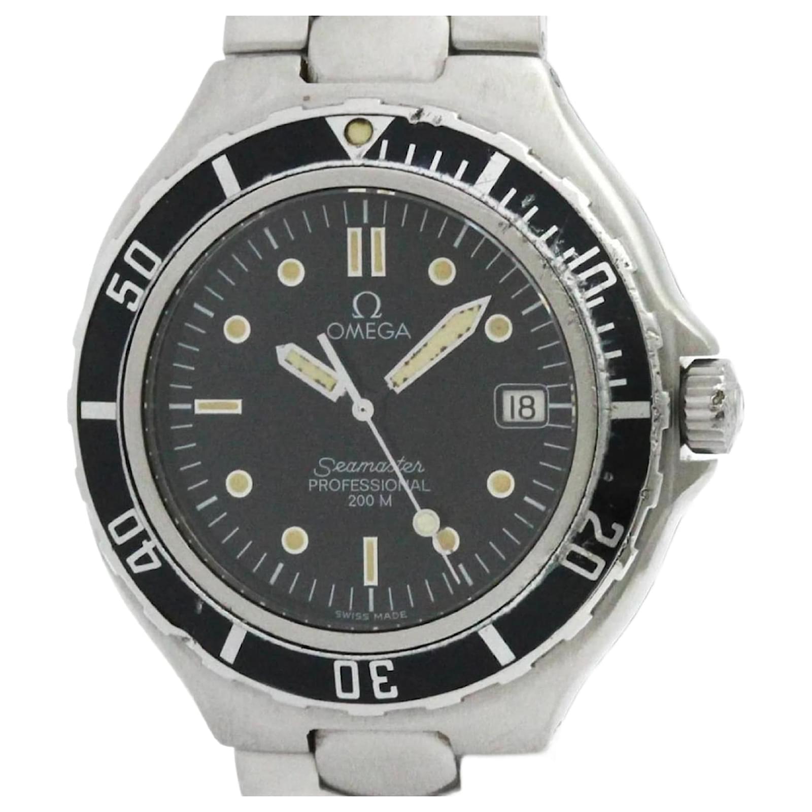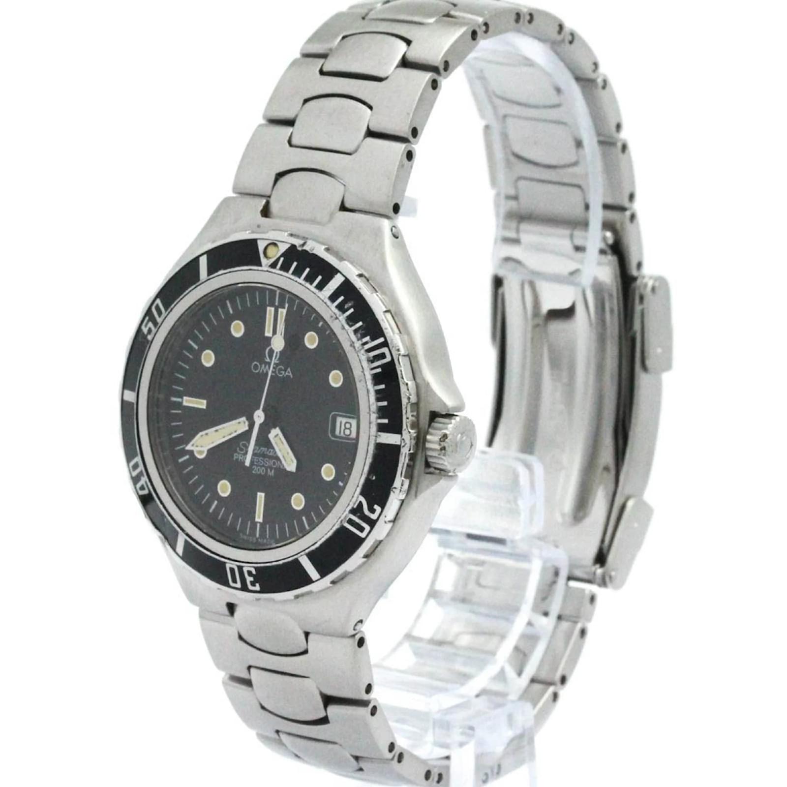 The Omega Seamaster Professional 200M is a sport wristwatch designed for men, featuring a sleek black dial and a durable stainless steel case. With a case diameter of 36mm, this watch is both stylish and functional, equipped with a quartz movement and a date function. The stainless steel band complements the overall design, making it suitable for various occasions.