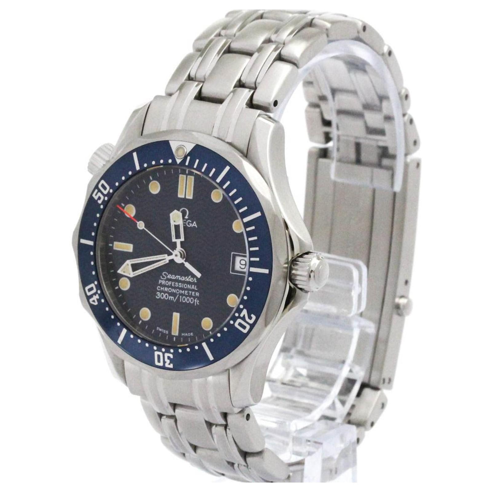 The Omega Seamaster Professional 300M is a sport wristwatch designed with a blue dial and a polished stainless steel case. It features a self-winding automatic movement and a case diameter of 36mm. The model code for this timepiece is 2551.80, and it includes a date function.