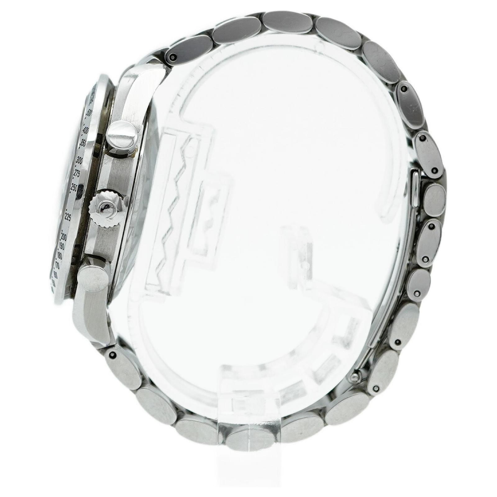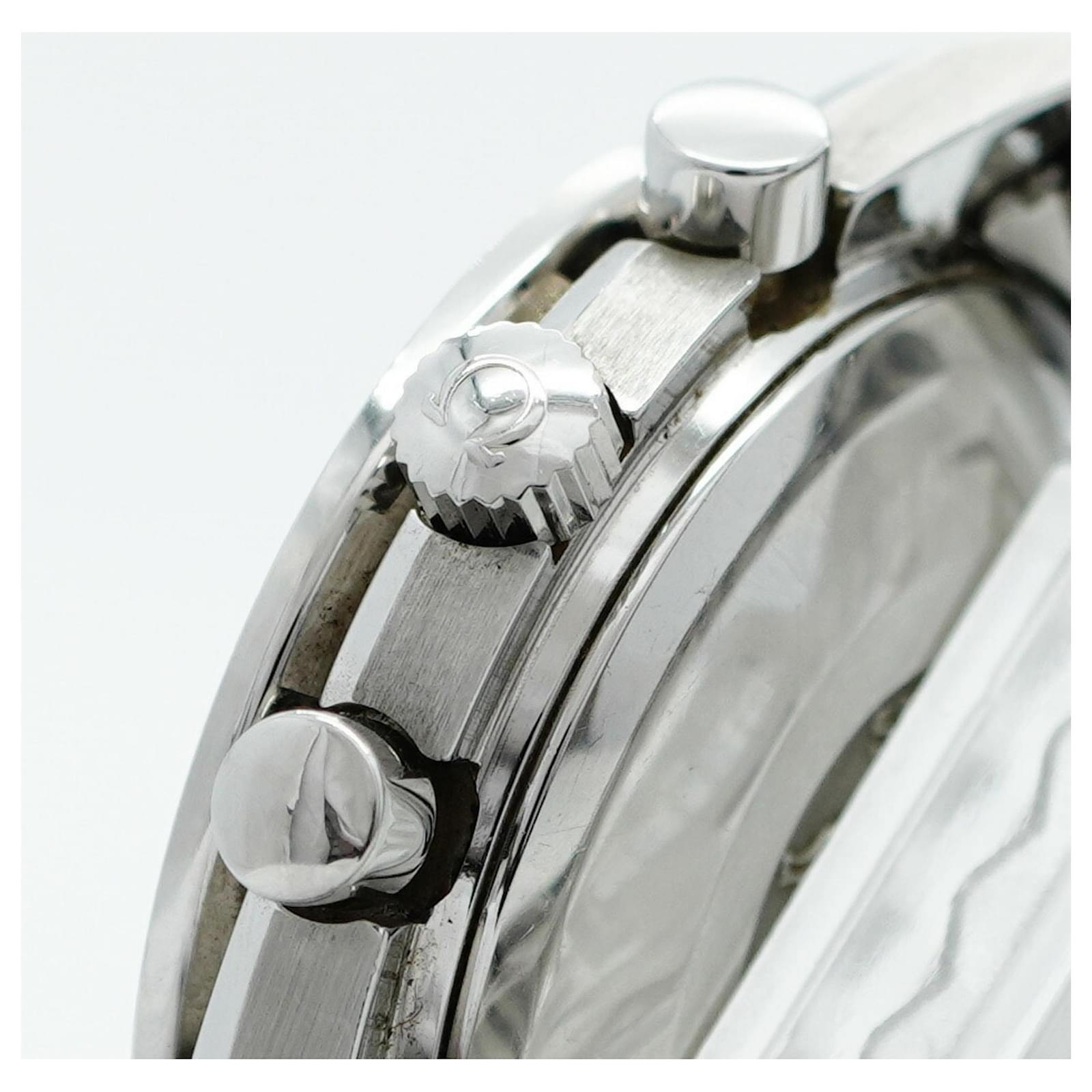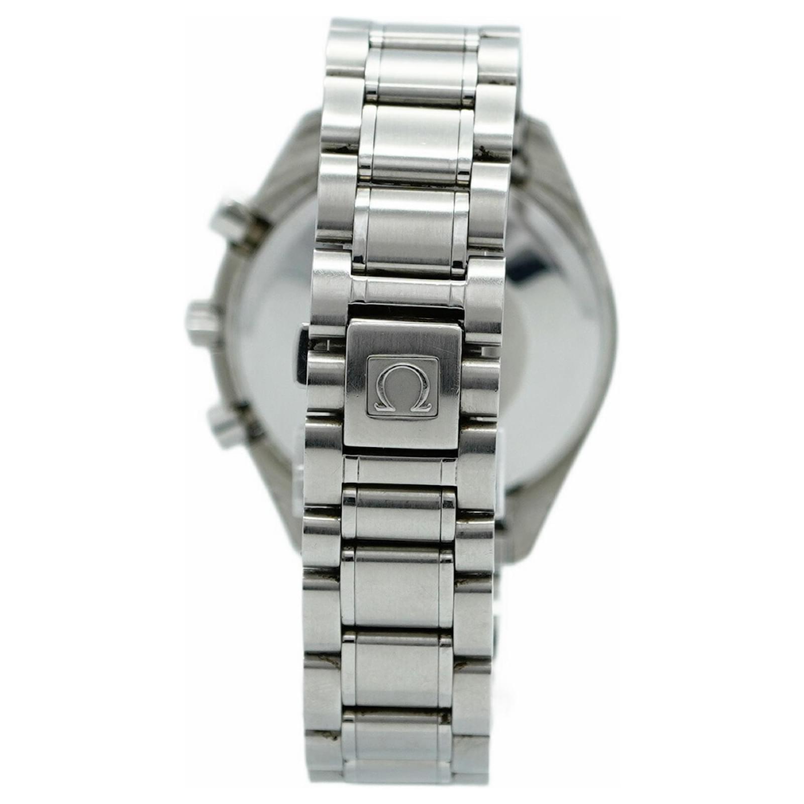 The Omega Speedmaster 3513.50 is a stylish wristwatch featuring a black dial and a stainless steel band, designed for men. This self-winding automatic timepiece has a 39mm case diameter and fits a wrist size of 15.5cm (6.1 inches). The watch is classified as used but is in good condition, with slight traces of wear, including minor scratches on the bezel, case back, dial, glass, crown, and bracelet. While no accessories are included, the watch maintains a ranking of AB, indicating it has visible signs of usage but overall presents well. Buyers are encouraged to review the images for a detailed view of the item's exact condition.