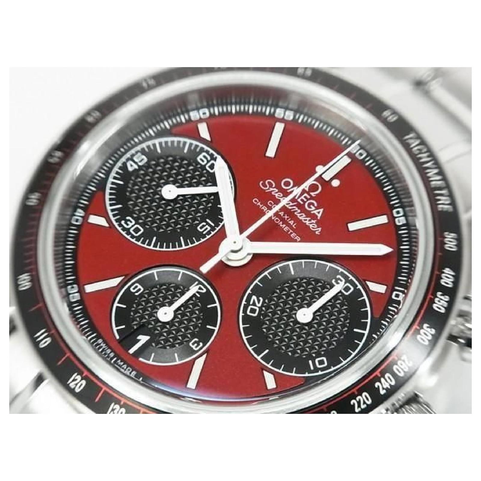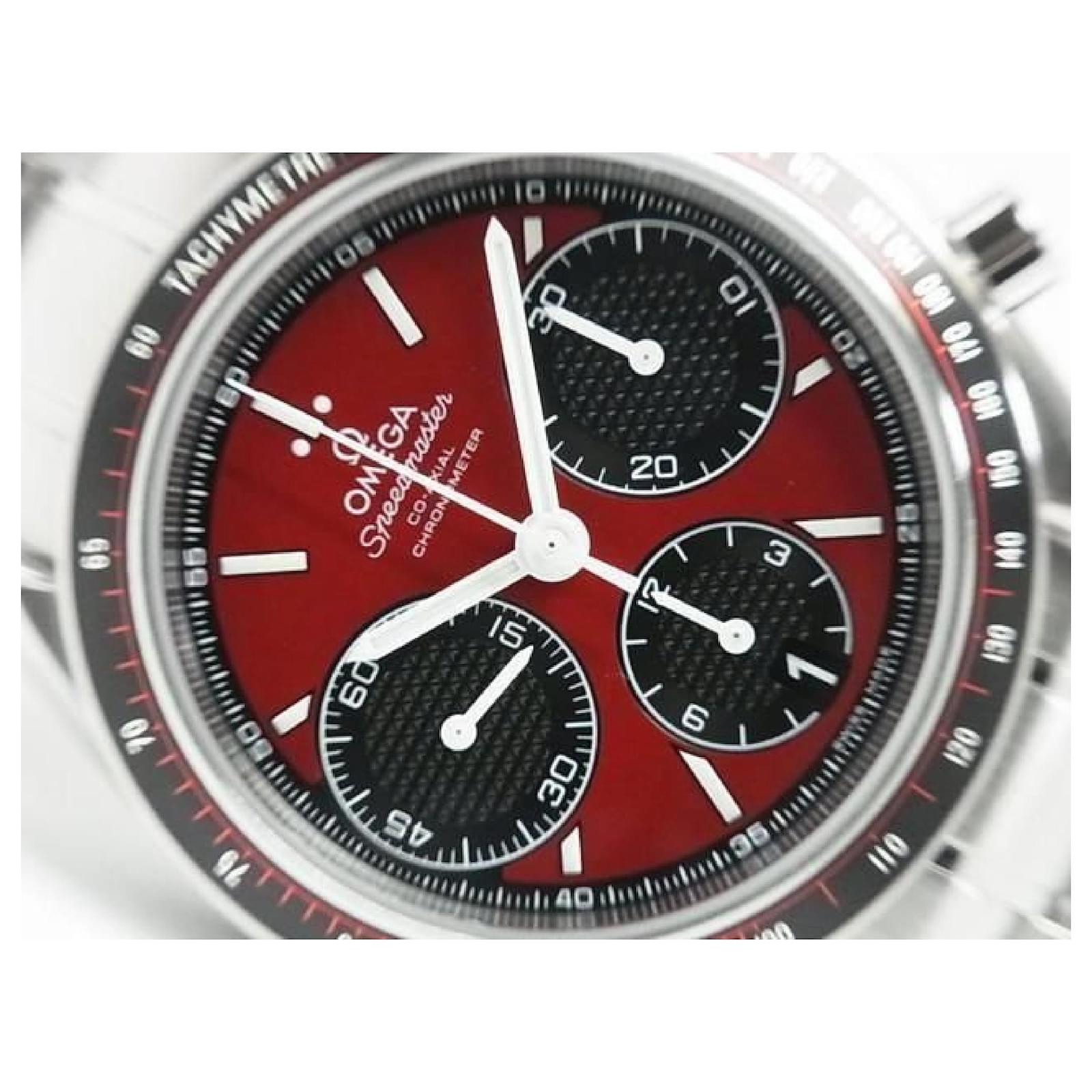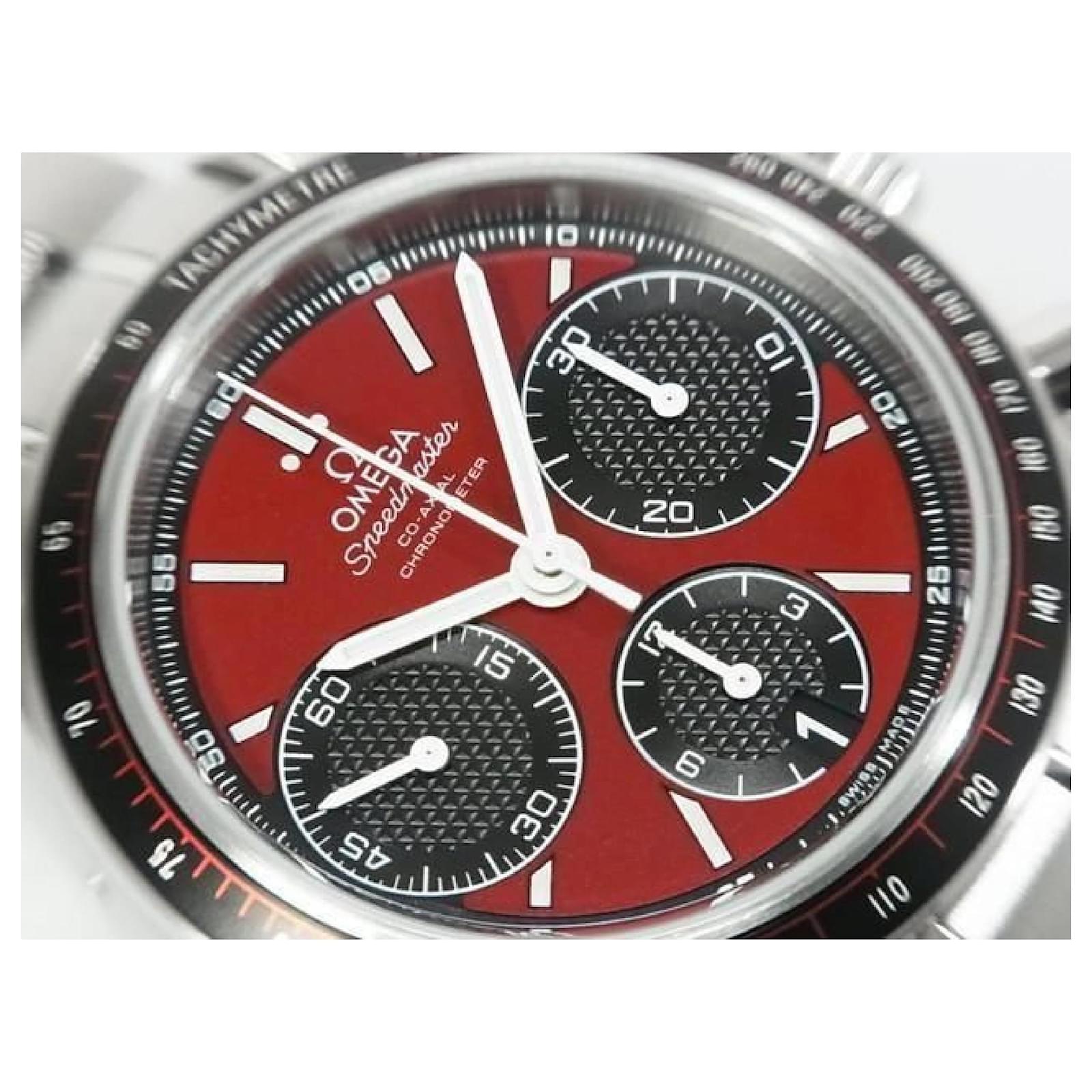 An authentic OMEGA Speedmaster Racing 40 MM red x black 326.30.40.50.11.001 Mens. The color is Silver. The outside material is Stainless steel. The pattern is Speedmaster Racing.