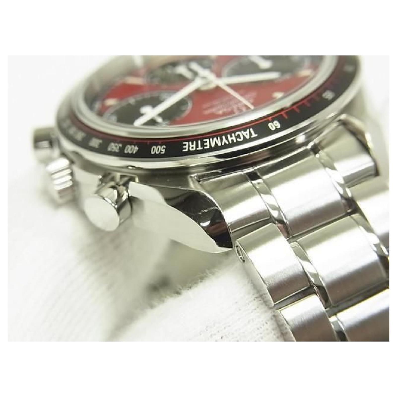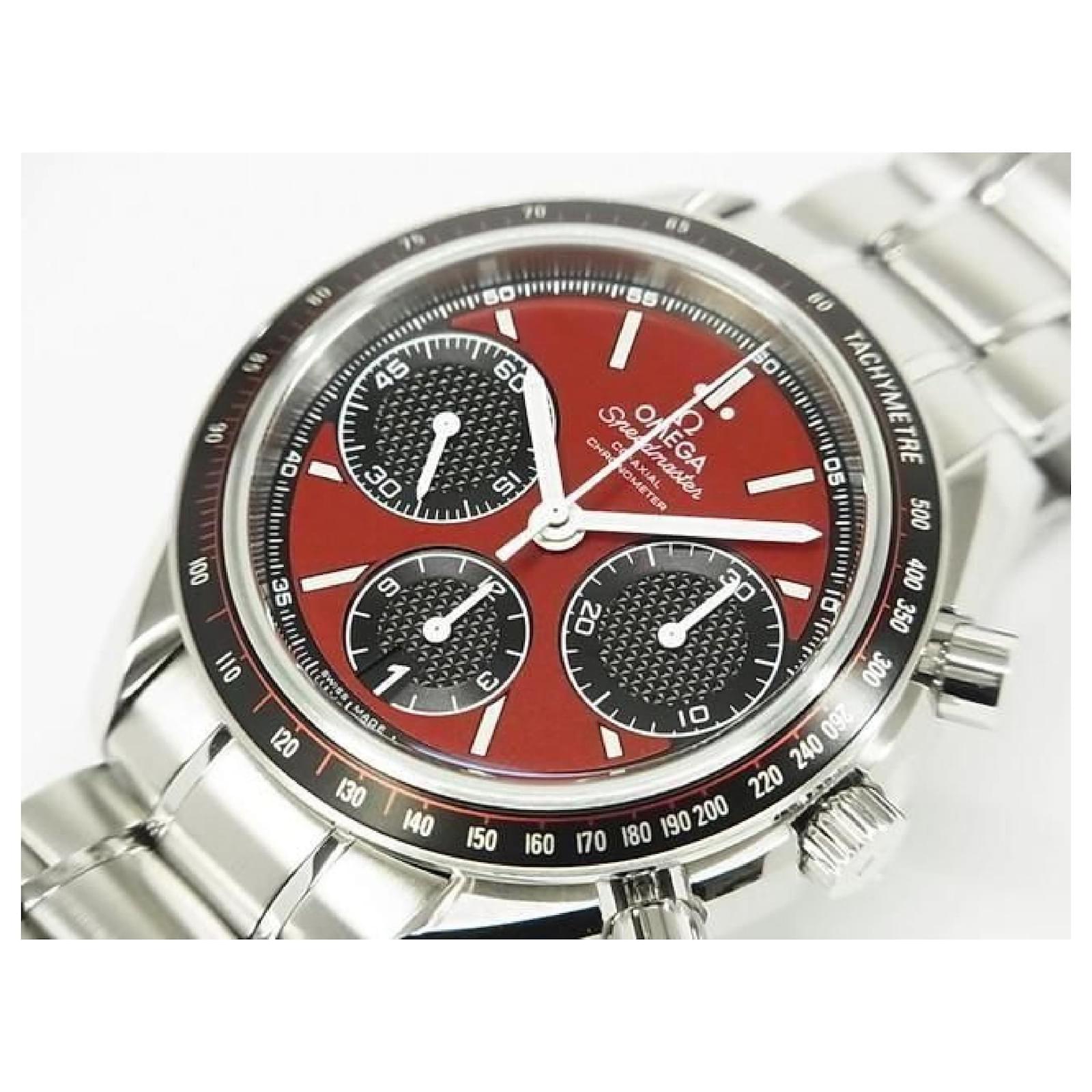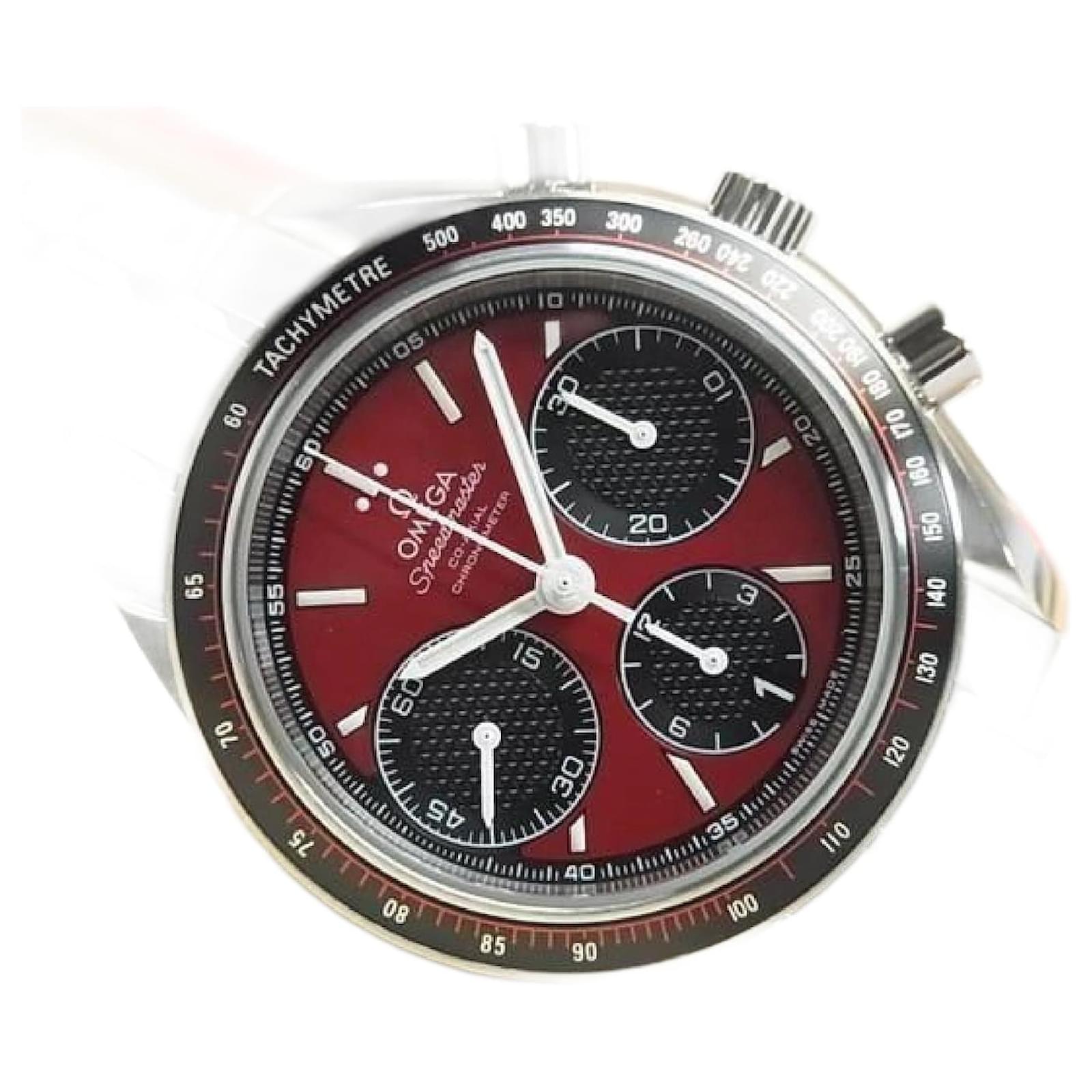 An authentic OMEGA Speedmaster Racing 40 MM red x black 326.30.40.50.11.001 Mens. The color is Silver. The outside material is Stainless steel. The pattern is Speedmaster Racing.
