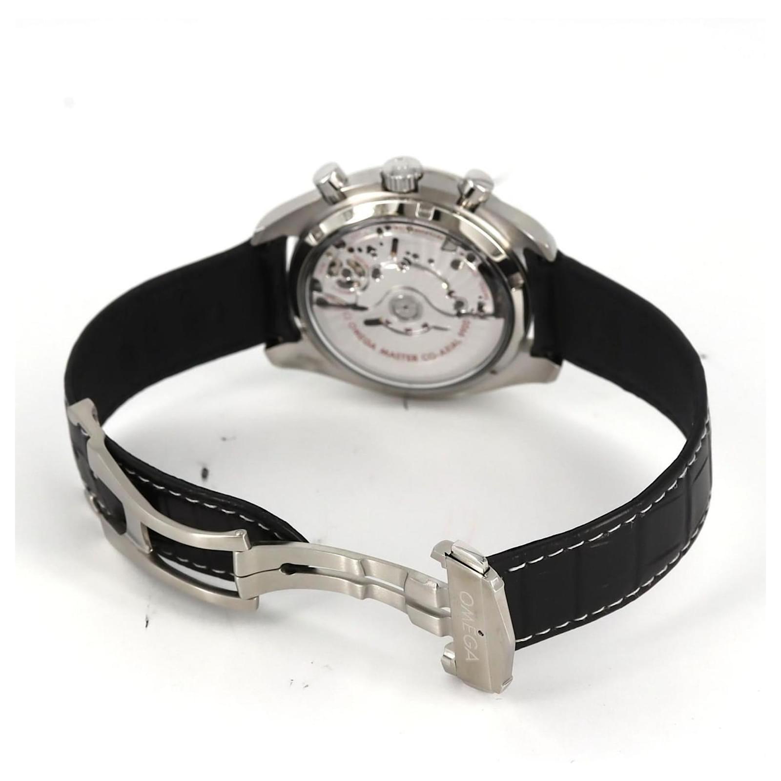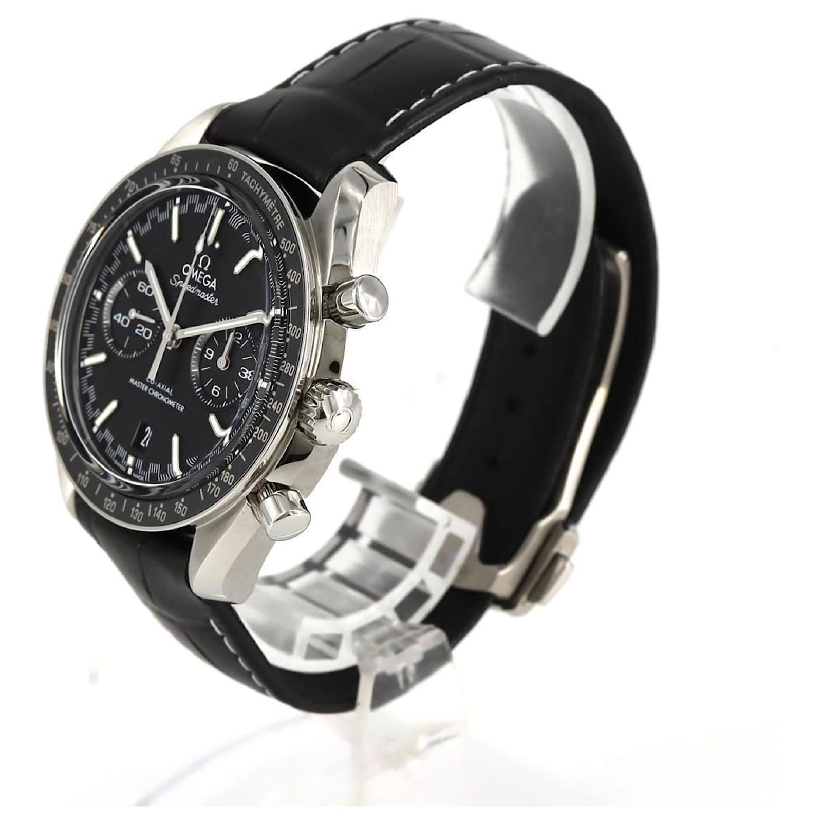 The Omega Speedmaster Racing 329.33.44.51.01.001 is a distinct wristwatch crafted from stainless steel. It features a sleek black dial and a matching black band, making it a stylish addition to any wardrobe. This self-winding automatic watch has a case diameter of 44mm, ensuring a prominent presence on the wrist. It is also water-resistant, adding to its practicality for daily wear.