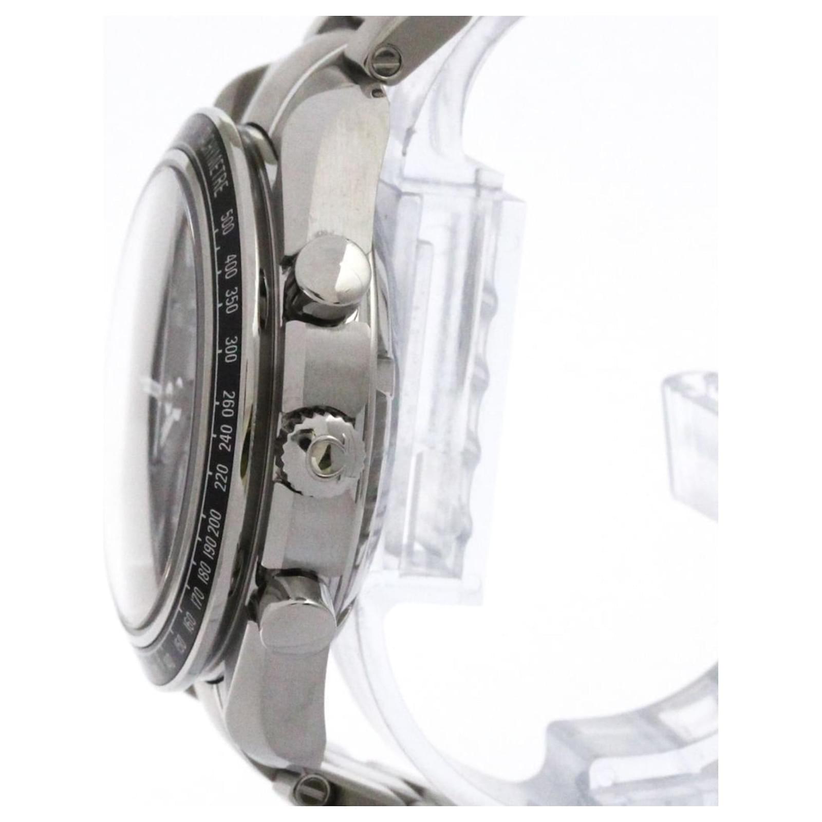 The Omega Speedmaster Racing Co-Axial Watch, model code 326.30.40.50.01.001, features a classic black dial and is housed in a 40mm stainless steel case with a polished finish. This wristwatch is categorized under sport style and is equipped with a self-winding automatic movement, incorporating functions of both chronograph and date.