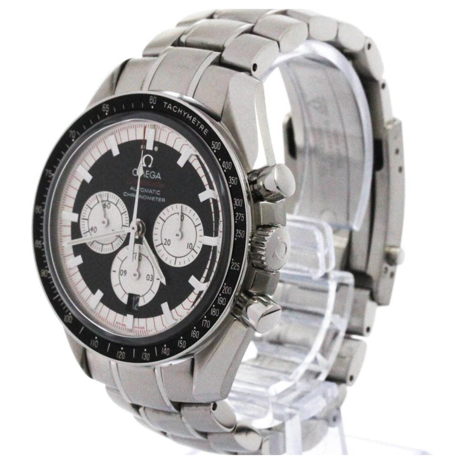 The OMEGA Speedmaster Schumacher Legend Collection Watch 3507.51 features a durable black dial housed in a stainless steel case with a 42mm diameter. This self-winding automatic wristwatch embodies a sporty style complemented by a stainless steel band. It includes useful functions such as a chronograph and date display.