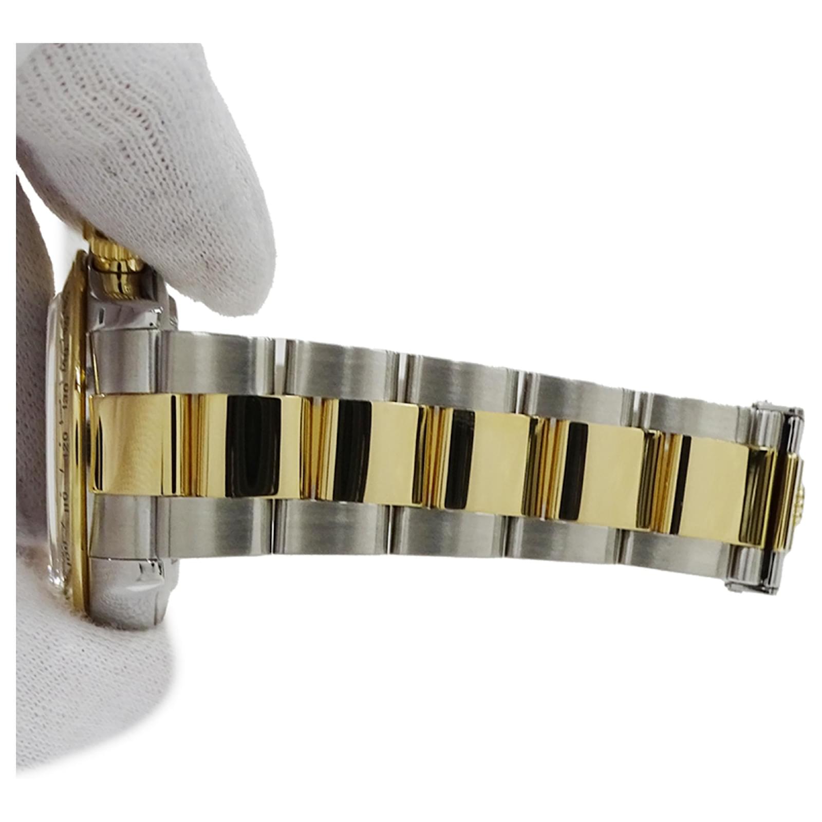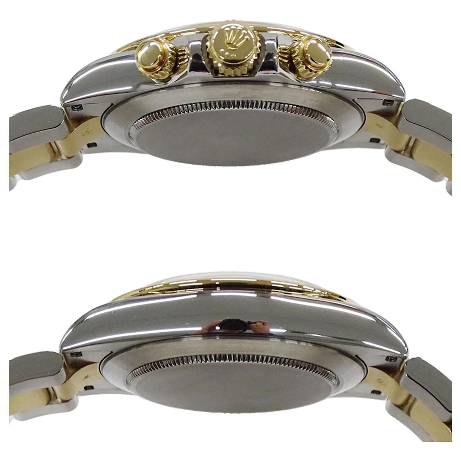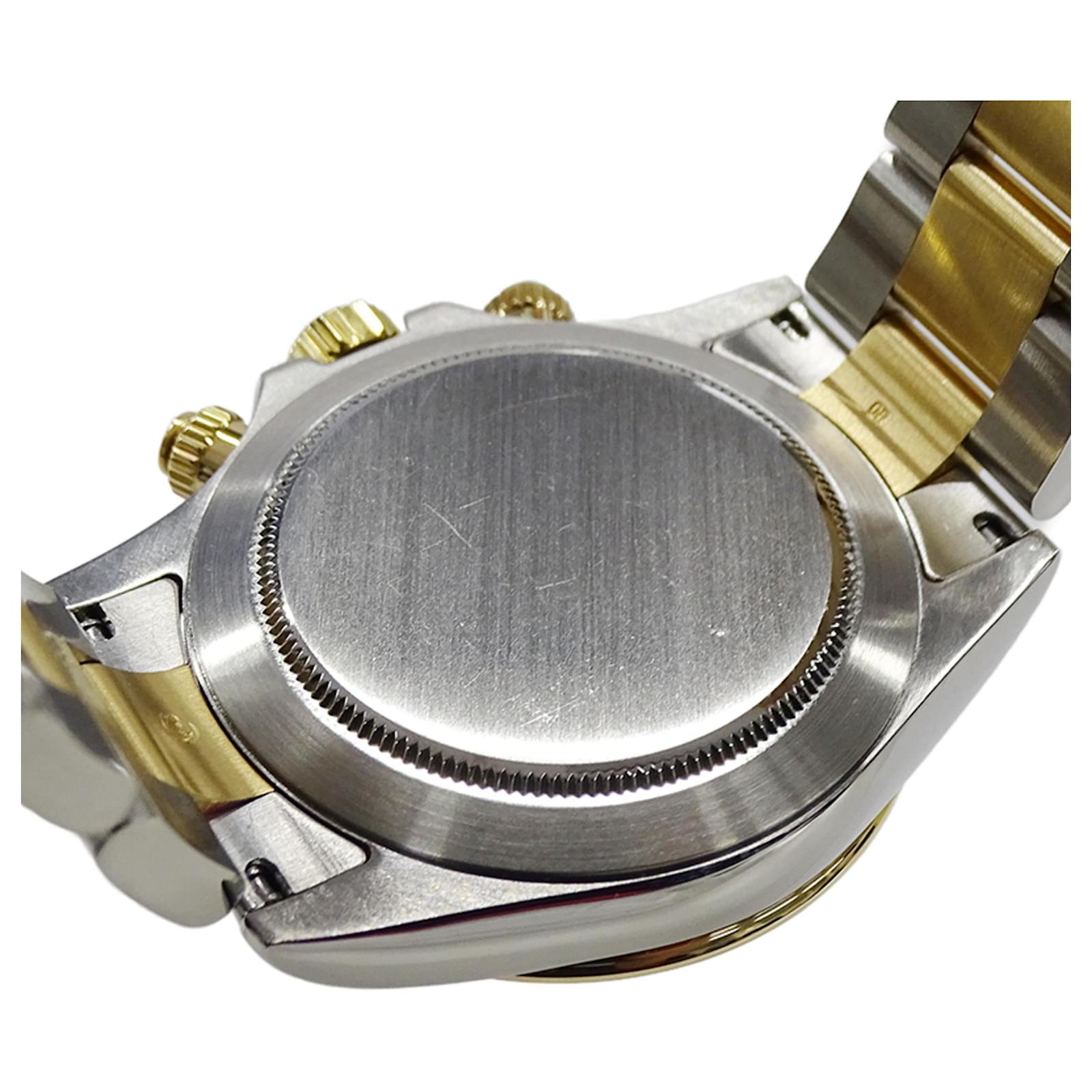 The Rolex Cosmograph Daytona 116523 is a men's automatic wristwatch featuring a gray dial and a case made of stainless steel and yellow gold. With a case diameter of 40mm and a wrist size accommodating up to 19cm (7.48 inches), this timepiece combines elegance with functionality. The watch has been overhauled and polished, ensuring it remains in acceptable condition despite some moderate scratches on the bezel and bracelet. The case back and crown show insignificant wear, while the glass is free from scratches. Included with the watch are a booklet, guarantee card, and both inner and outer boxes. This item originates from Switzerland and is classified as used, with visible traces of usage but still suitable for continued wear. Potential buyers are encouraged to review the provided images for a detailed view of the watch's condition and included accessories.
