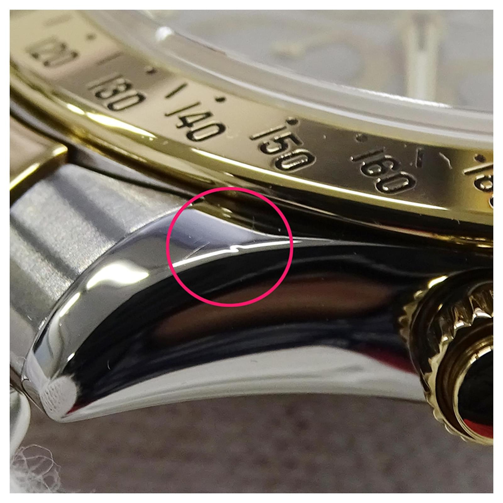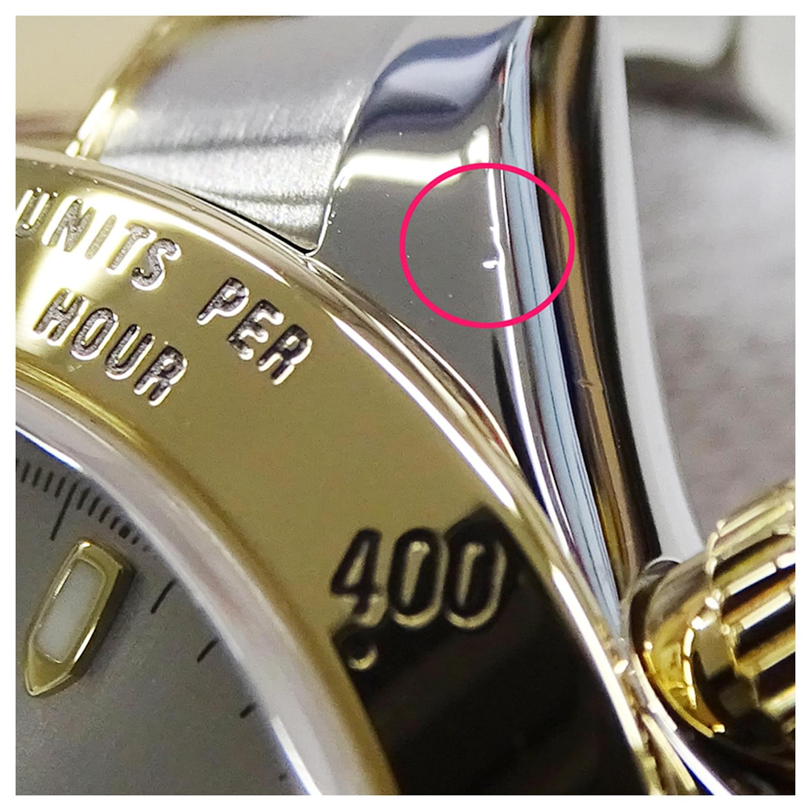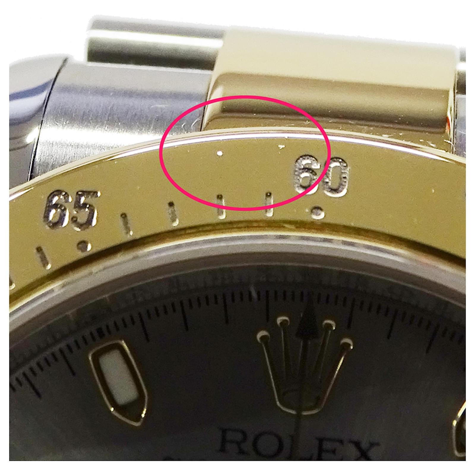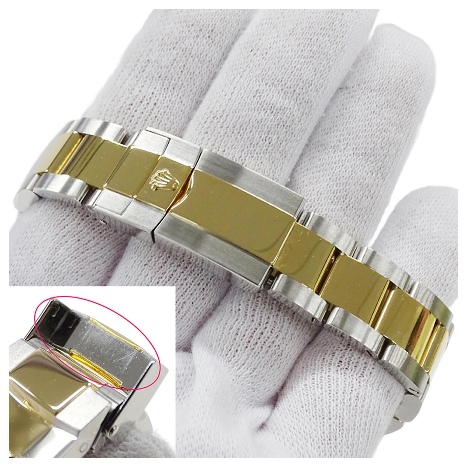 The Rolex Cosmograph Daytona 116523 is a men's automatic wristwatch featuring a gray dial and a case made of stainless steel and yellow gold. With a case diameter of 40mm and a wrist size accommodating up to 19cm (7.48 inches), this timepiece combines elegance with functionality. The watch has been overhauled and polished, ensuring it remains in acceptable condition despite some moderate scratches on the bezel and bracelet. The case back and crown show insignificant wear, while the glass is free from scratches. Included with the watch are a booklet, guarantee card, and both inner and outer boxes. This item originates from Switzerland and is classified as used, with visible traces of usage but still suitable for continued wear. Potential buyers are encouraged to review the provided images for a detailed view of the watch's condition and included accessories.