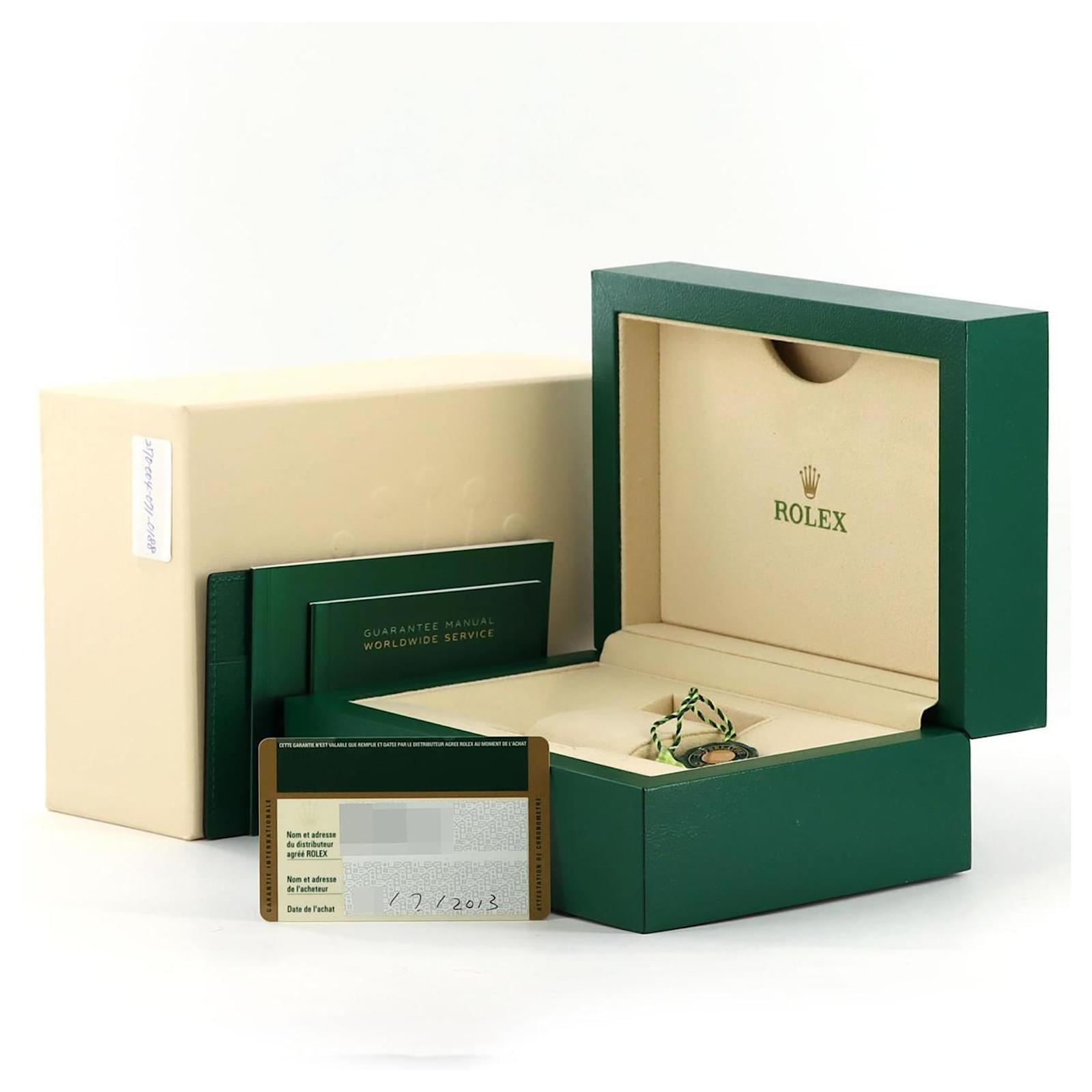 This pre-owned timepiece is in very good condition, with insignificant scratches on the bezel, case, and bracelet, while the glass shows moderate scratches. The watch has been polished and maintained, ensuring its functionality and aesthetic appeal. It comes with its inner and outer boxes, along with a warranty.