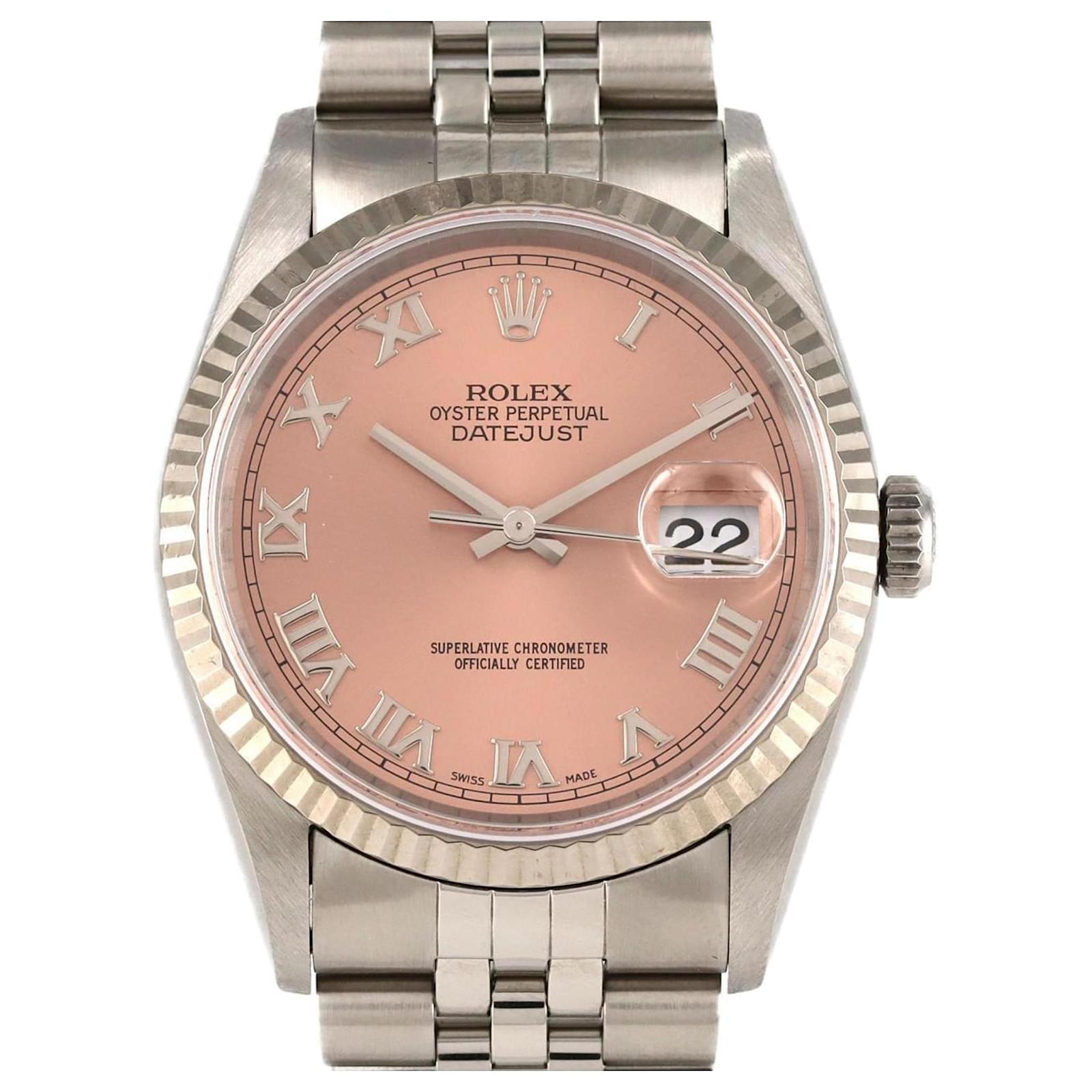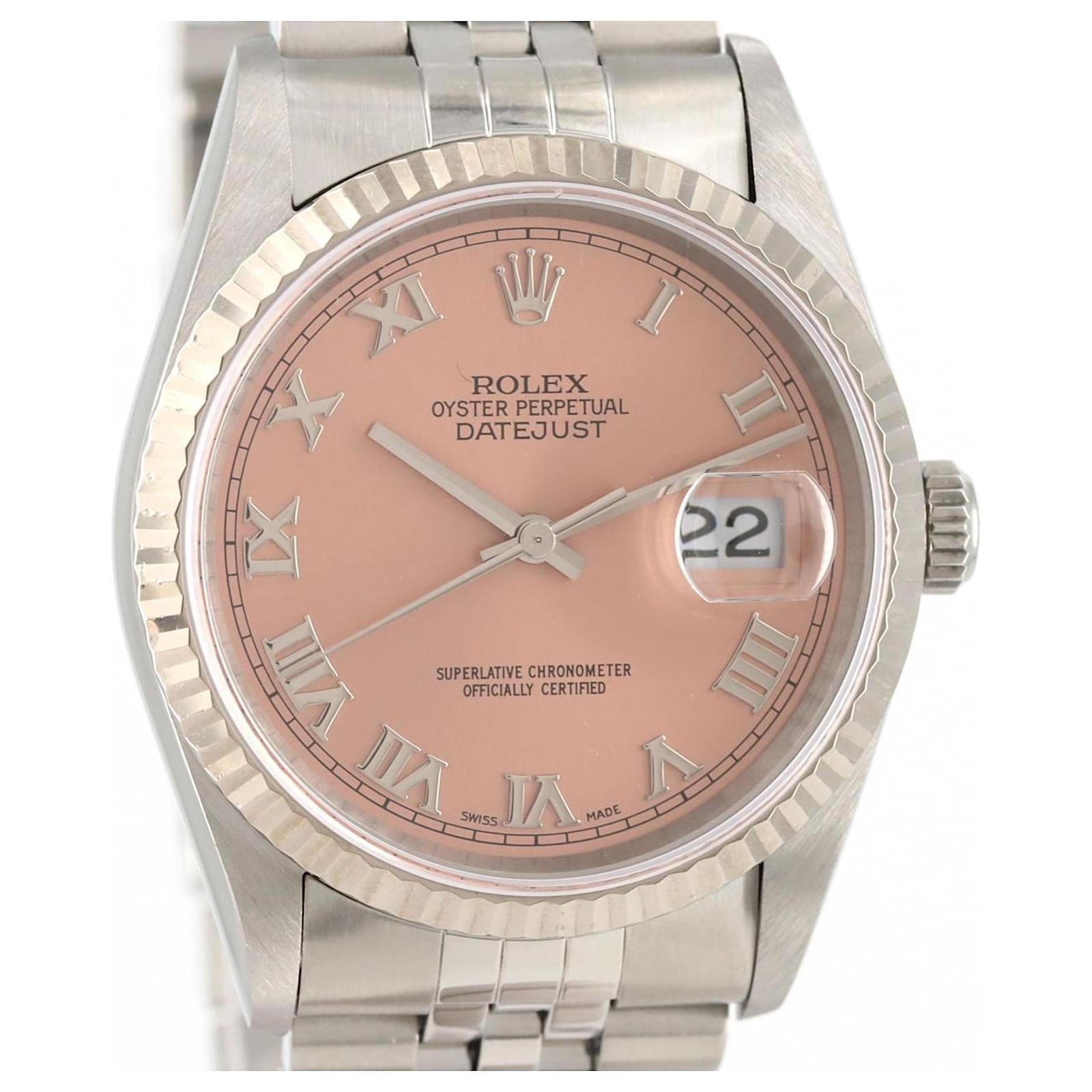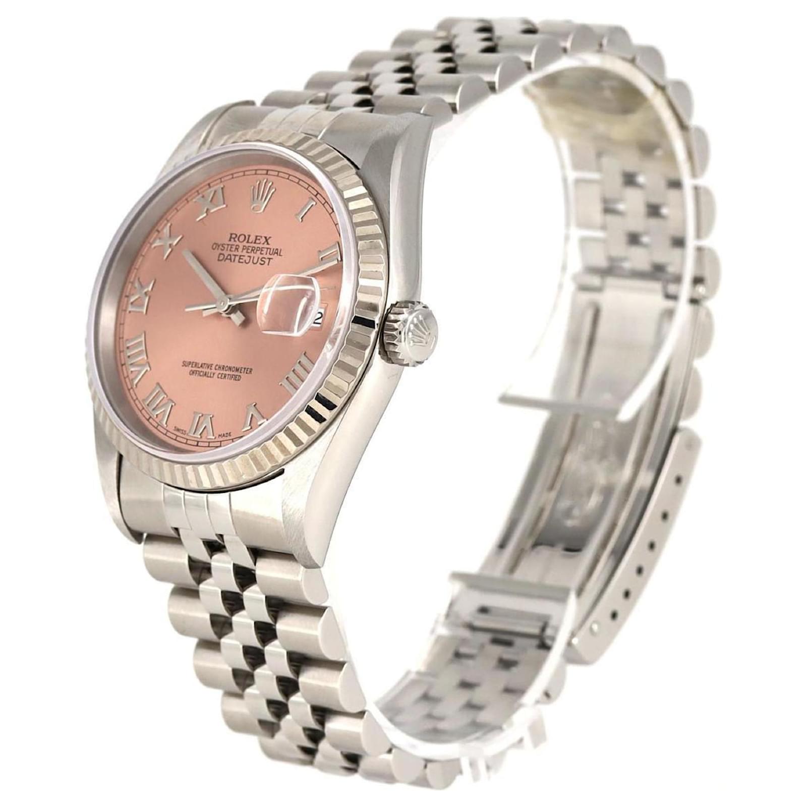 The Rolex Datejust 16234 is a wristwatch that features a pink dial and is crafted from stainless steel and white gold. This self-winding automatic watch has a case diameter of 36mm and is suitable for a wrist size of 20cm (7.87 inches).