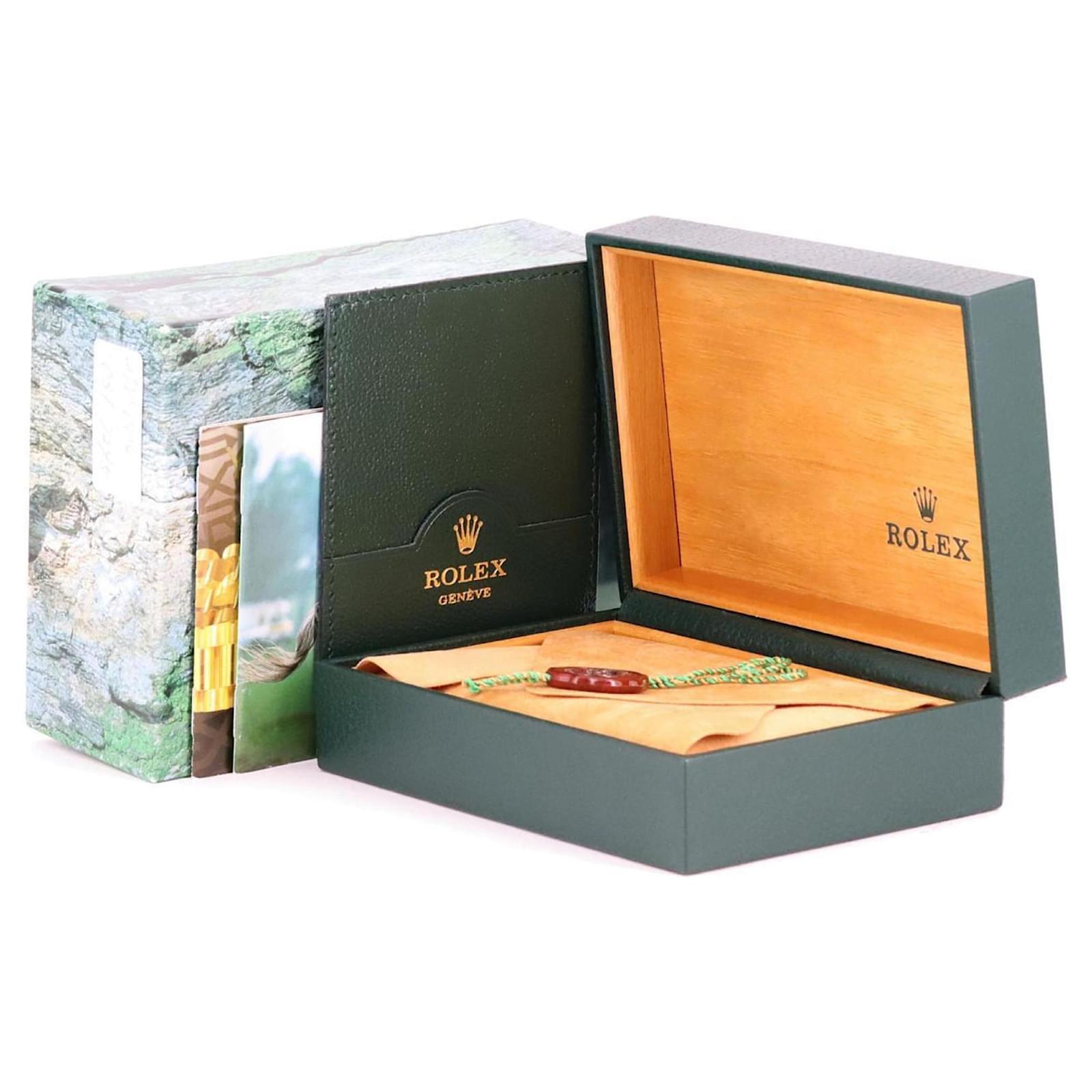 Included with the watch are the inner and outer boxes, along with a warranty. Potential buyers are encouraged to review the images for a detailed view of the watch's condition and included accessories.
