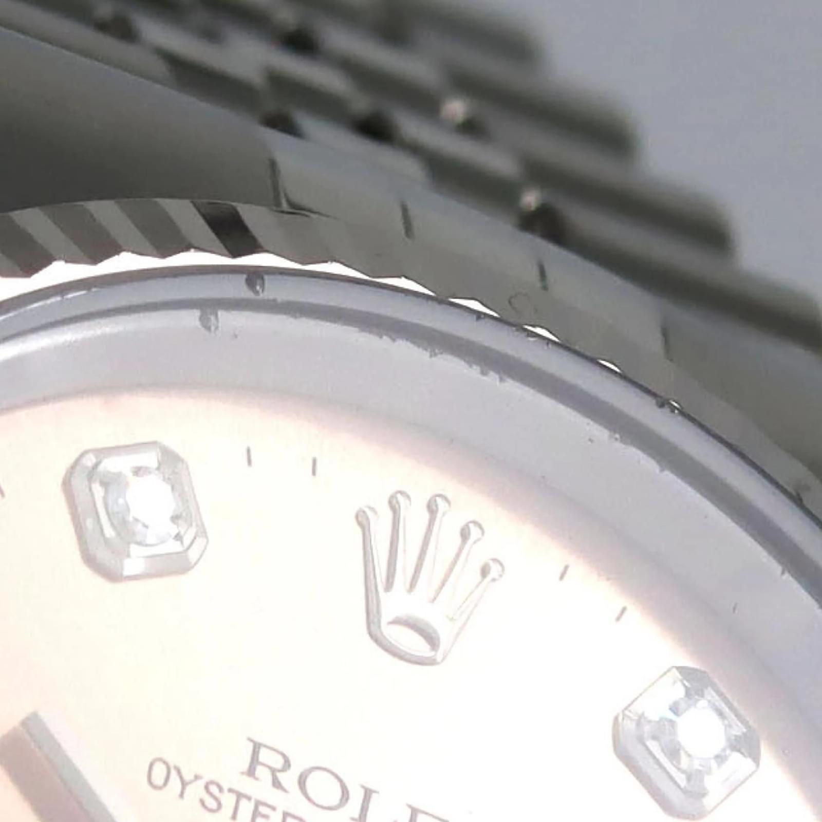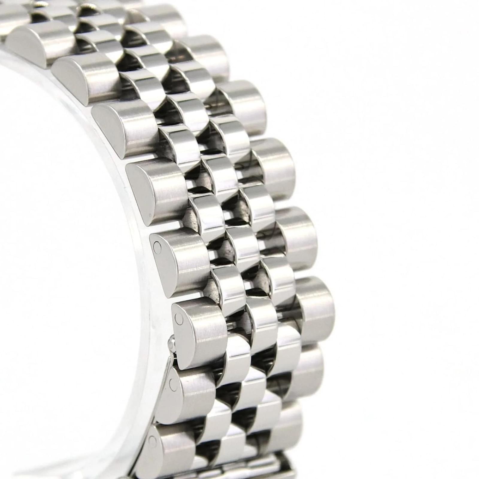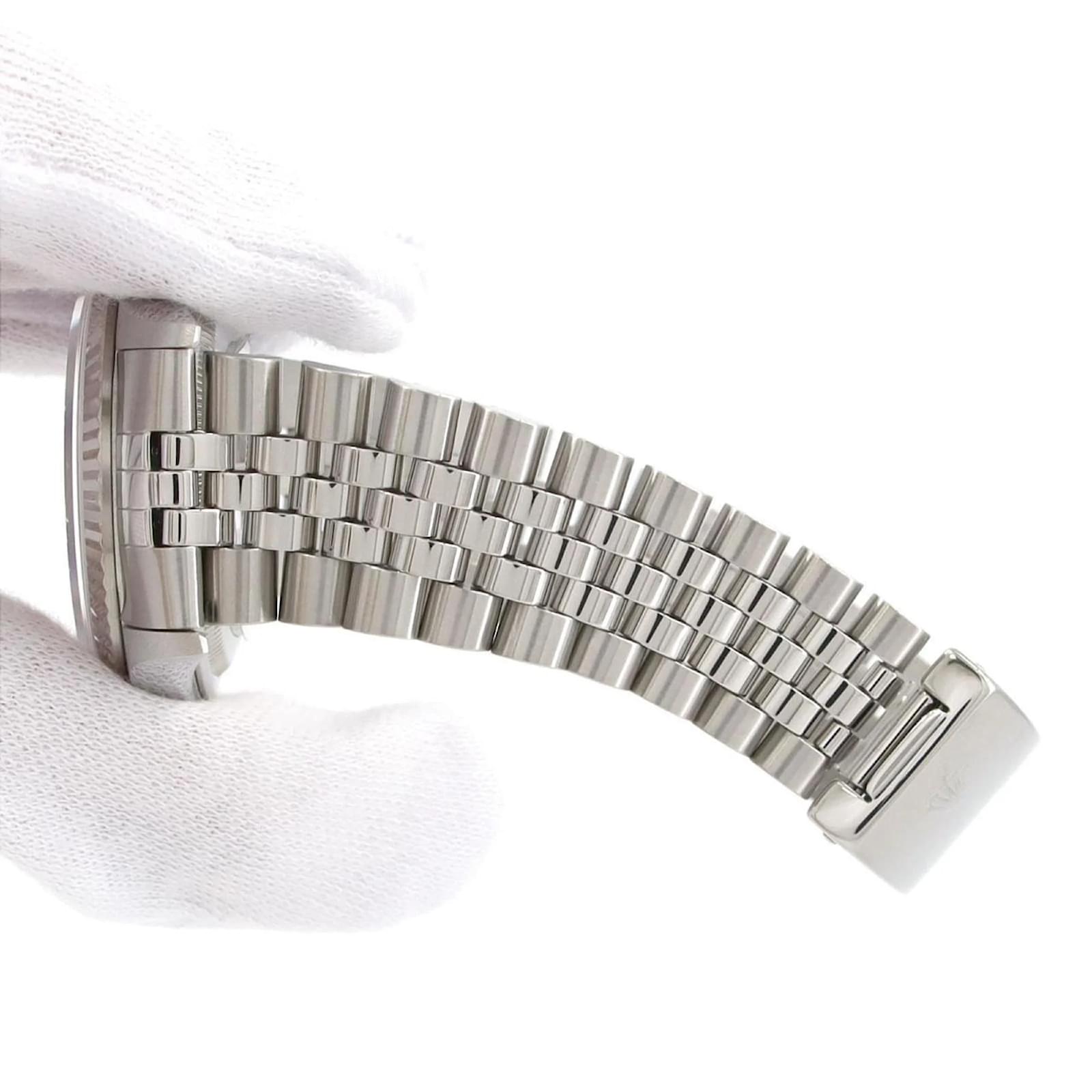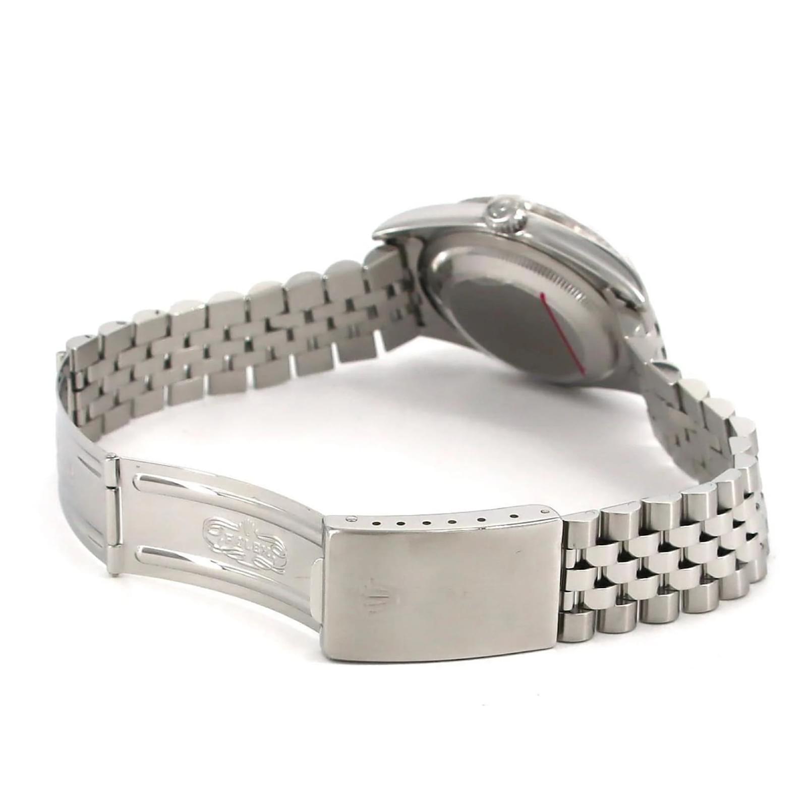 The Rolex Datejust 16234G is a sophisticated wristwatch featuring a pink dial and crafted from stainless steel and white gold. This model is equipped with a self-winding automatic movement and displays the date function prominently. The case diameter measures 36mm, suitable for a wrist size of 19.5cm (7.67 inches).