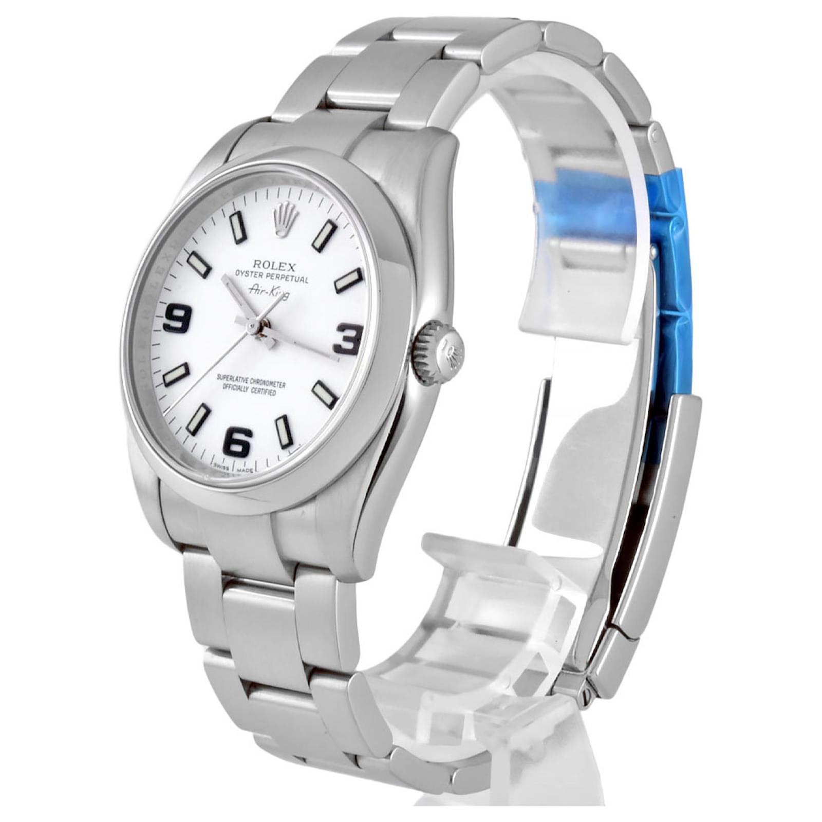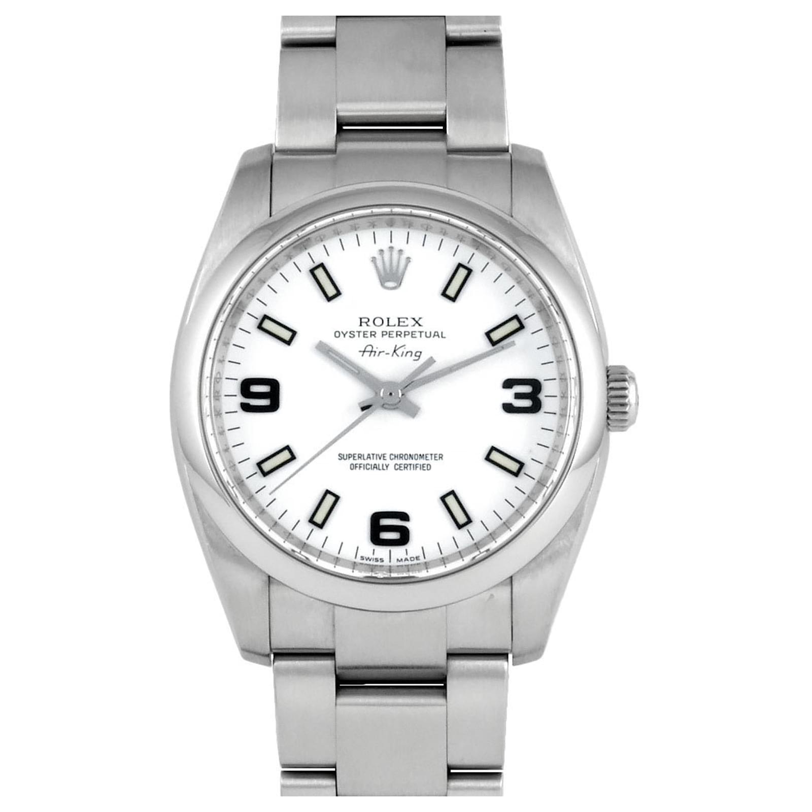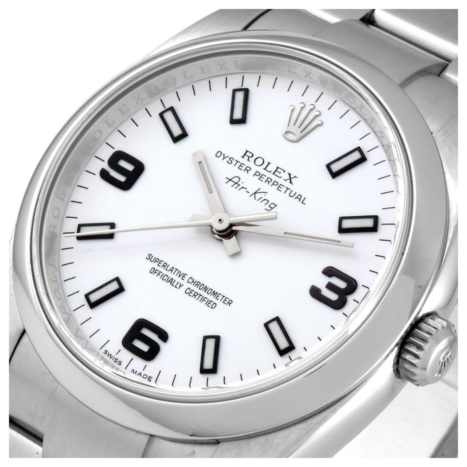 The Rolex ROLEX 114200 M series is a men's automatic wristwatch, manufactured around 2007. It features a white dial housed in a stainless steel case, complemented by a stainless steel band. The watch has a case diameter of 34mm and is suitable for a wrist size of 17cm (6.69 inches).