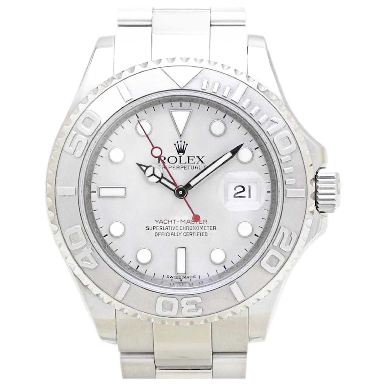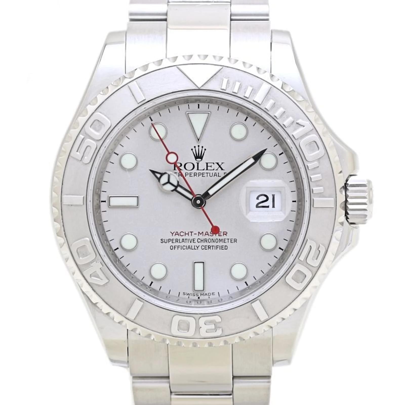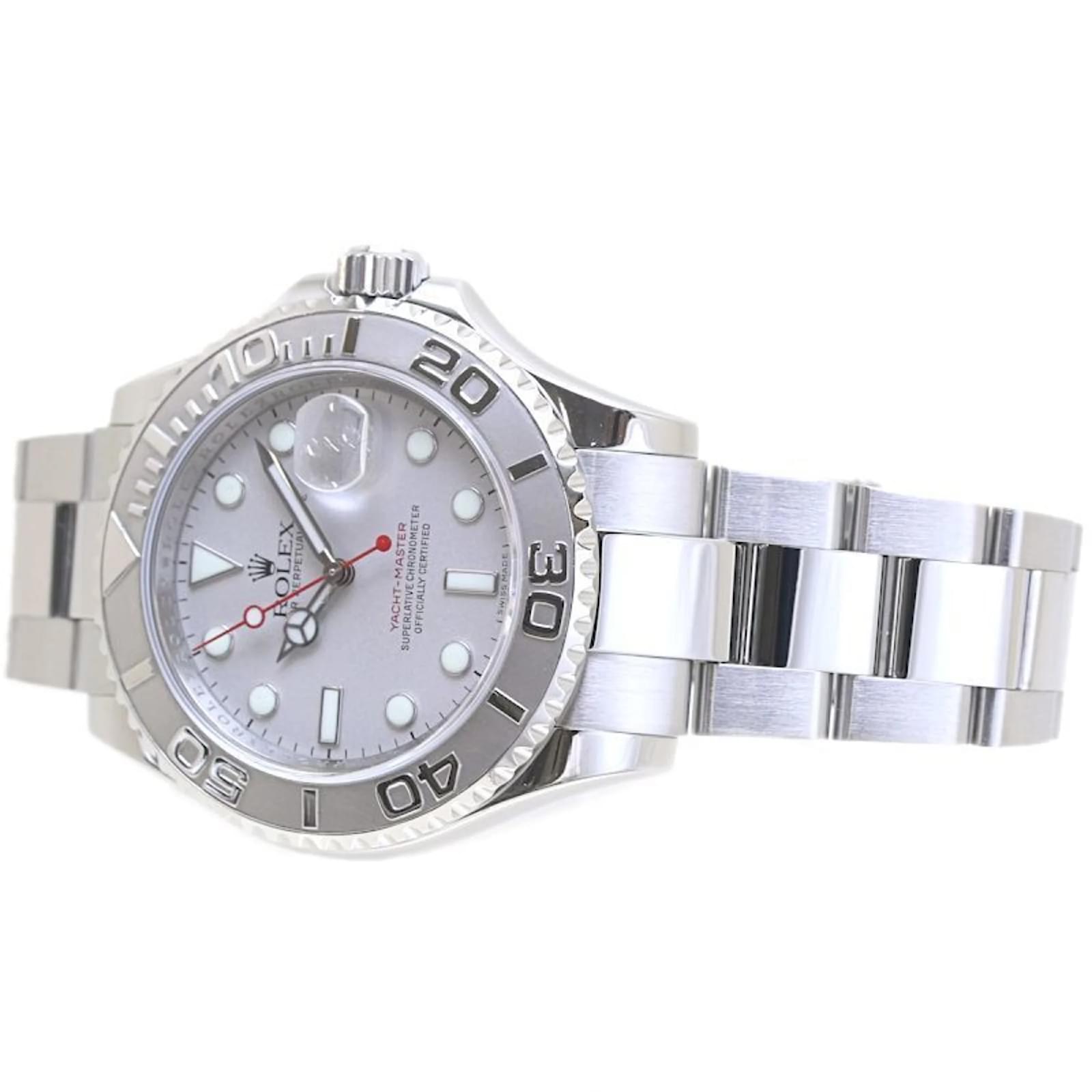 The Rolex Yacht-Master Rolesium 16622 is a sophisticated wristwatch designed for men, featuring a silver dial and crafted from a combination of platinum and stainless steel for both the case and band. This self-winding automatic timepiece has a case diameter of 40mm and is suitable for a wrist size of 19cm (7.48 inches).