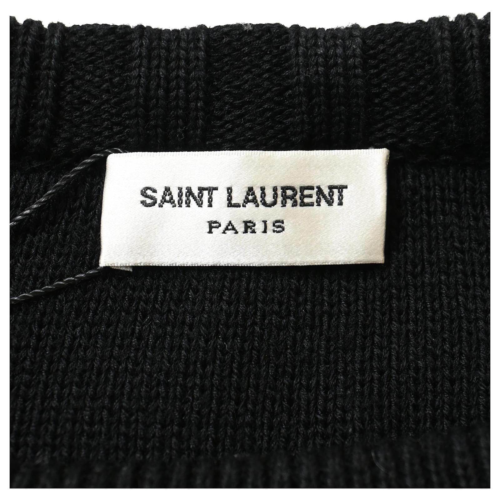 The Saint Laurent Striped Sweater in Black and White Wool offers a timeless, bold design that combines luxurious wool with a sharp striped pattern for an effortlessly stylish look. The high-quality wool ensures warmth and comfort, while the contrasting black and white stripes add a modern edge to the classic silhouette. Perfect for elevating both casual and smart-casual outfits, this sweater makes a statement without overpowering the look. Pair it with slim-fit jeans and sneakers for a casual vibe, or tuck it into tailored trousers for a more refined, chic ensemble.