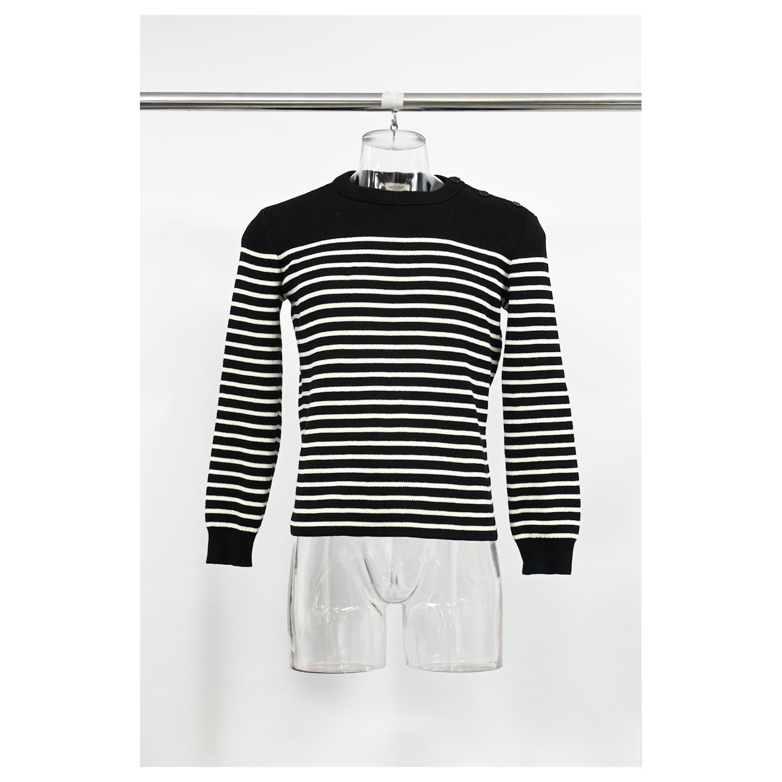 Saint Laurent Striped Sweater in Black and White Wool