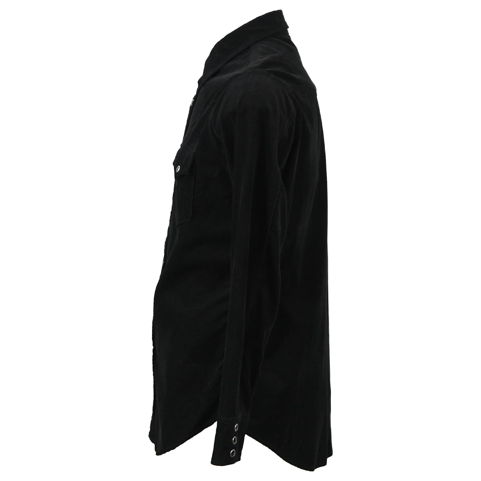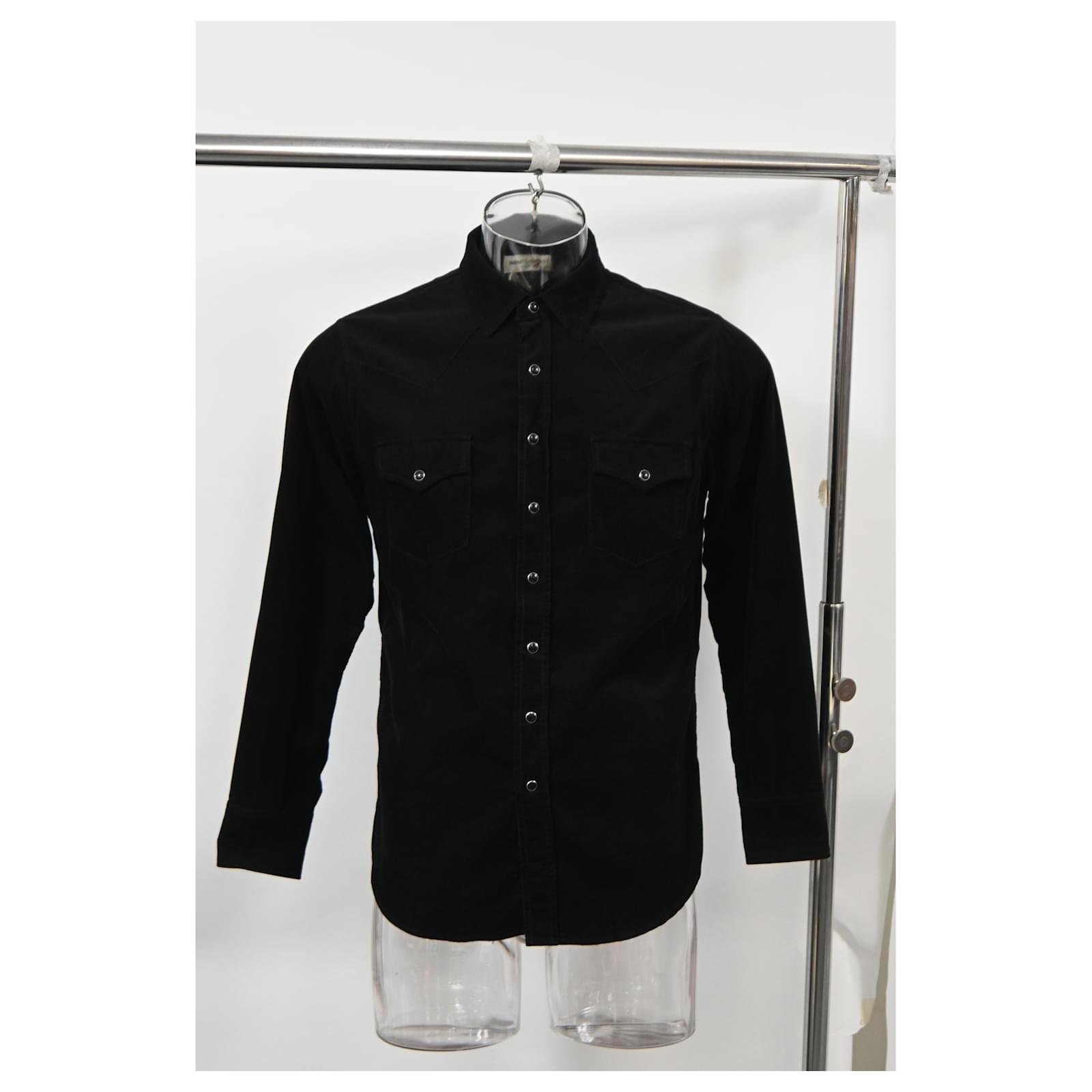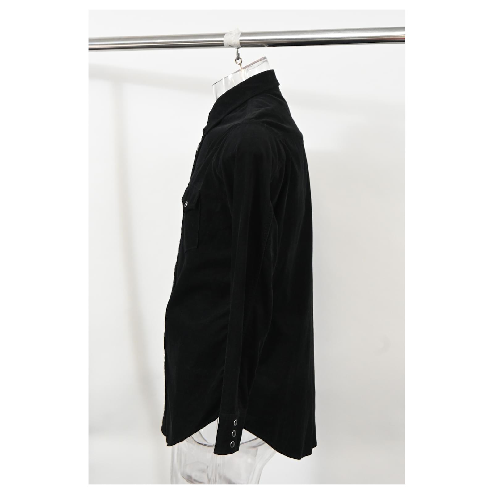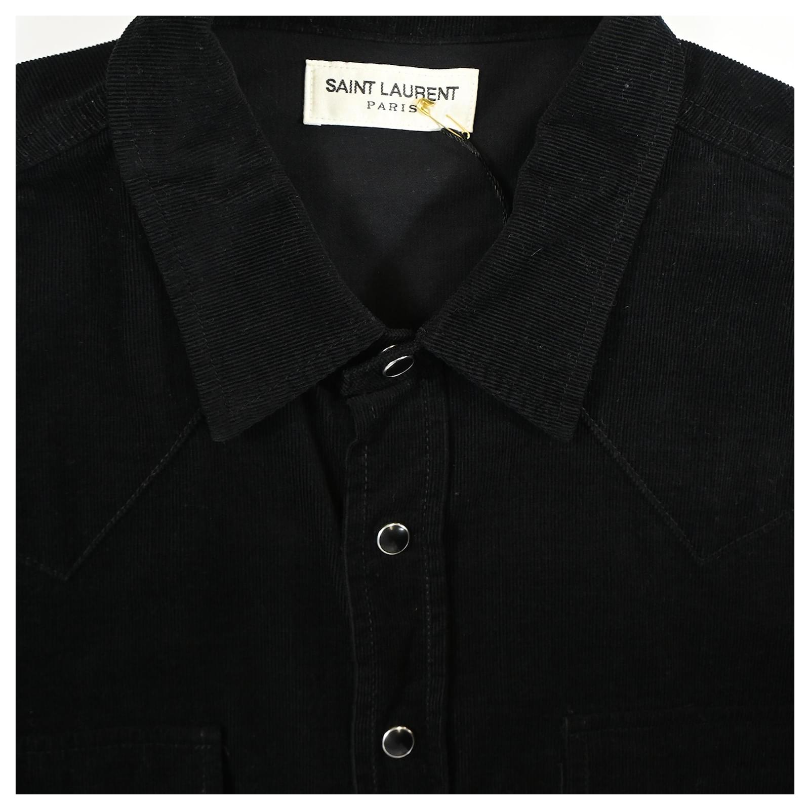 Saint Laurent’s Overshirt in Black Corduroy redefines modern outerwear with its sleek design and textured fabric. The pointed collar and two-button cuffs offer classic detailing, while the buttoned flap pockets provide a utilitarian edge. The curved hem adds a touch of modernity, creating a versatile overshirt that pairs effortlessly with jeans, chinos, or layered over a tee.