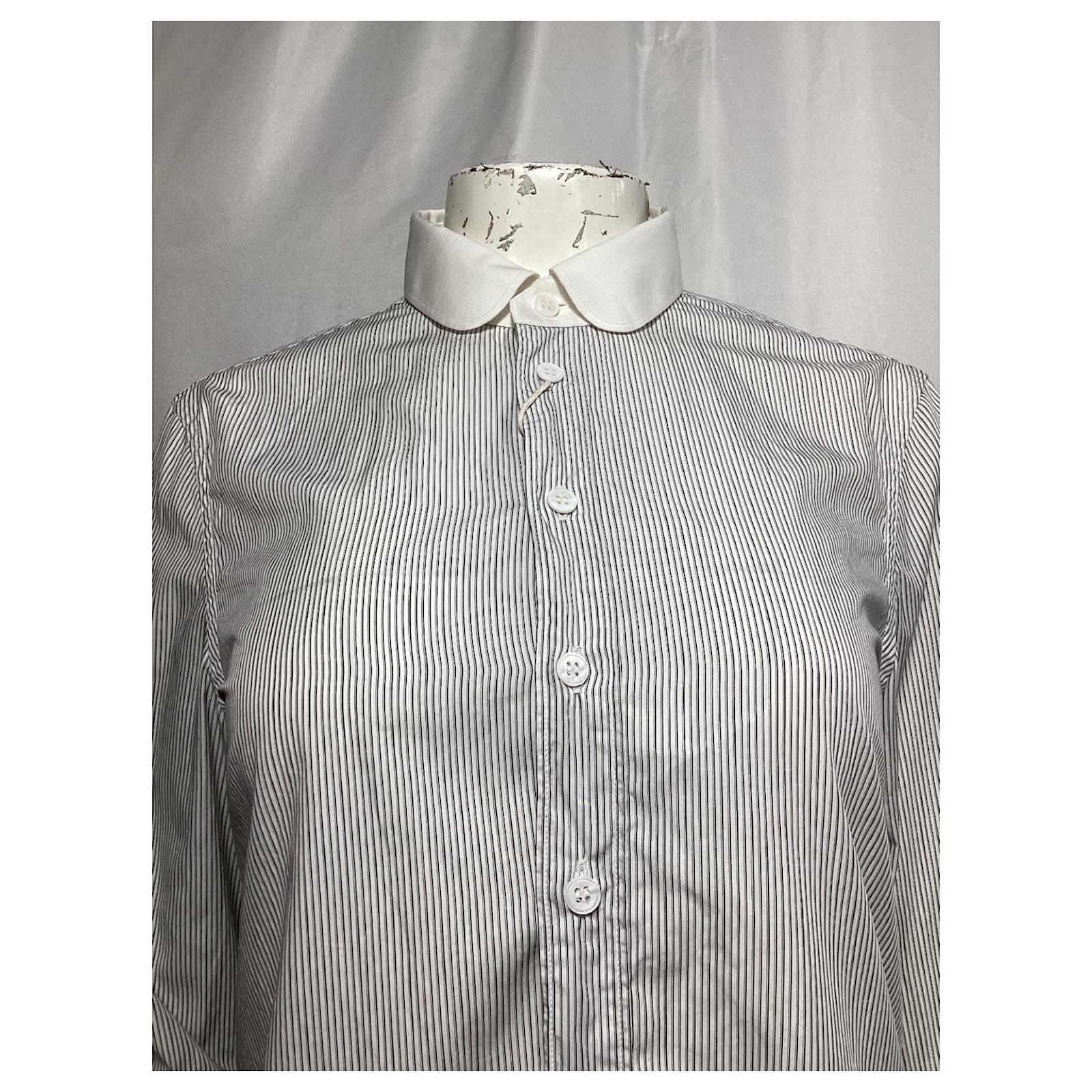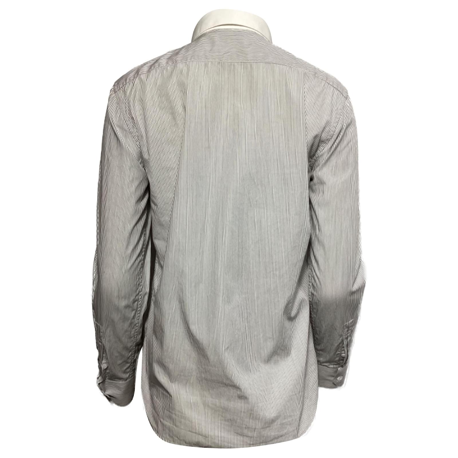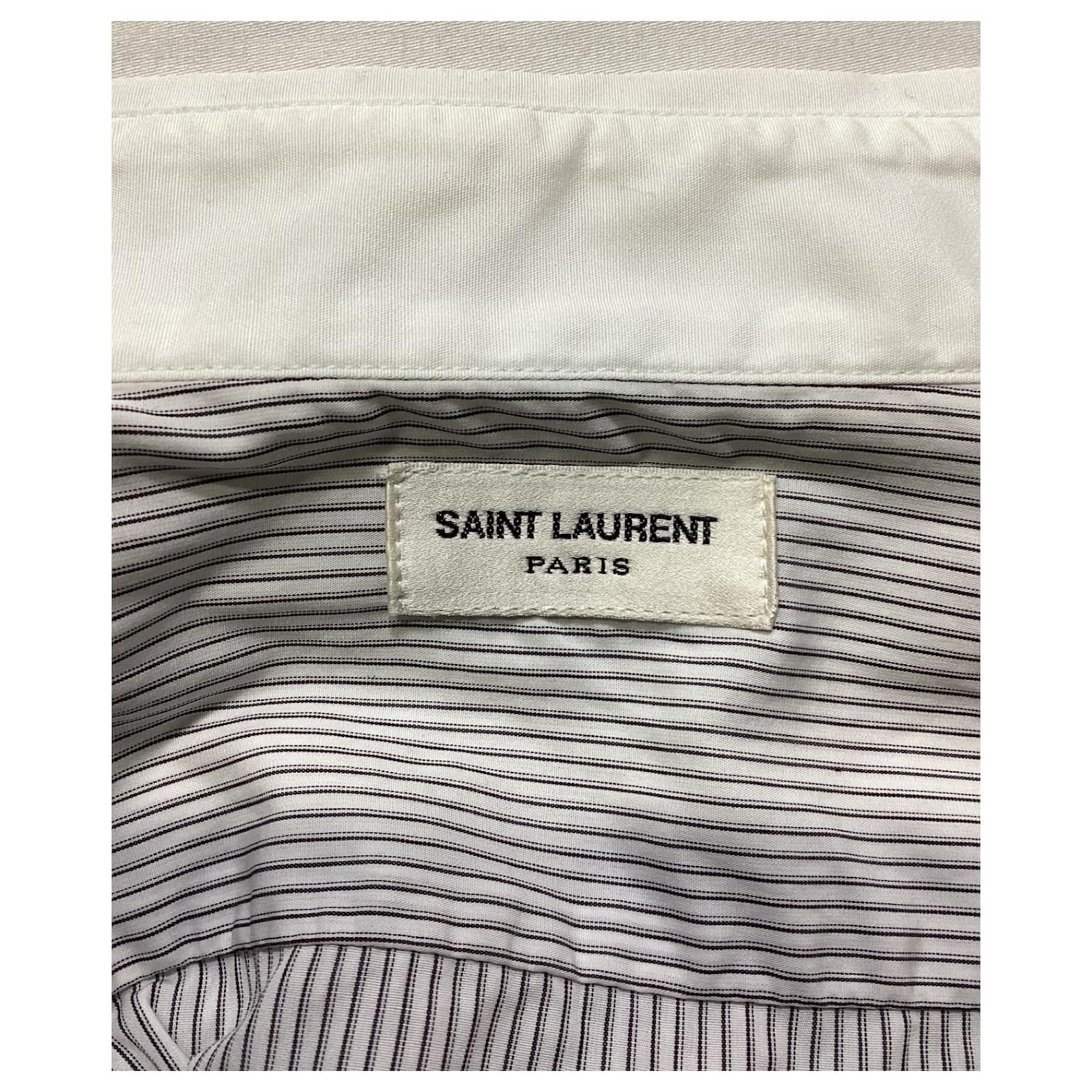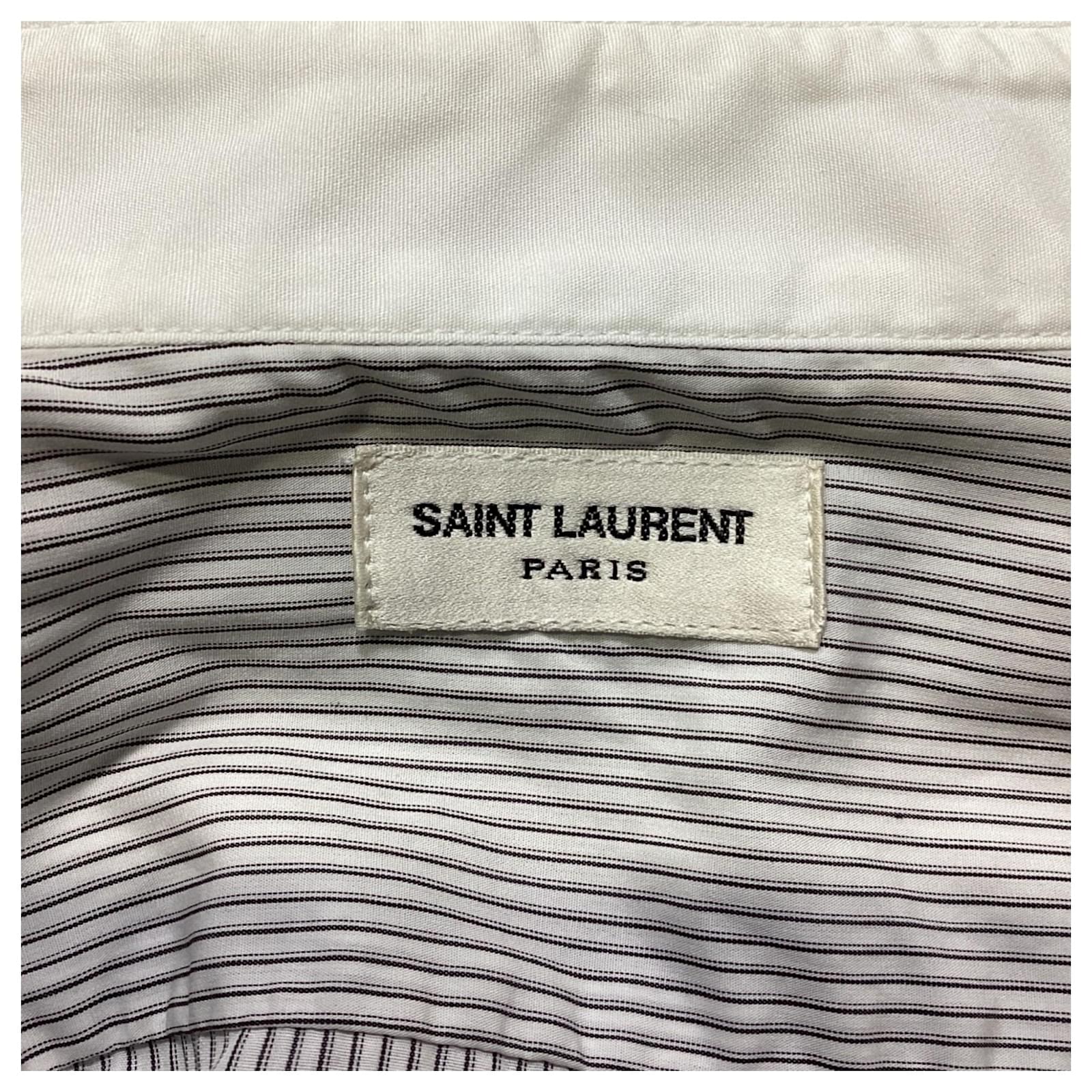 Saint Laurent Striped Long Sleeve Shirt in Black and White Cotton