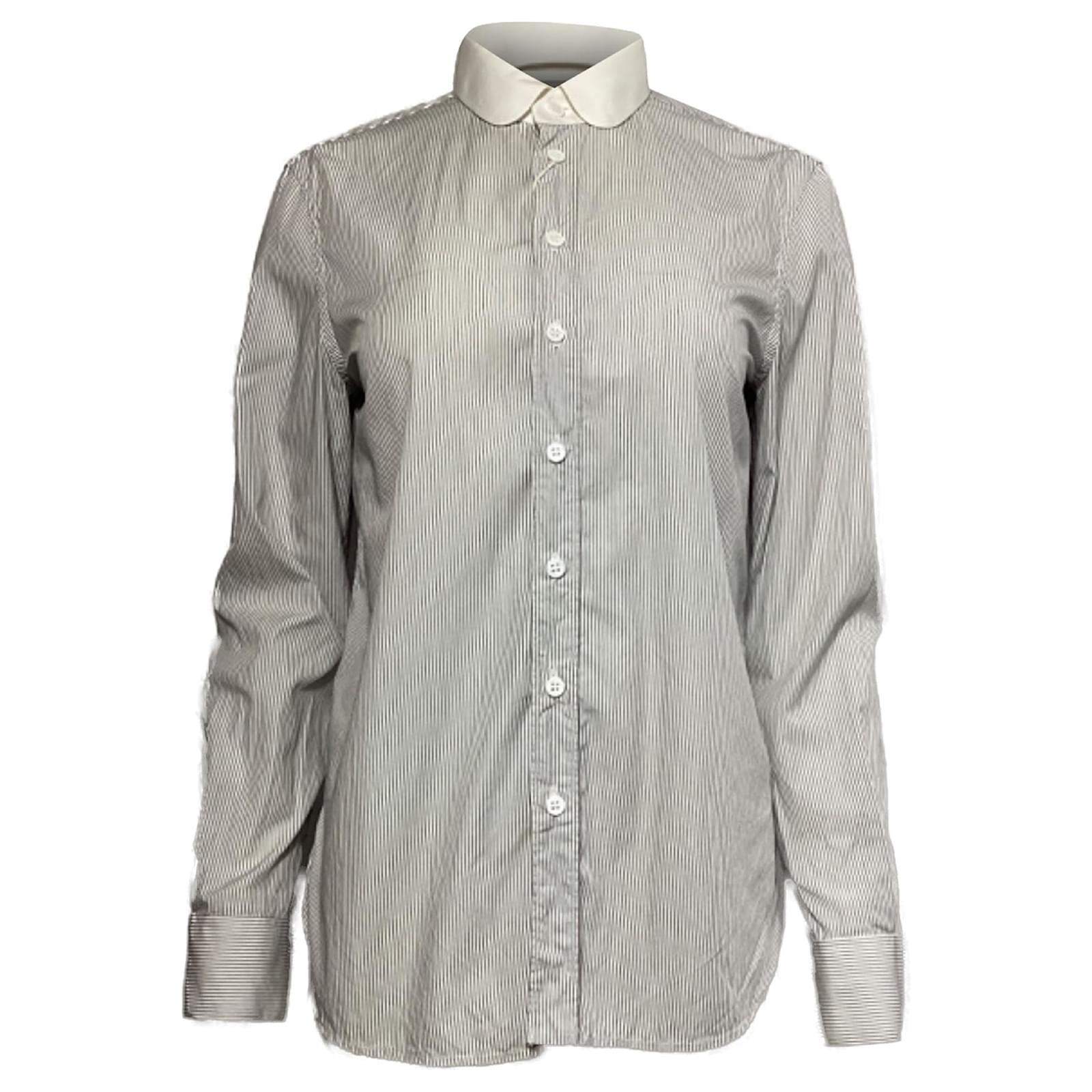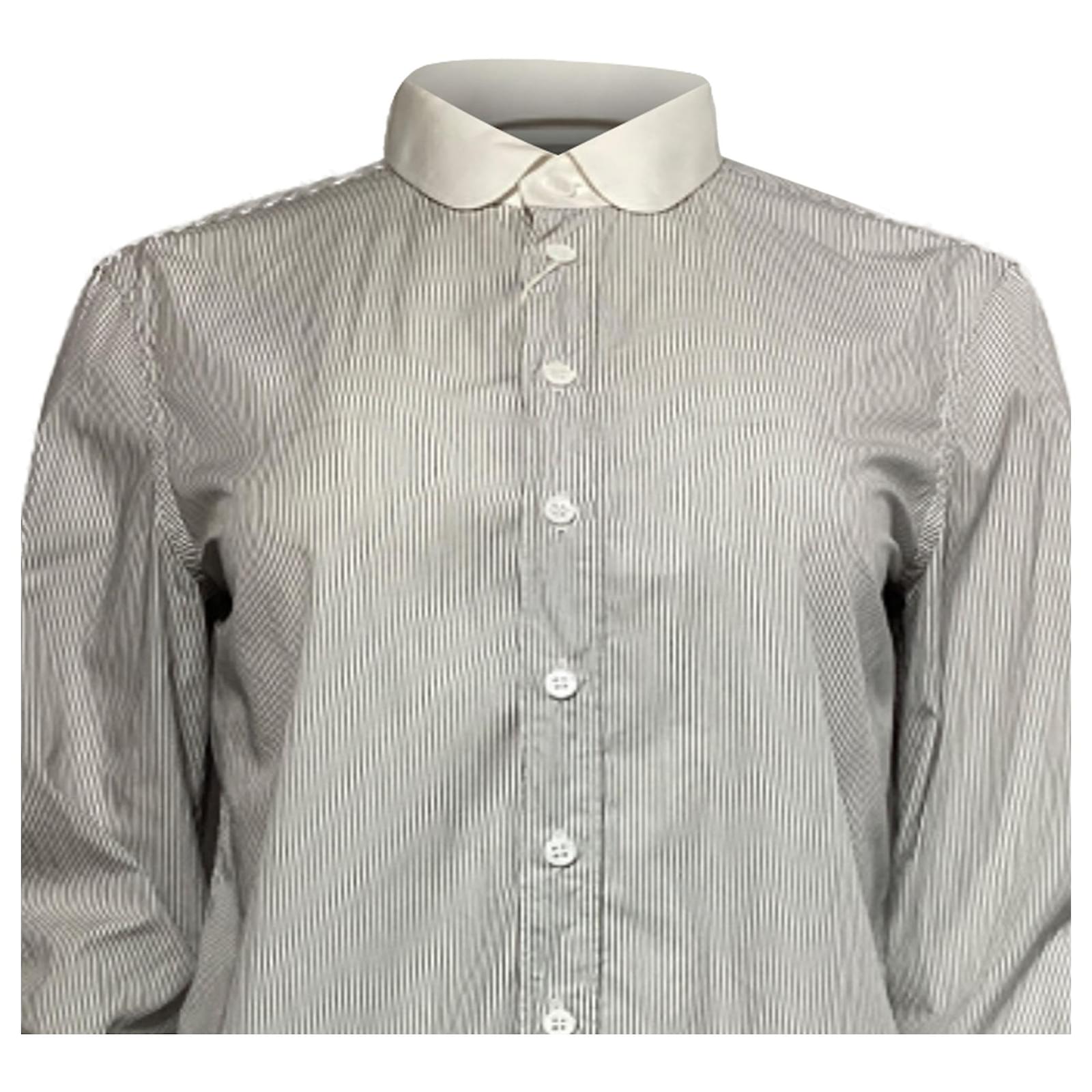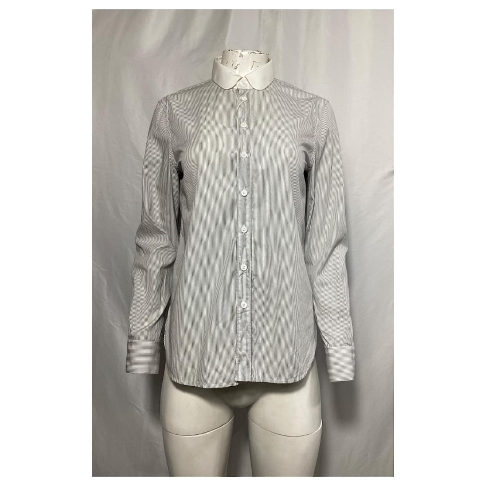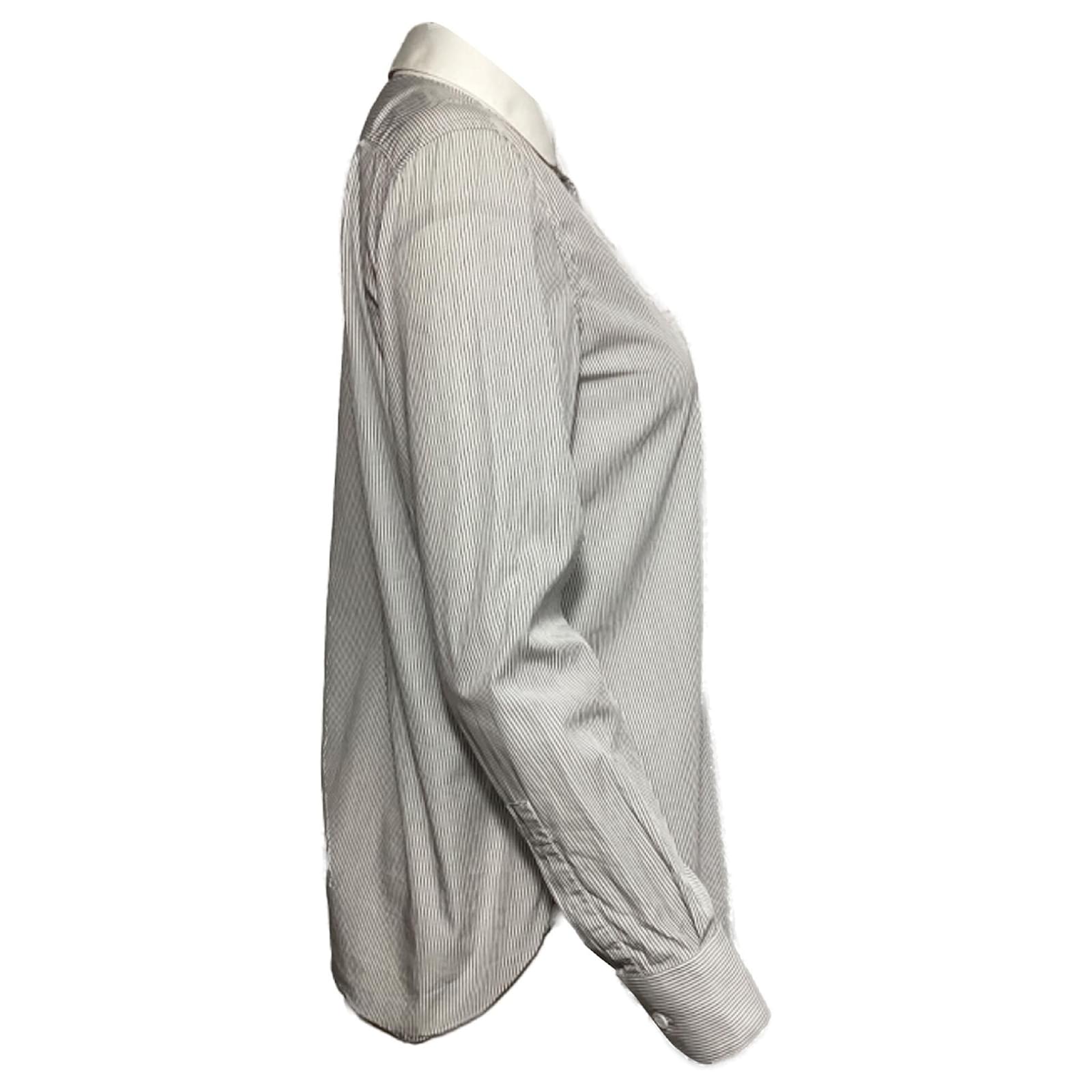 Saint Laurent Striped Long Sleeve Shirt in Black and White Cotton