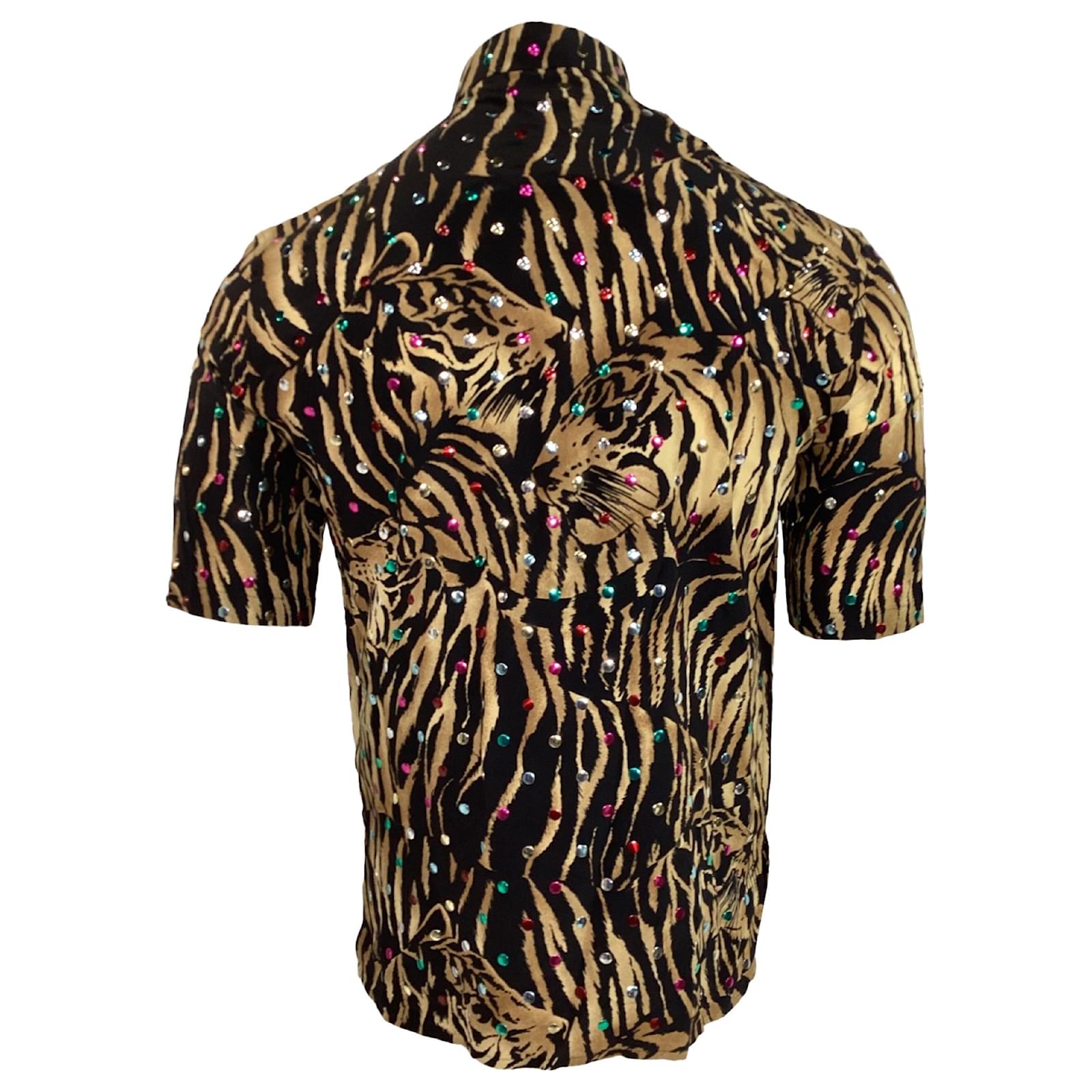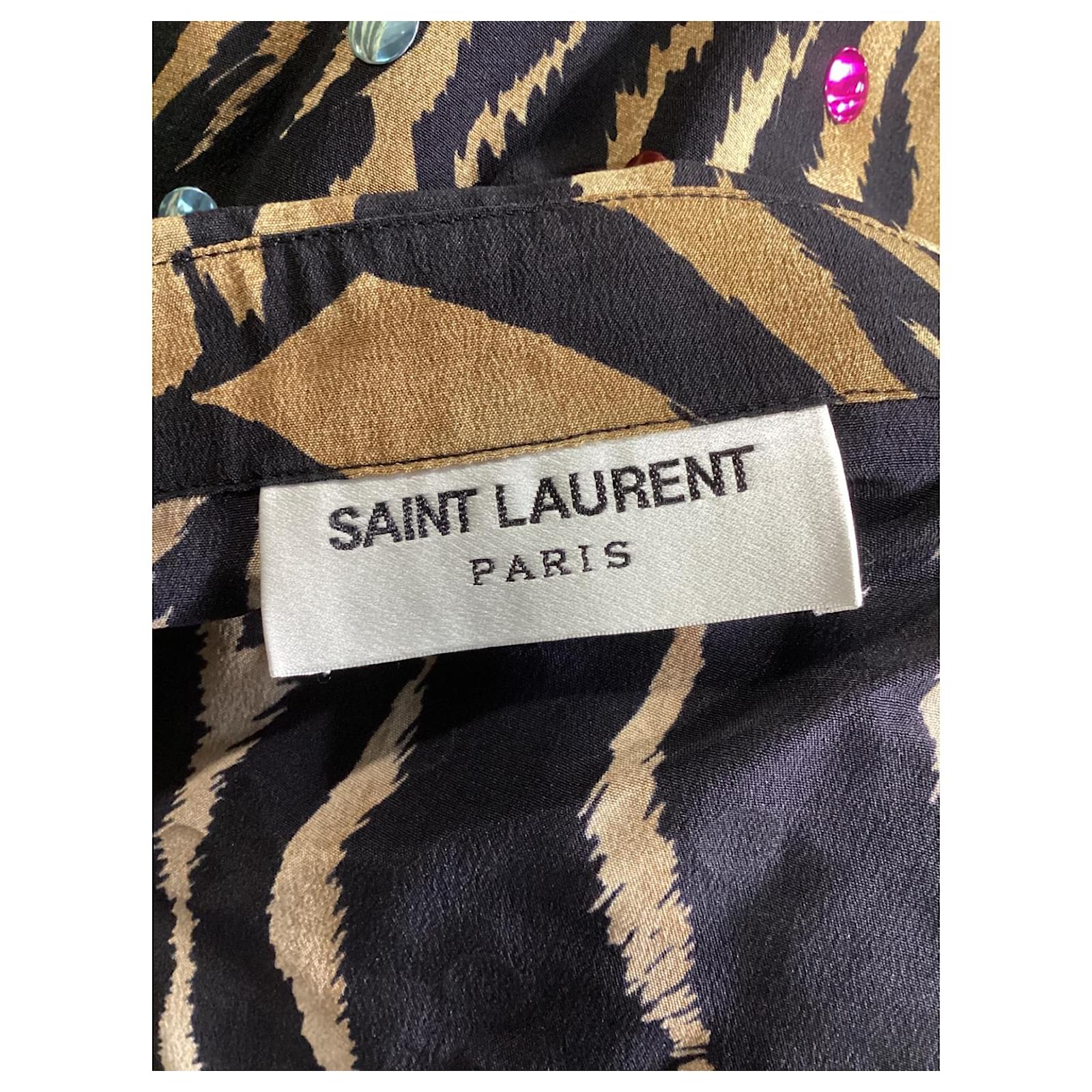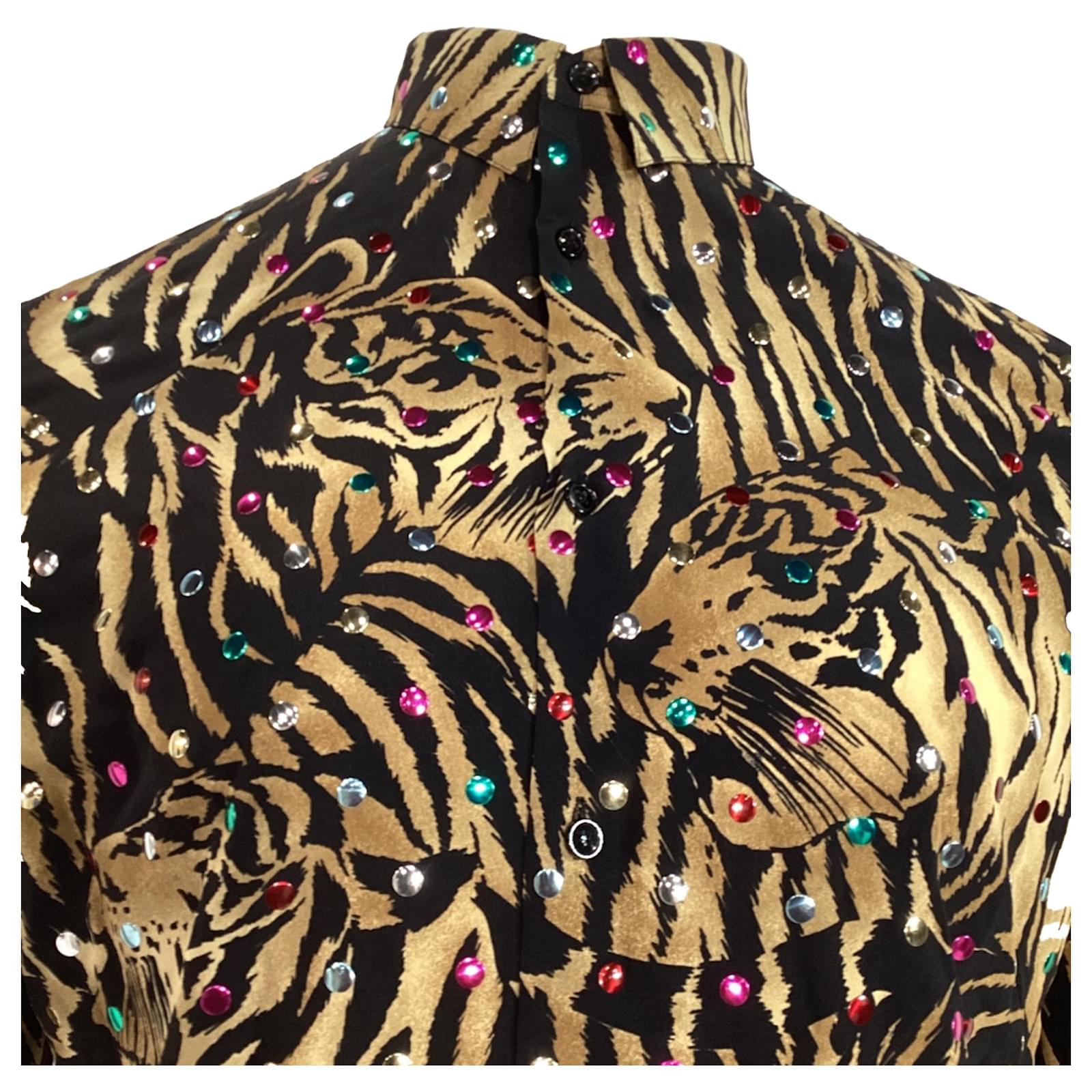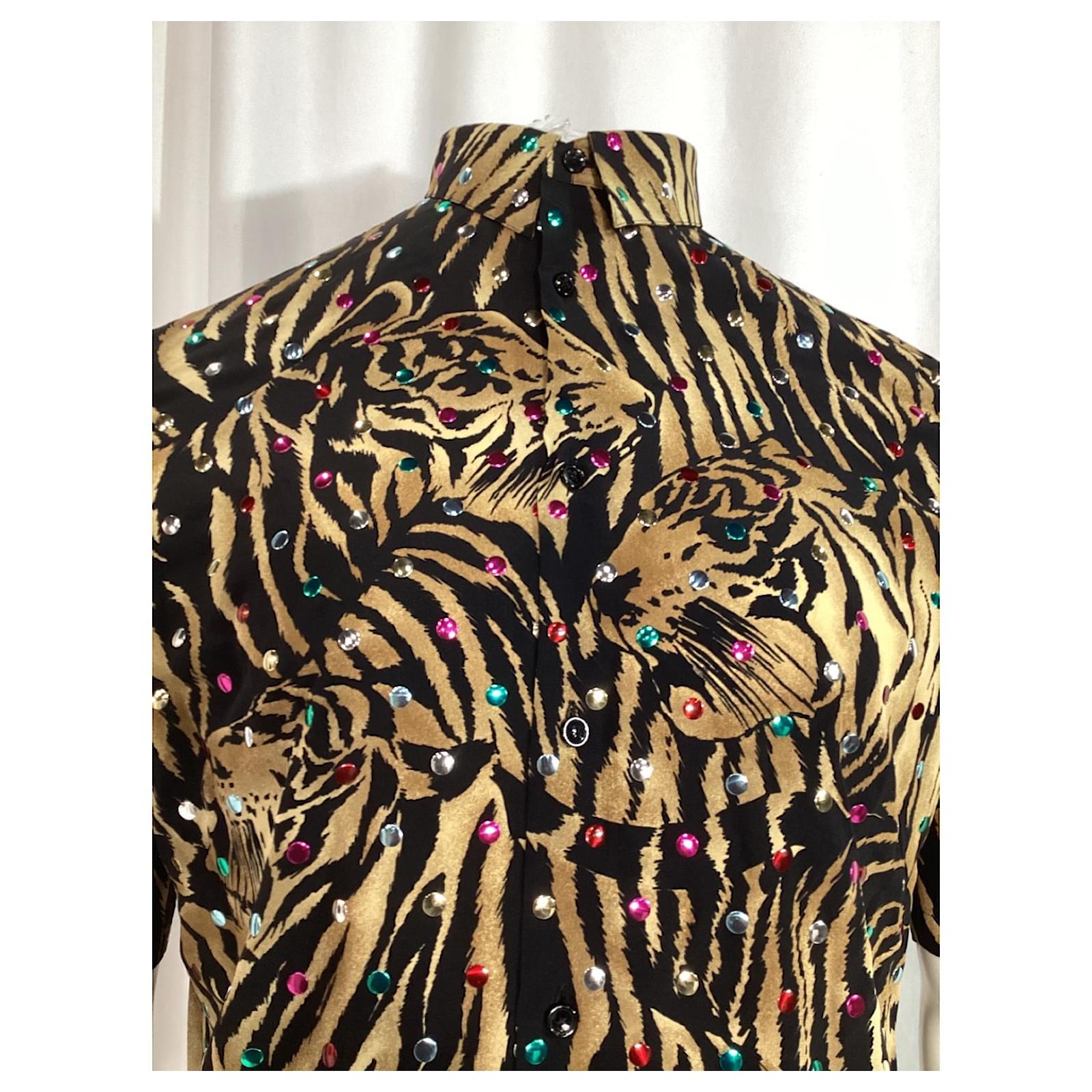 Saint Laurent Tiger Print Embellished Shirt in Multicolor Silk Multiple colors