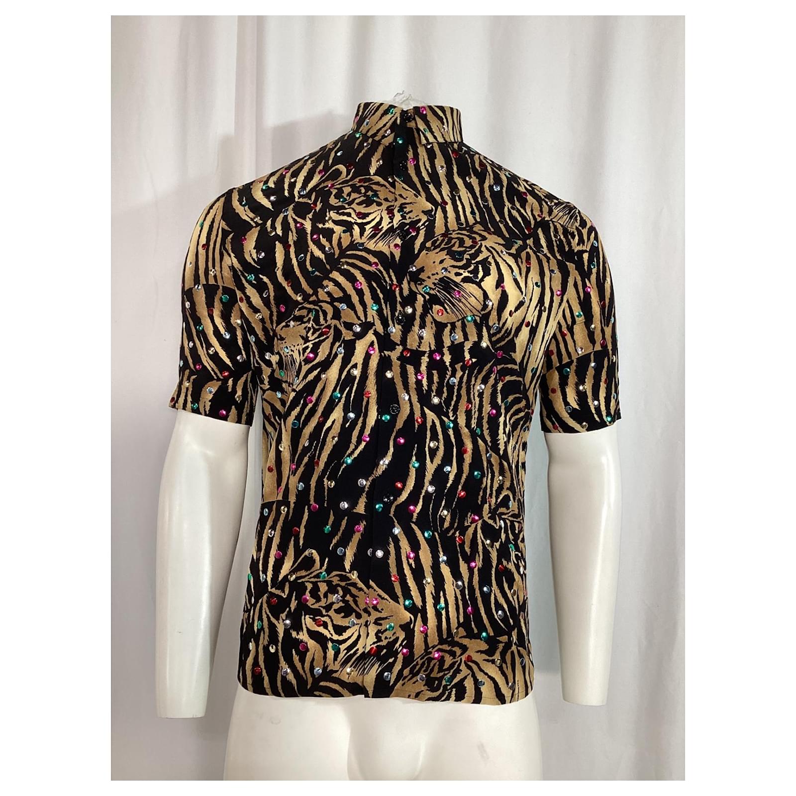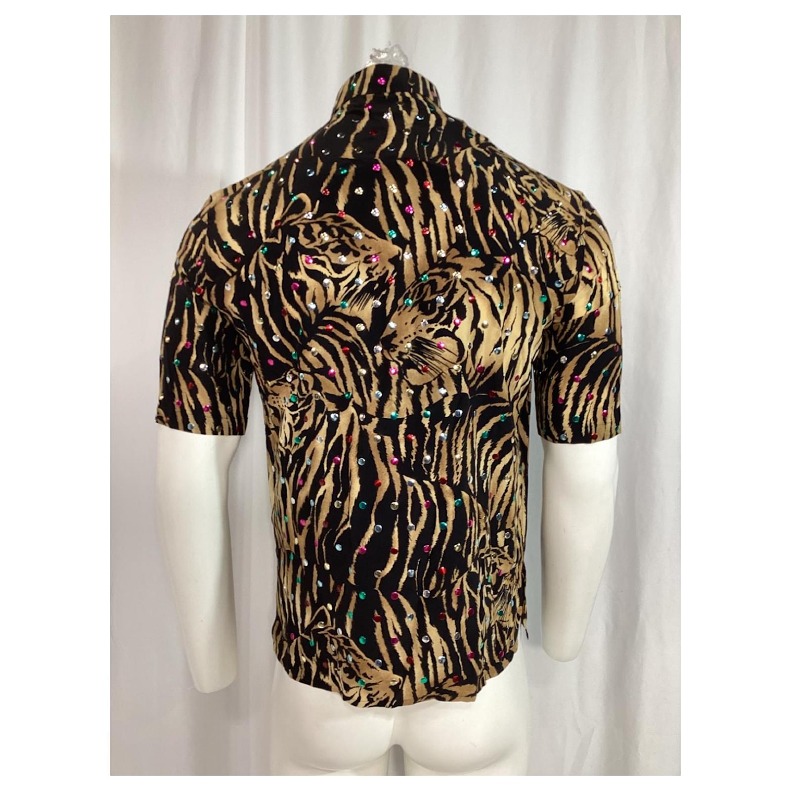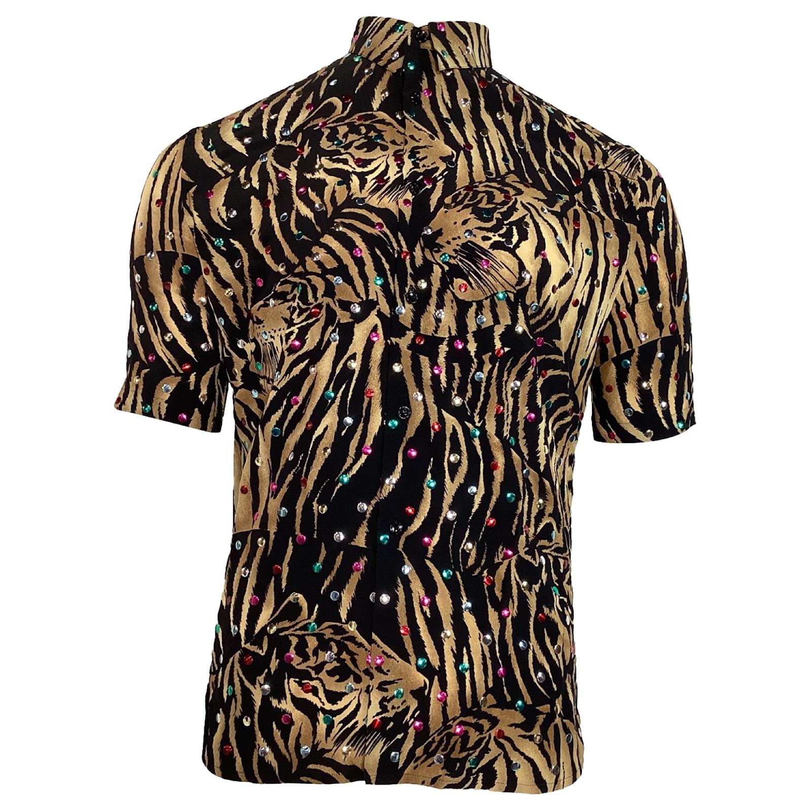 Saint Laurent Tiger Print Embellished Shirt in Multicolor Silk Multiple colors